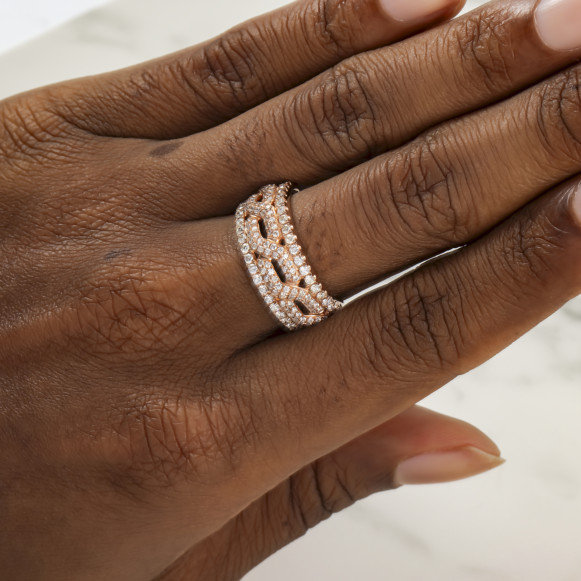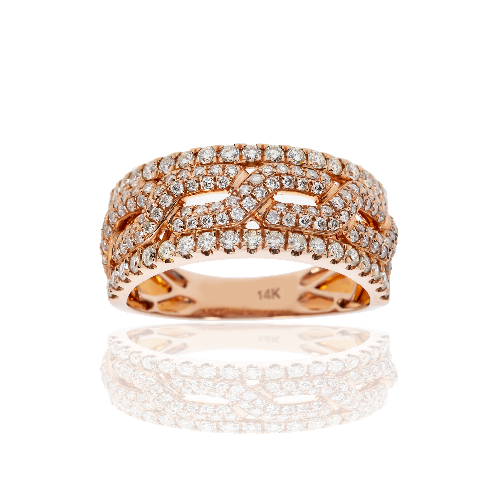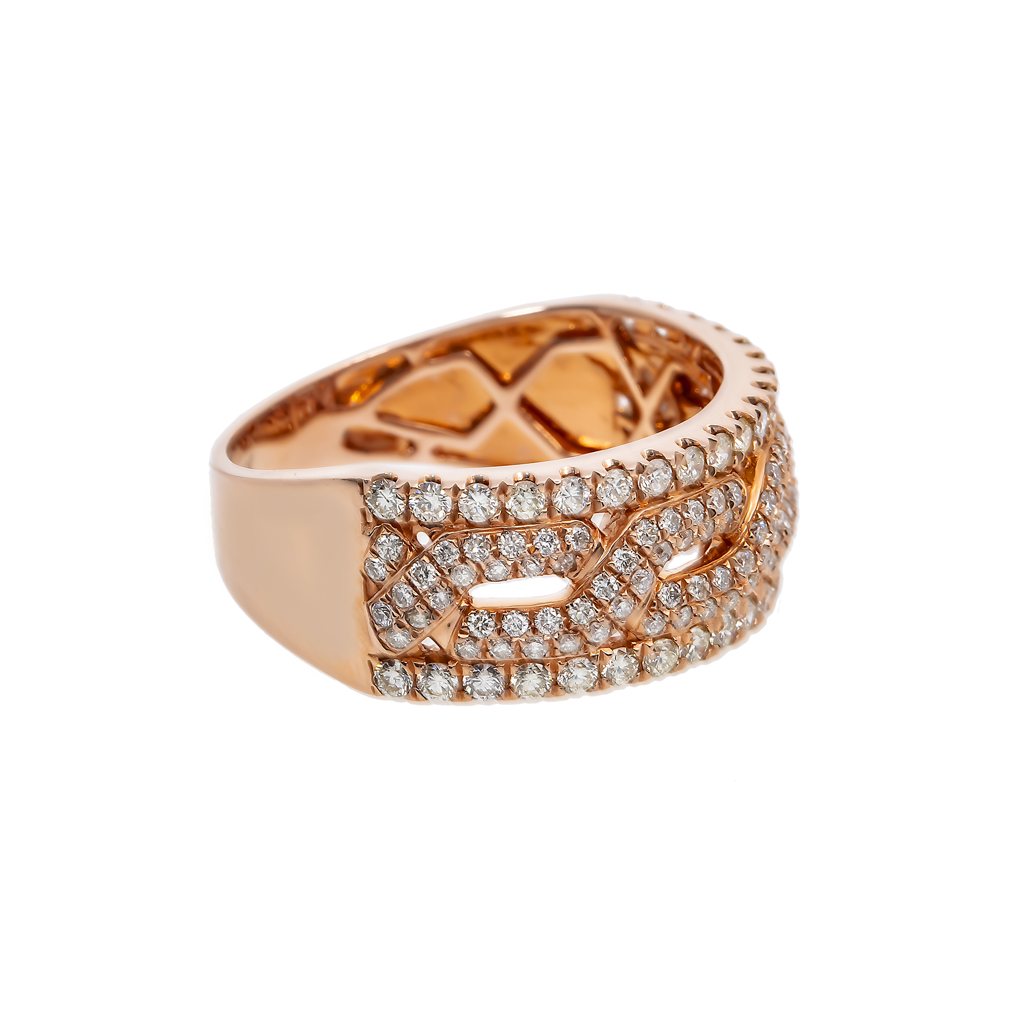 14K GOLD ROUND DIAMOND LINK MENS STATEMENT BAND RING 1.30 CT