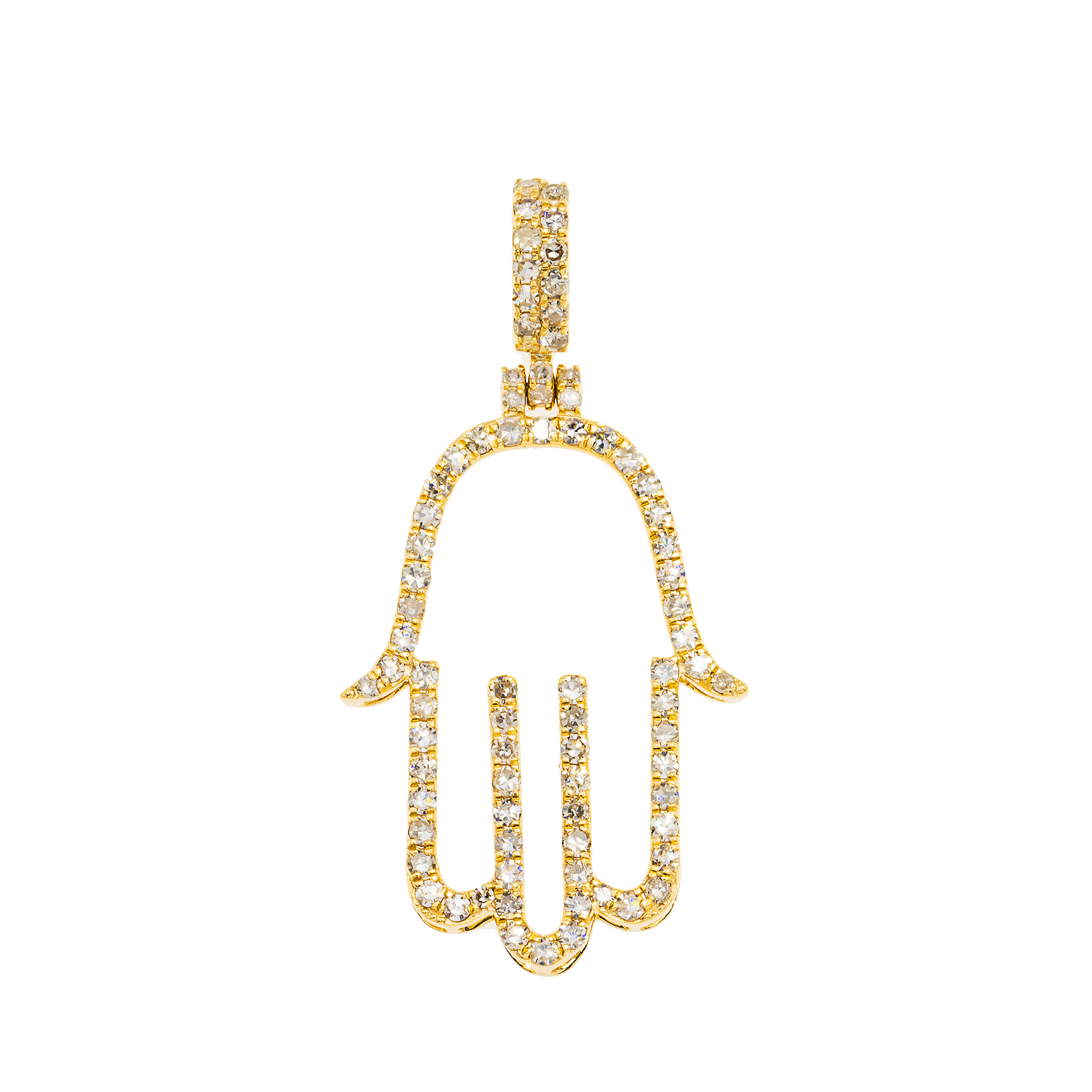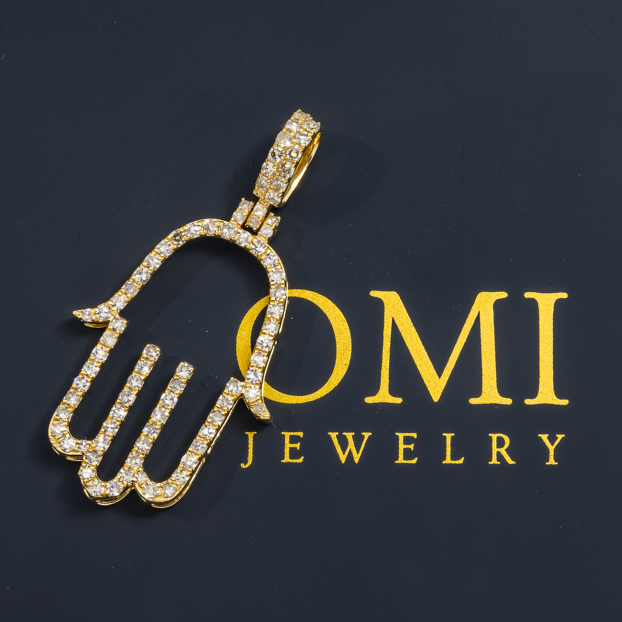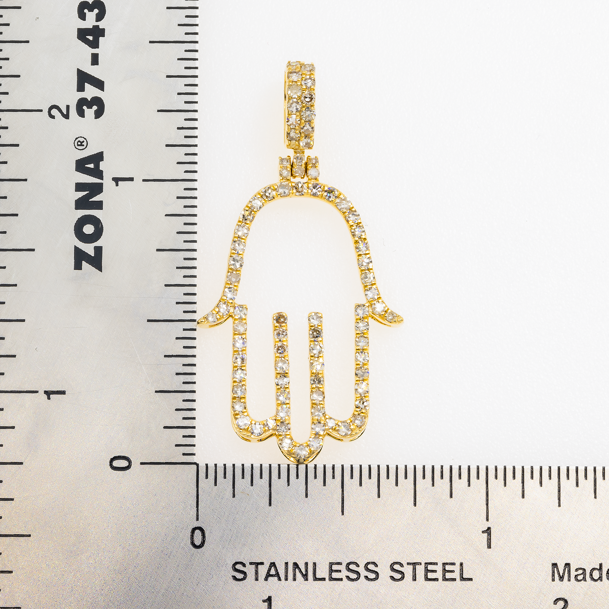14K GOLD ROUND DIAMOND OPEN HAMSA PENDANT 0.76 CT