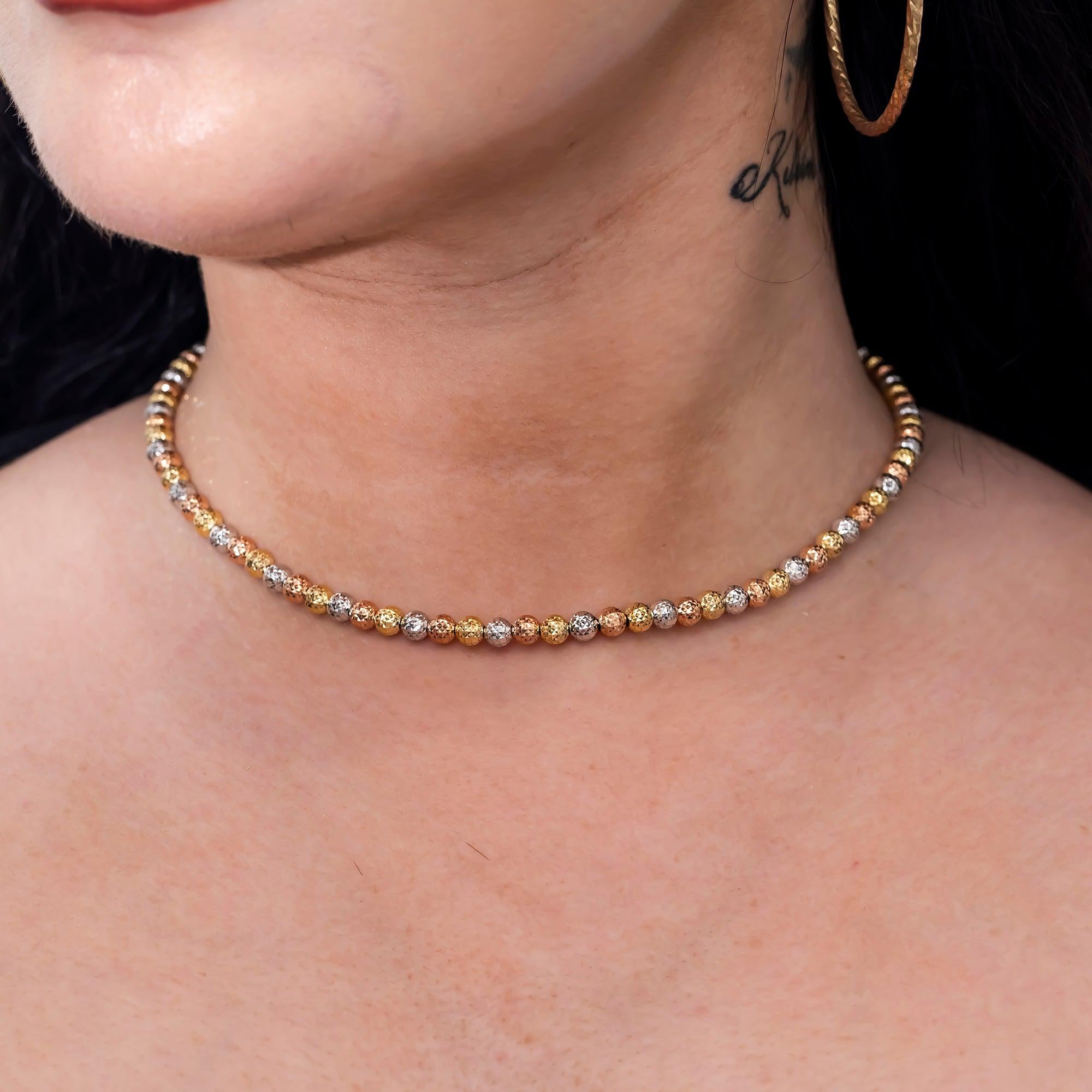14K GOLD TRI-COLOR 4MM MOON BEAD CHAIN