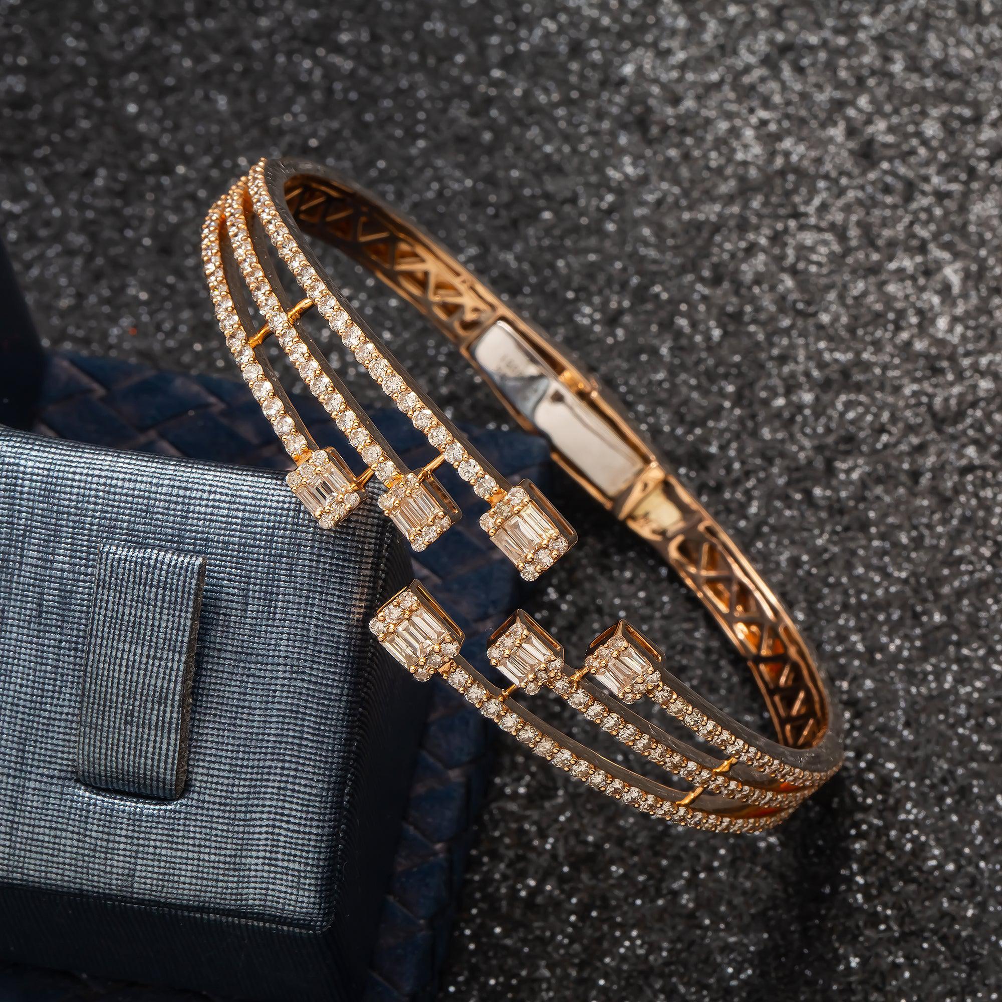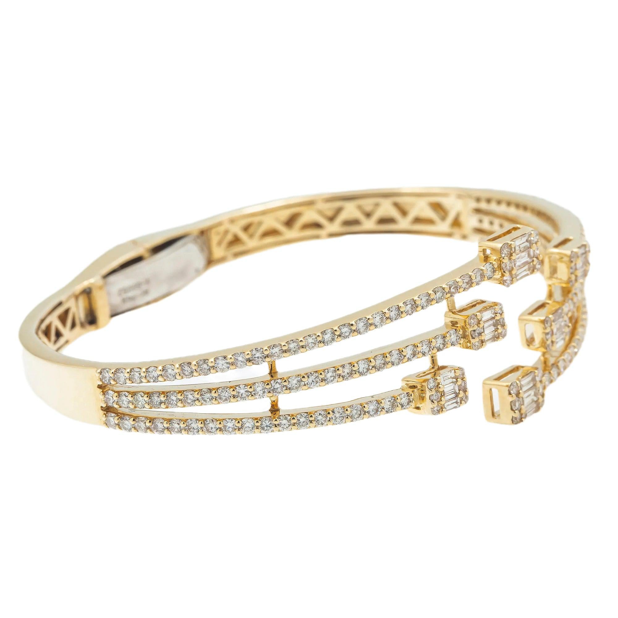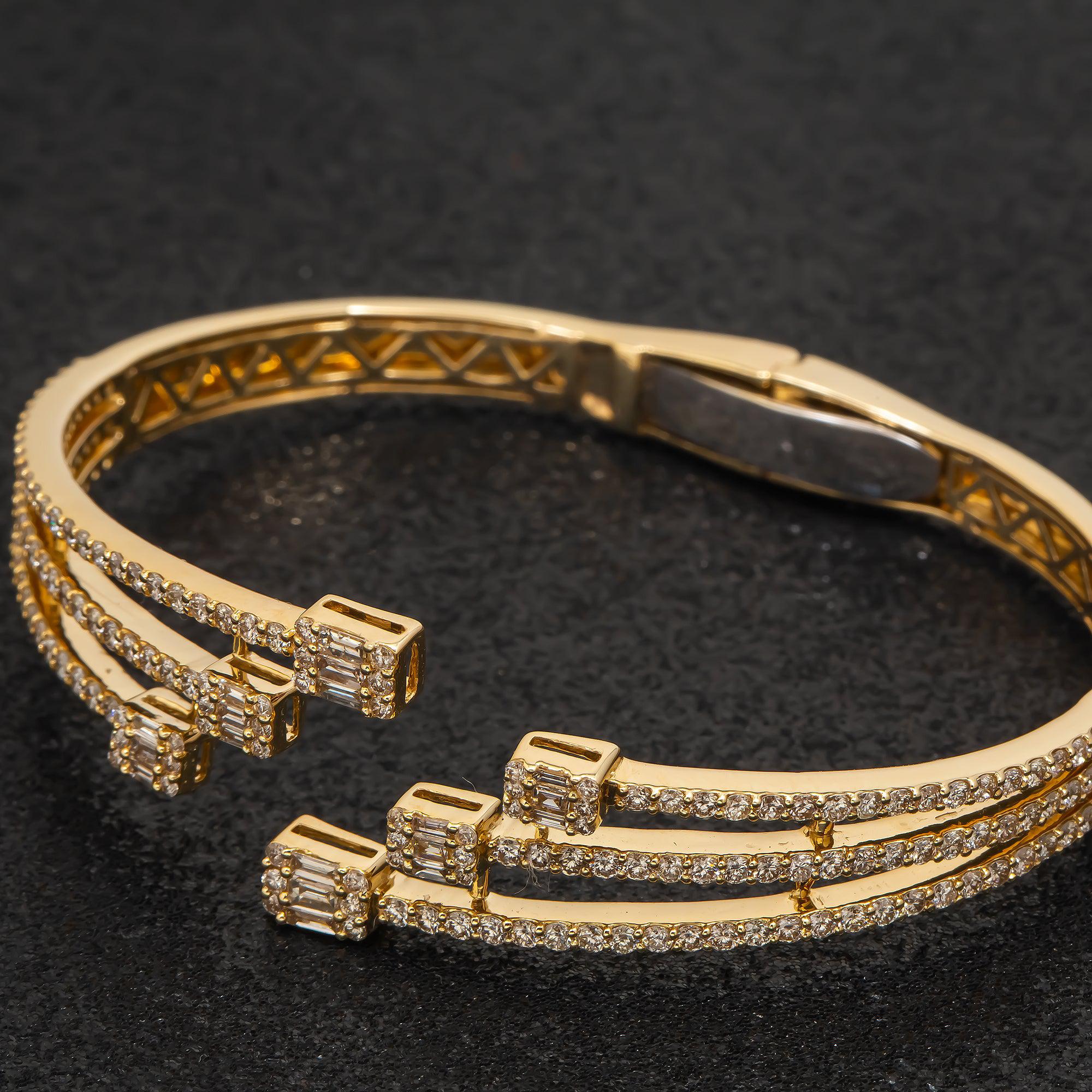 14K GOLD WITH SQUARE SHAPE DIAMONDS BANGLE BRACELET 3.42 CT