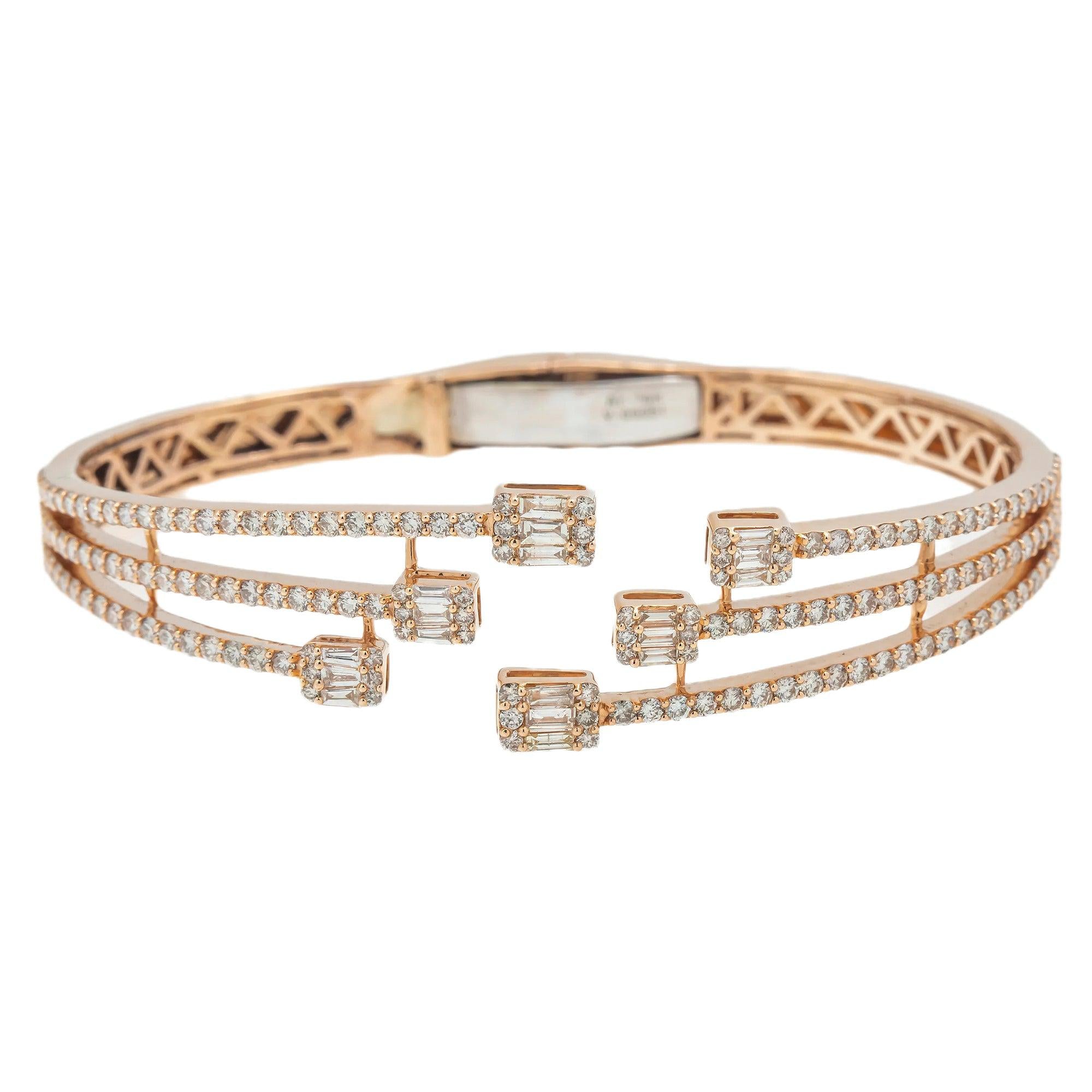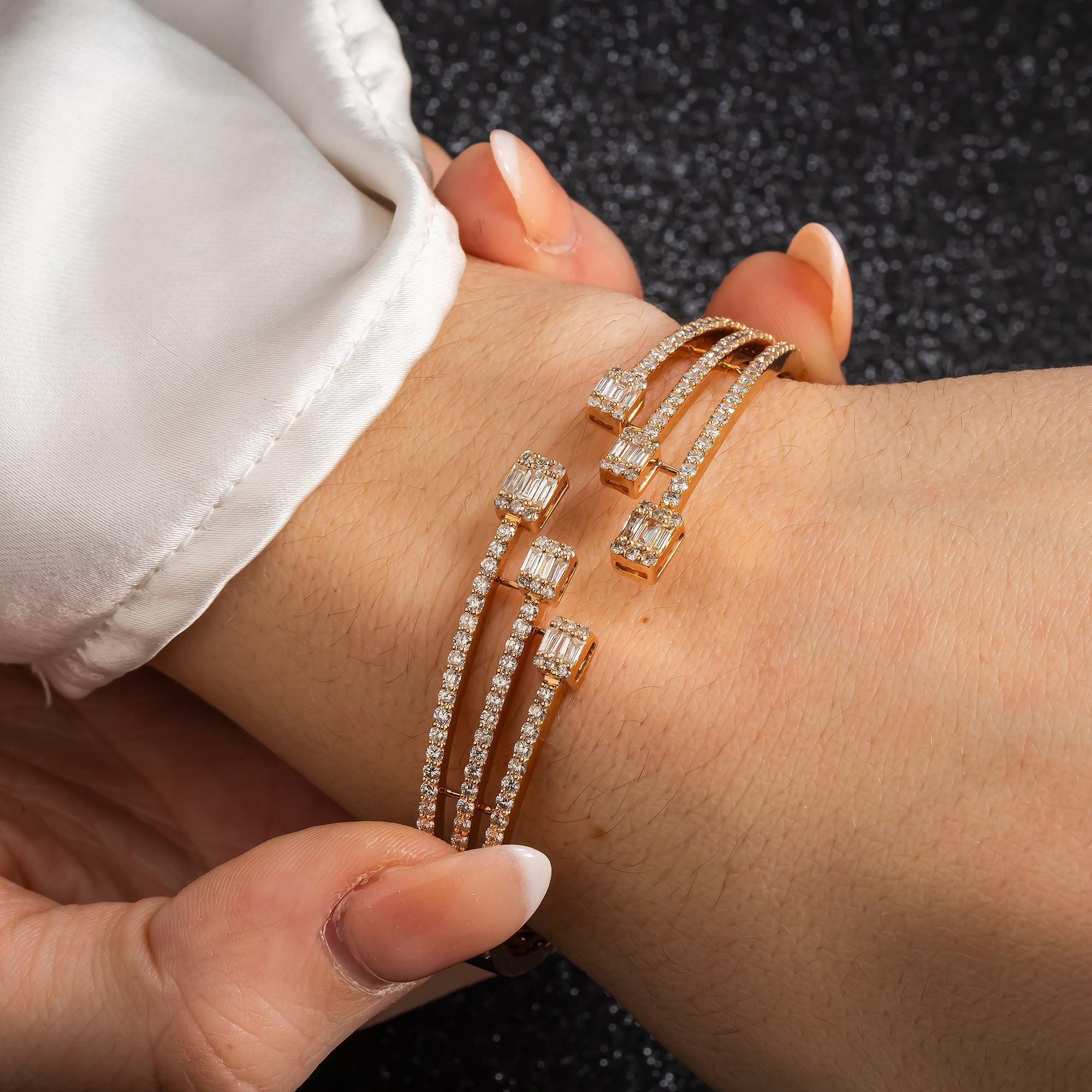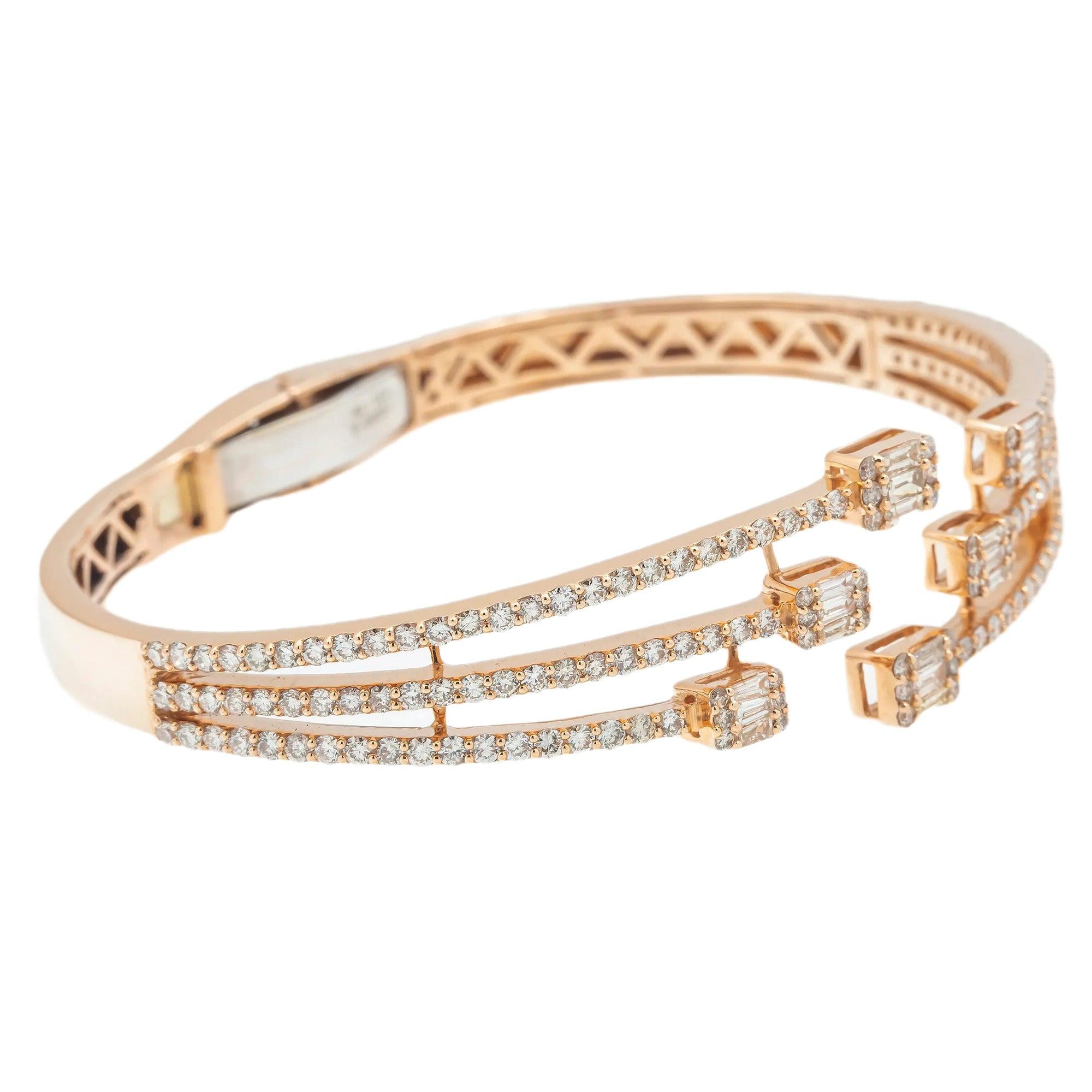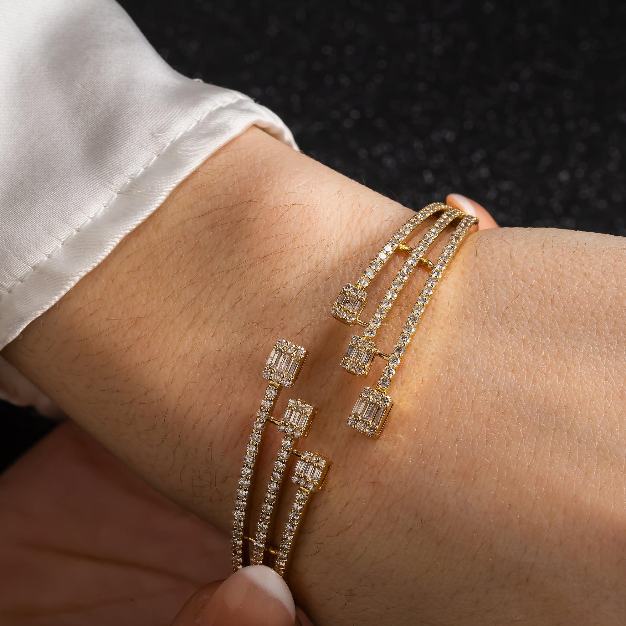 14K GOLD WITH SQUARE SHAPE DIAMONDS BANGLE BRACELET 3.42 CT
