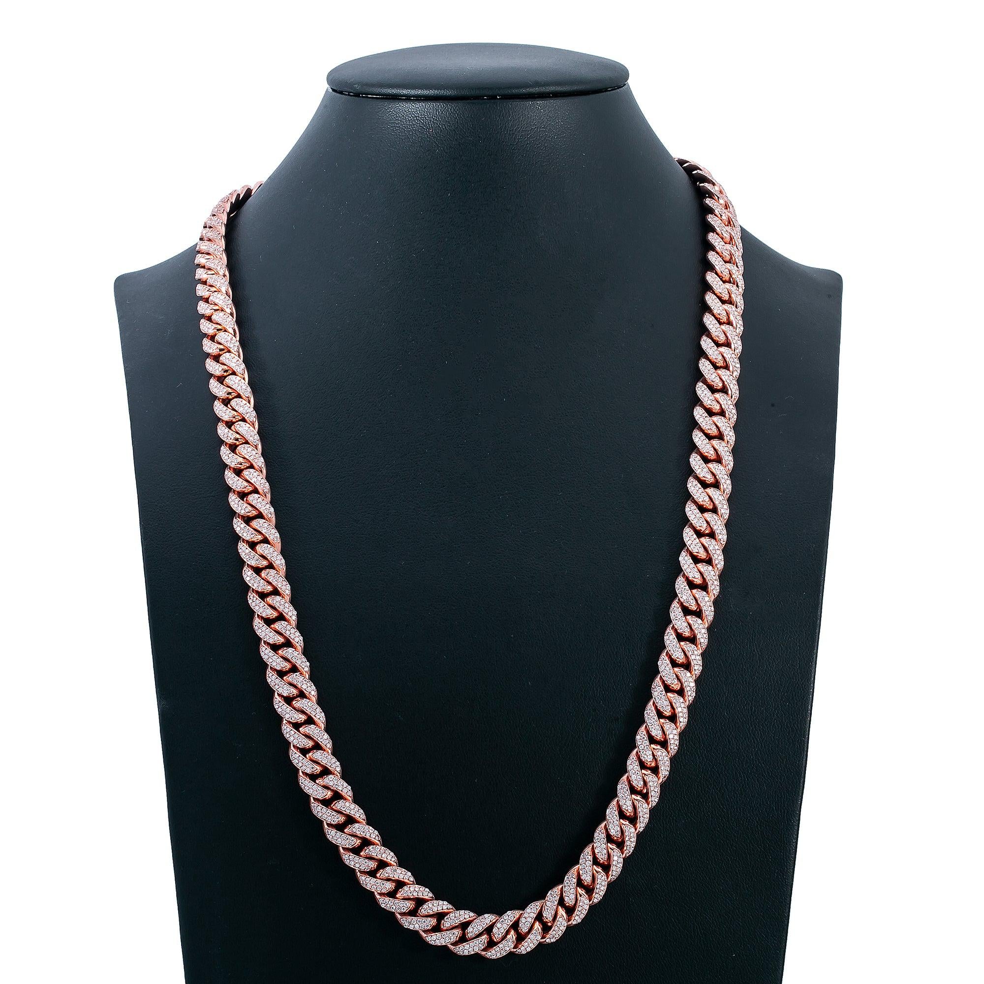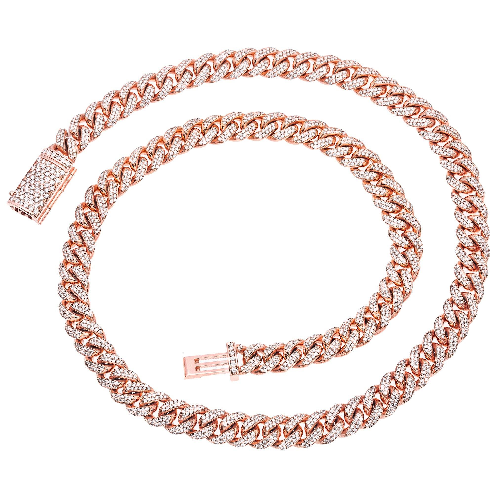 14K ROSE GOLD 24"/10MM CUBAN CHAIN WITH 15.50 CT DIAMONDS