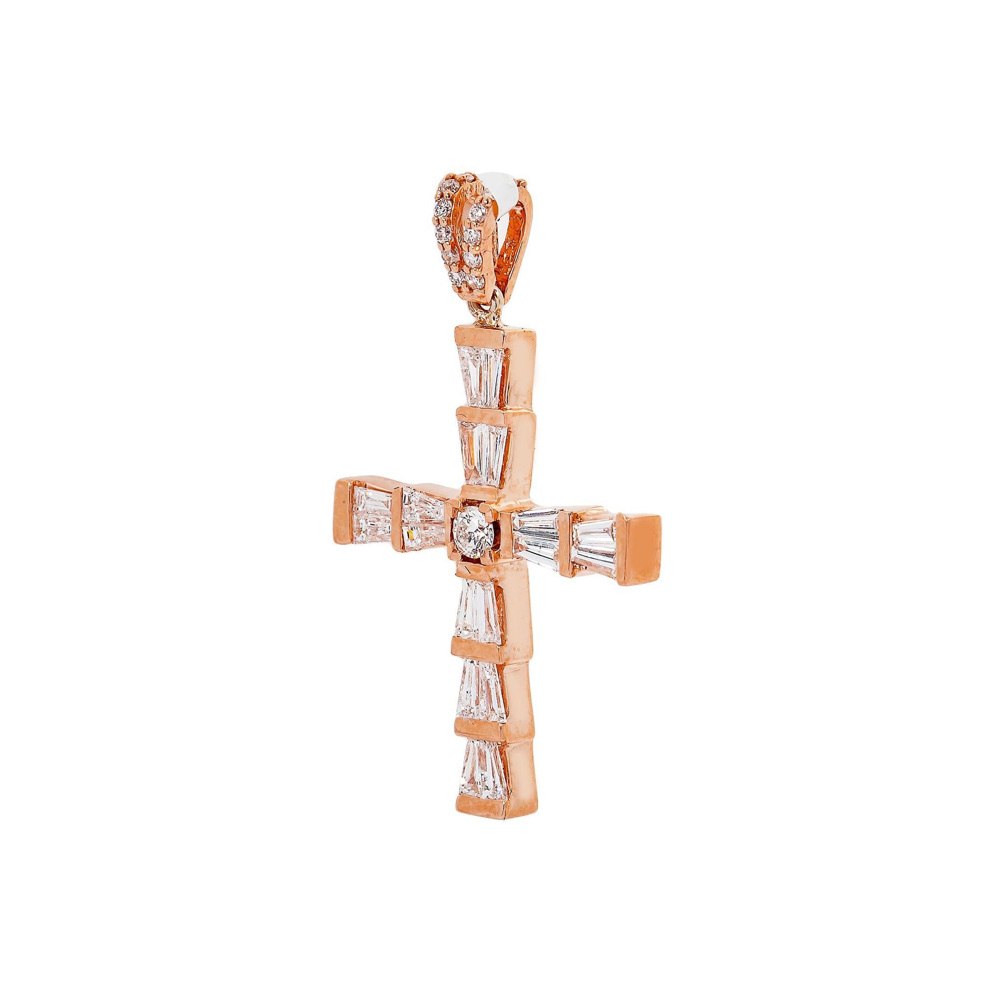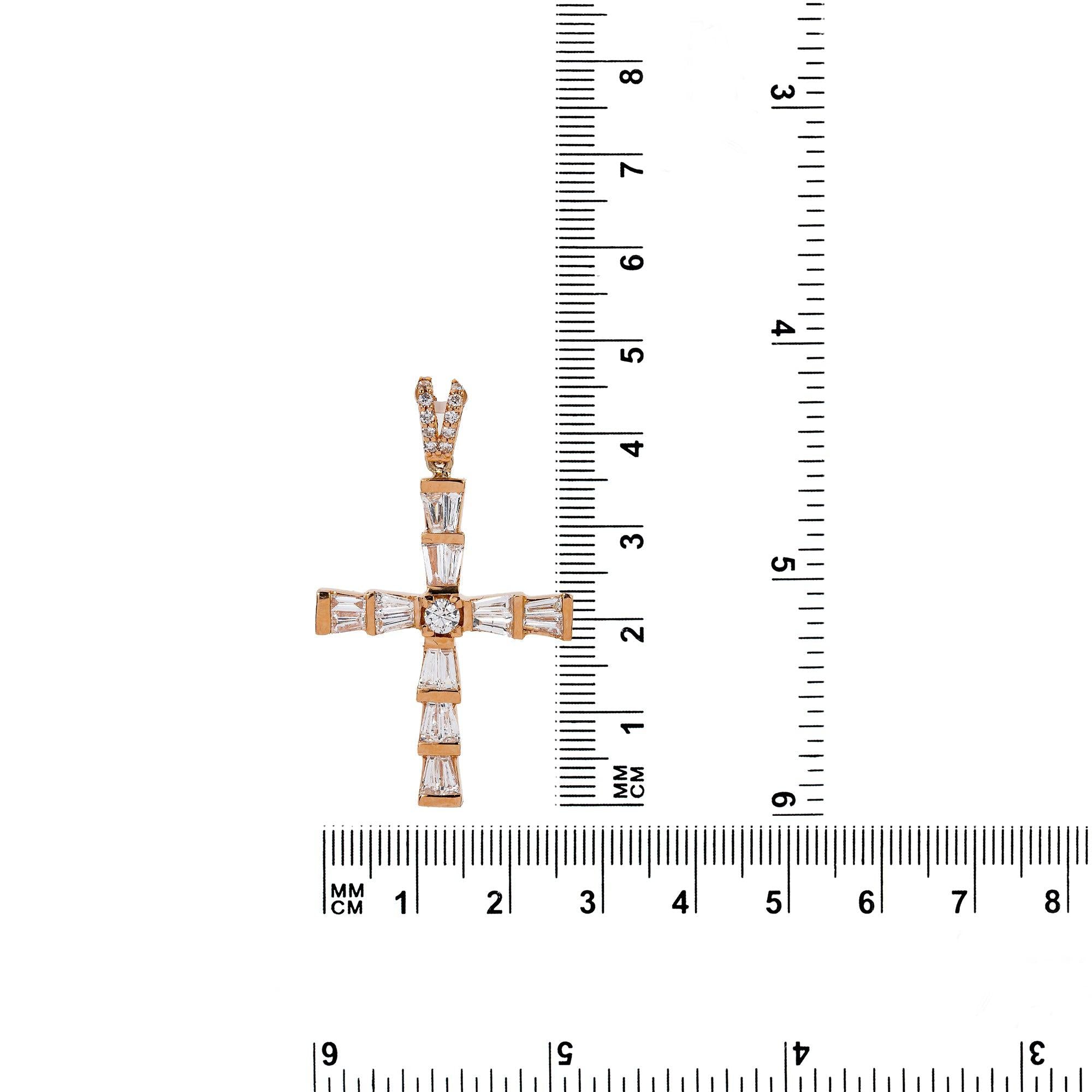14K Rose Gold Cross Pendant with 0.74 CT Baguette Diamond