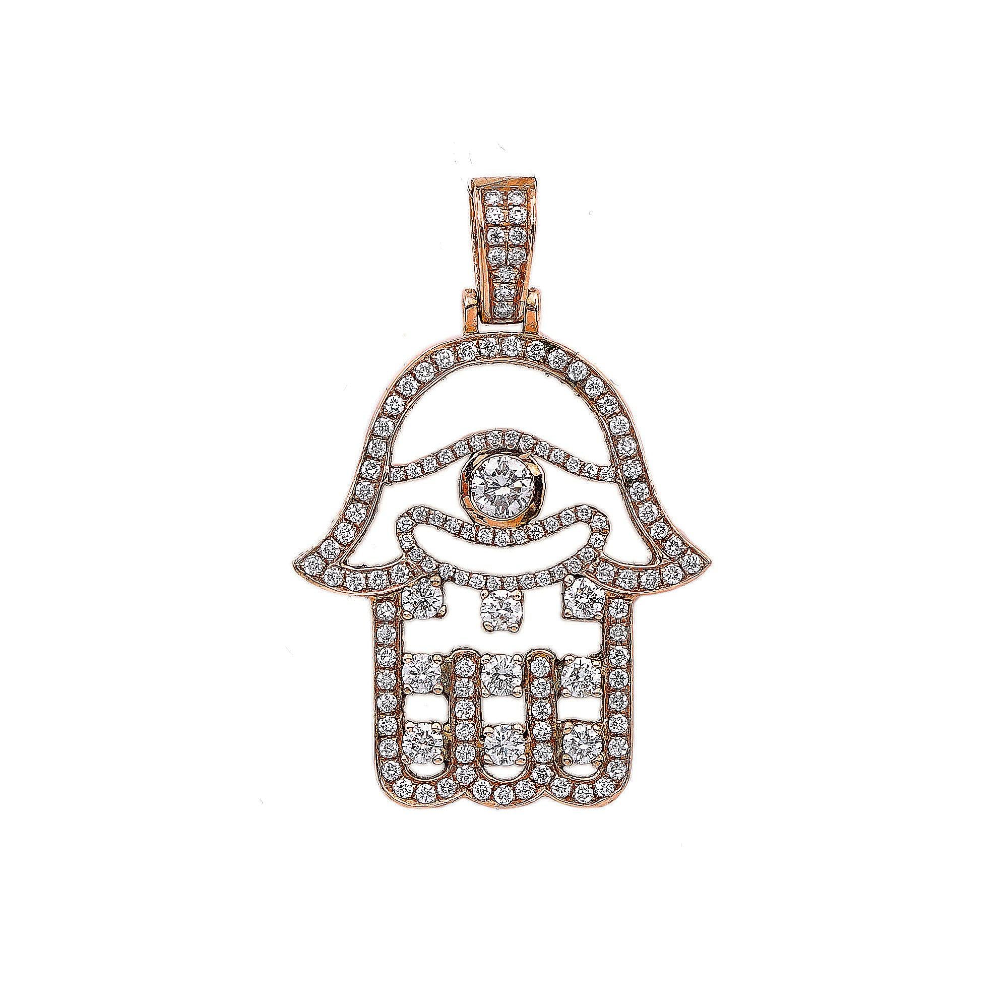 14K Rose Gold Diamond Hamsa Shaped Pendant