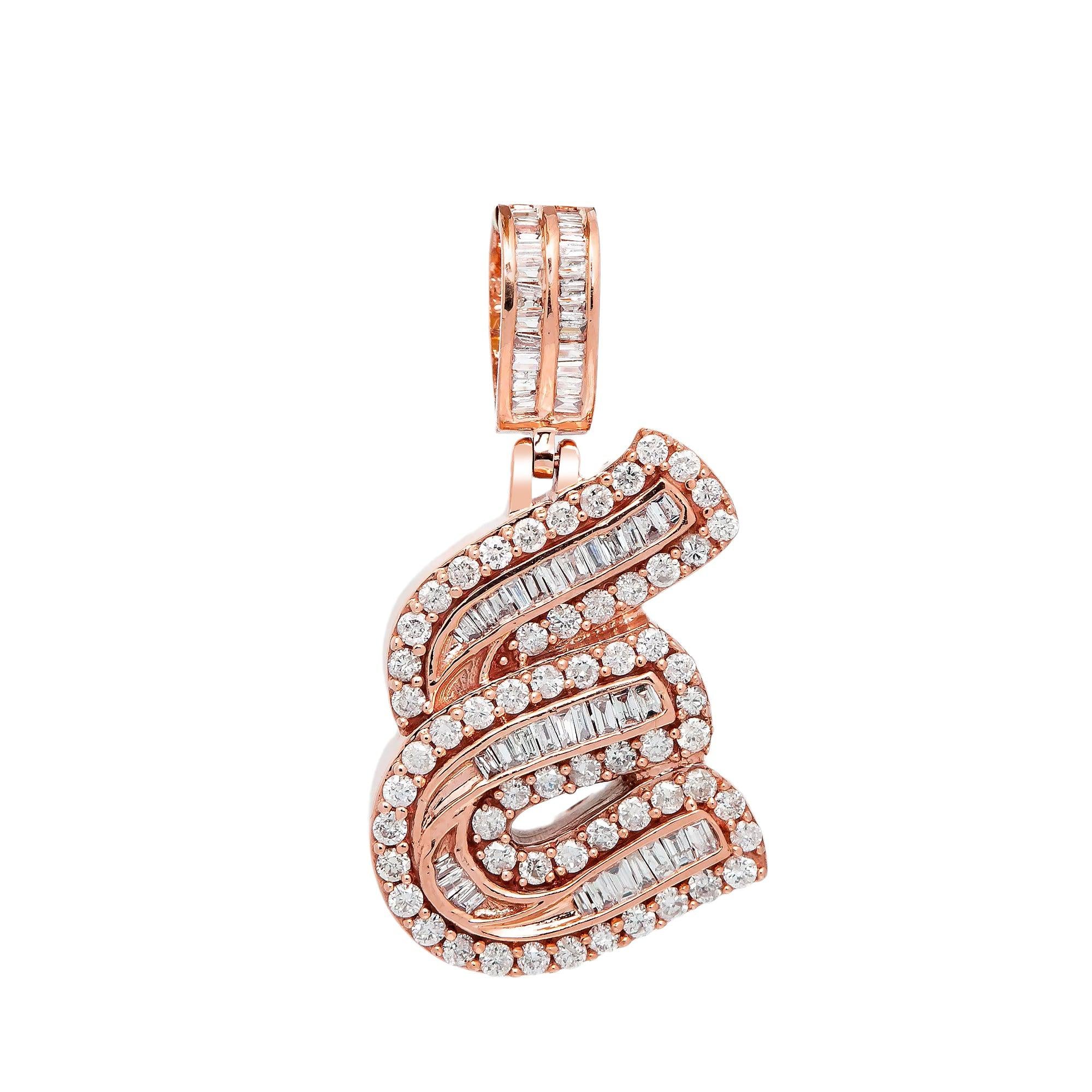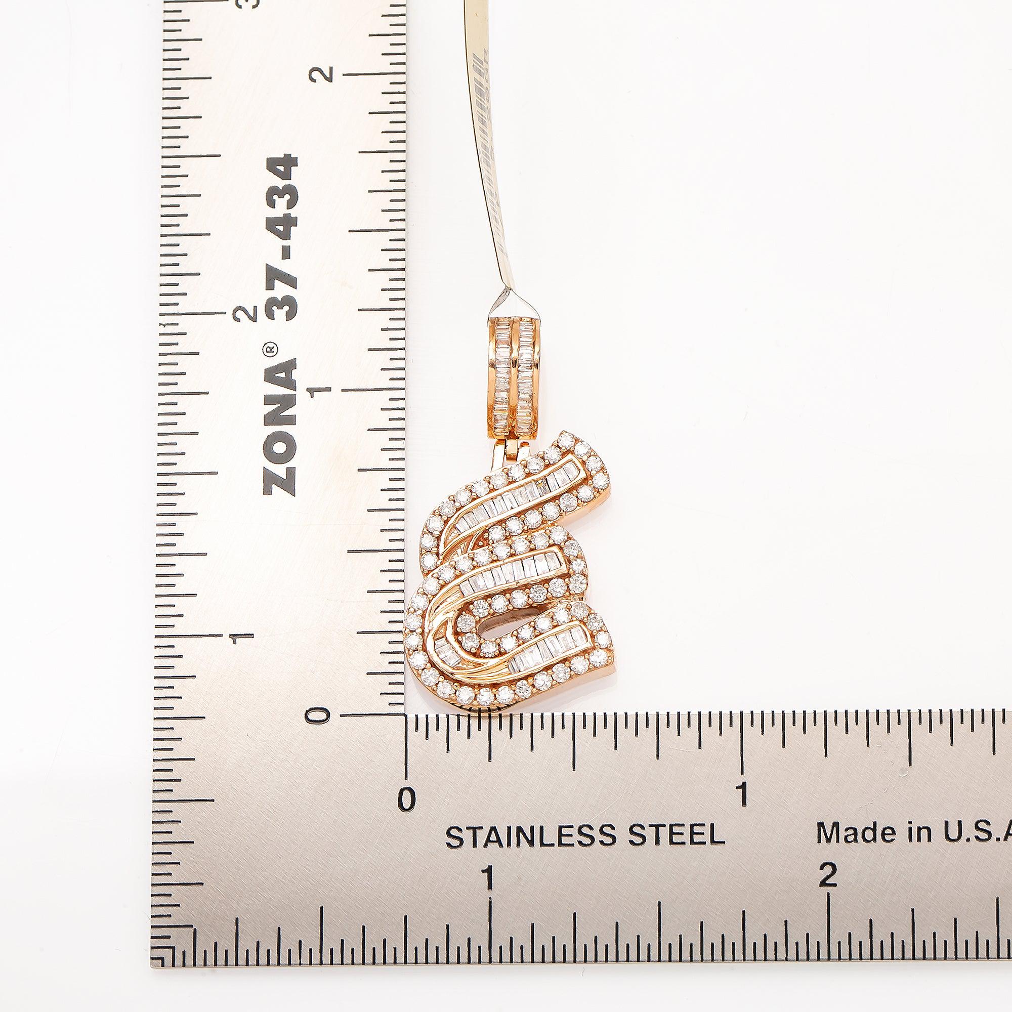 14K ROSE GOLD LETTER E PENDANT WITH ROUND & BAGUETTE DIAMONDS