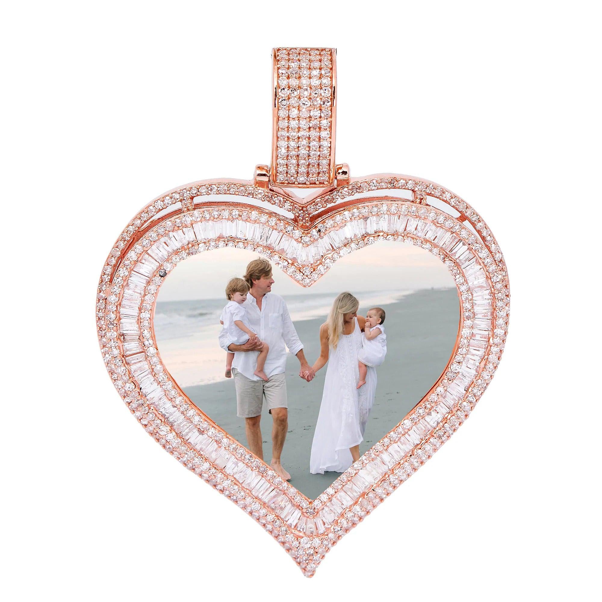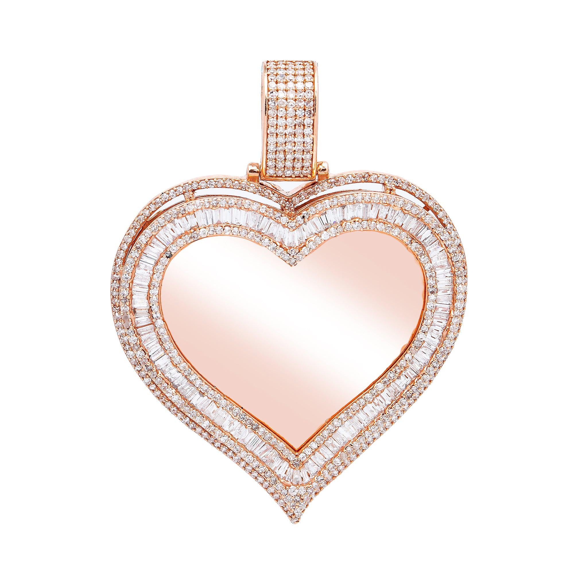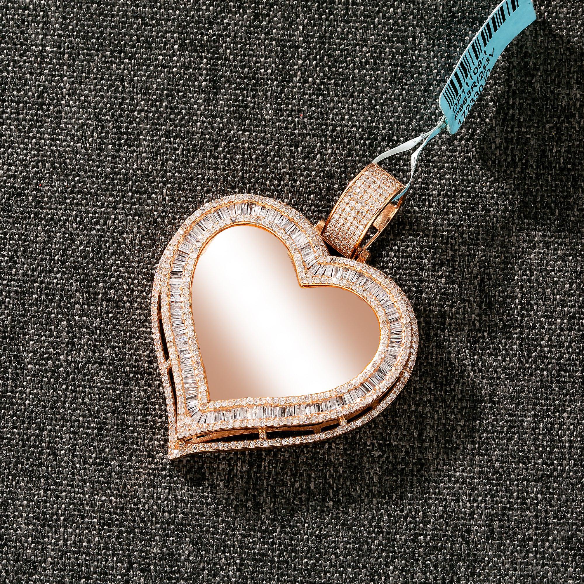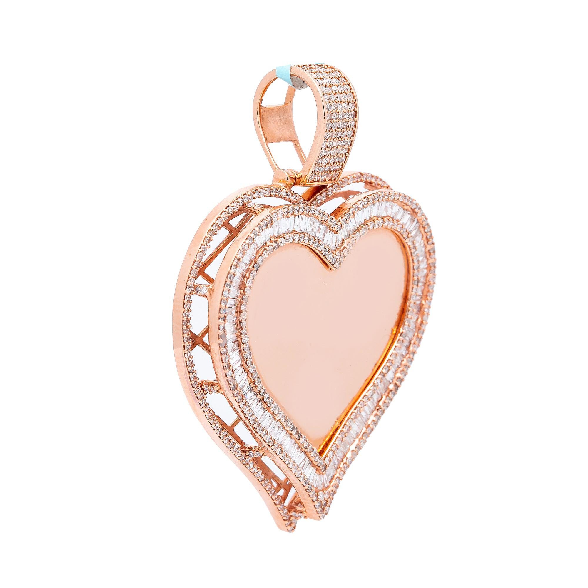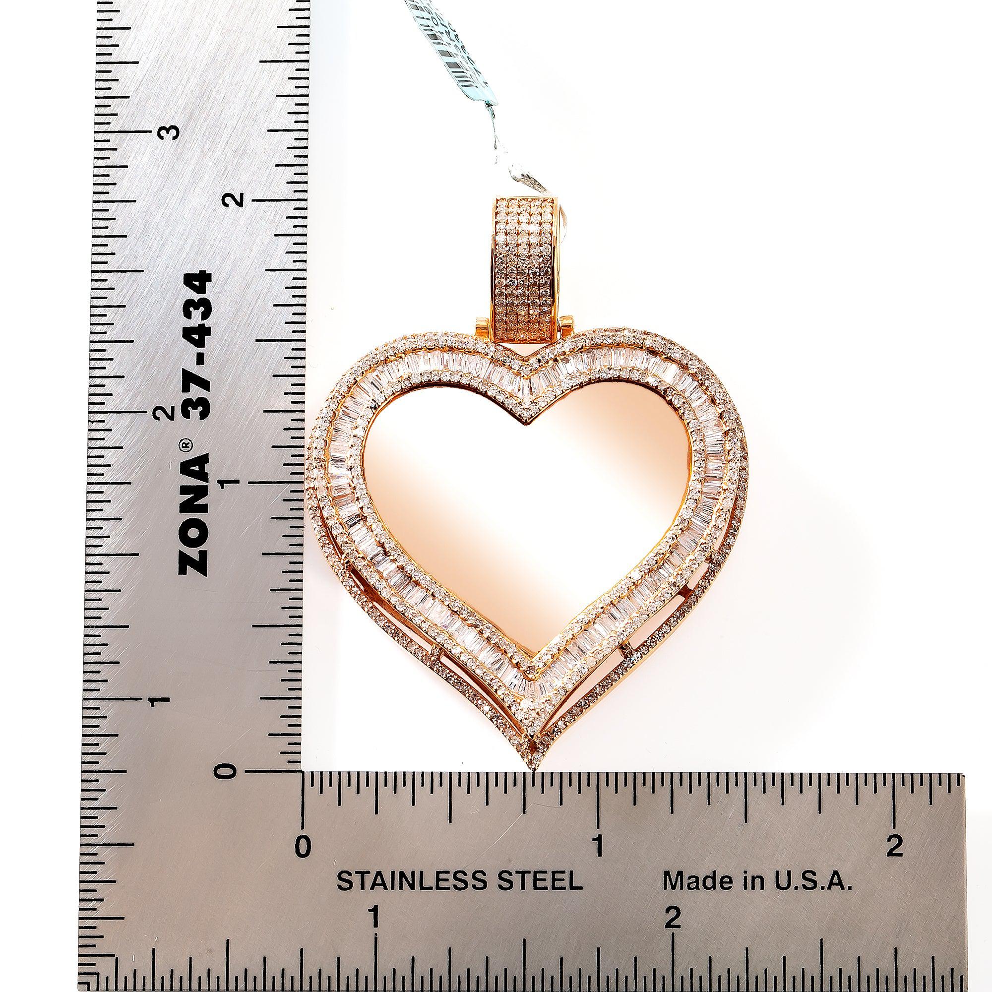 14K GOLD PICTURE HEART PENDANT WITH ROUND & BAGUETTE DIAMONDS 2.79 CT