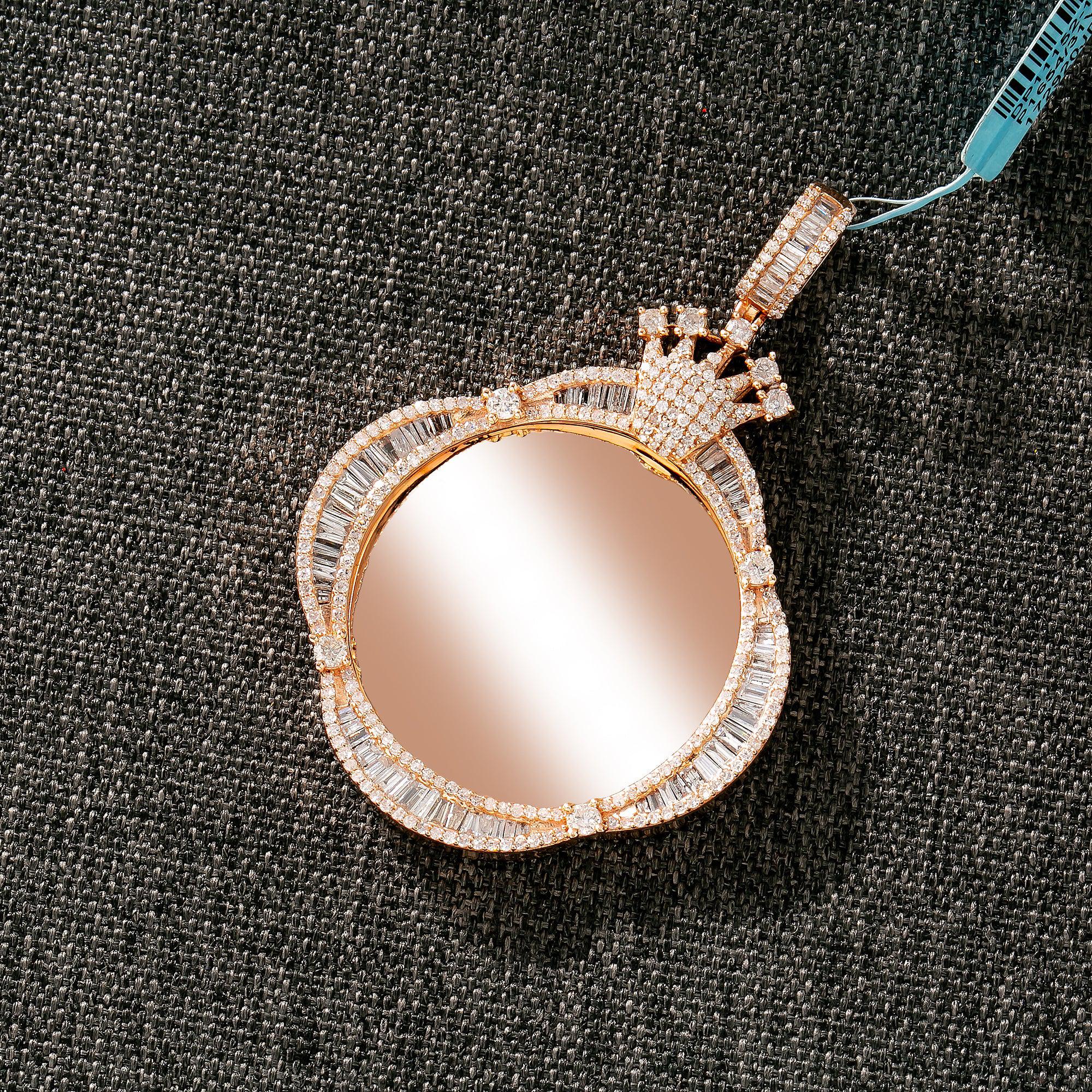 14K GOLD DIAMOND CUSTOM PICTURE PENDANT WITH CROWN 2.59 CT