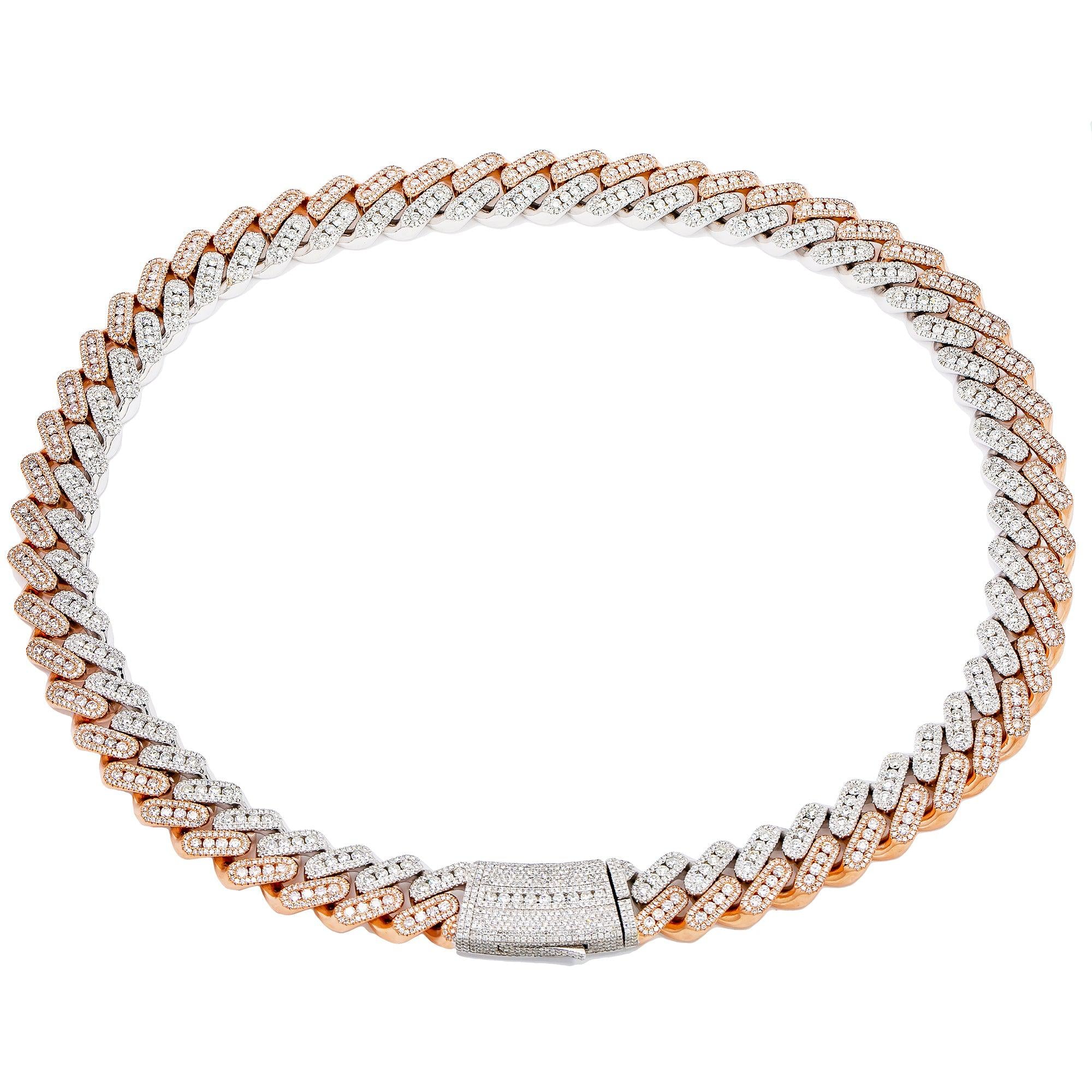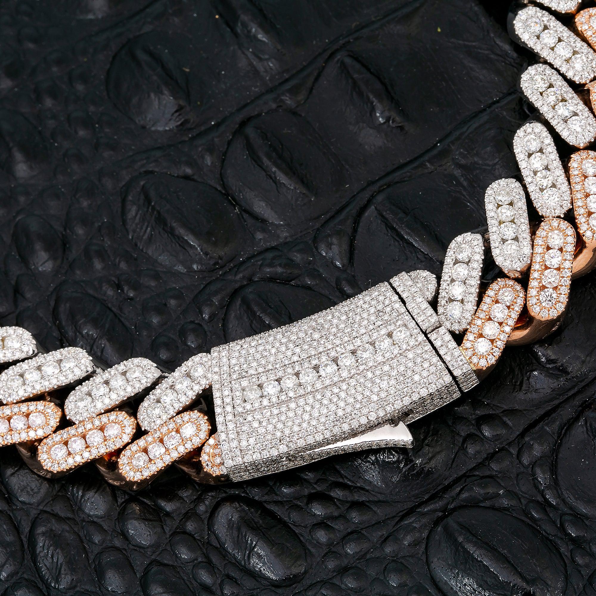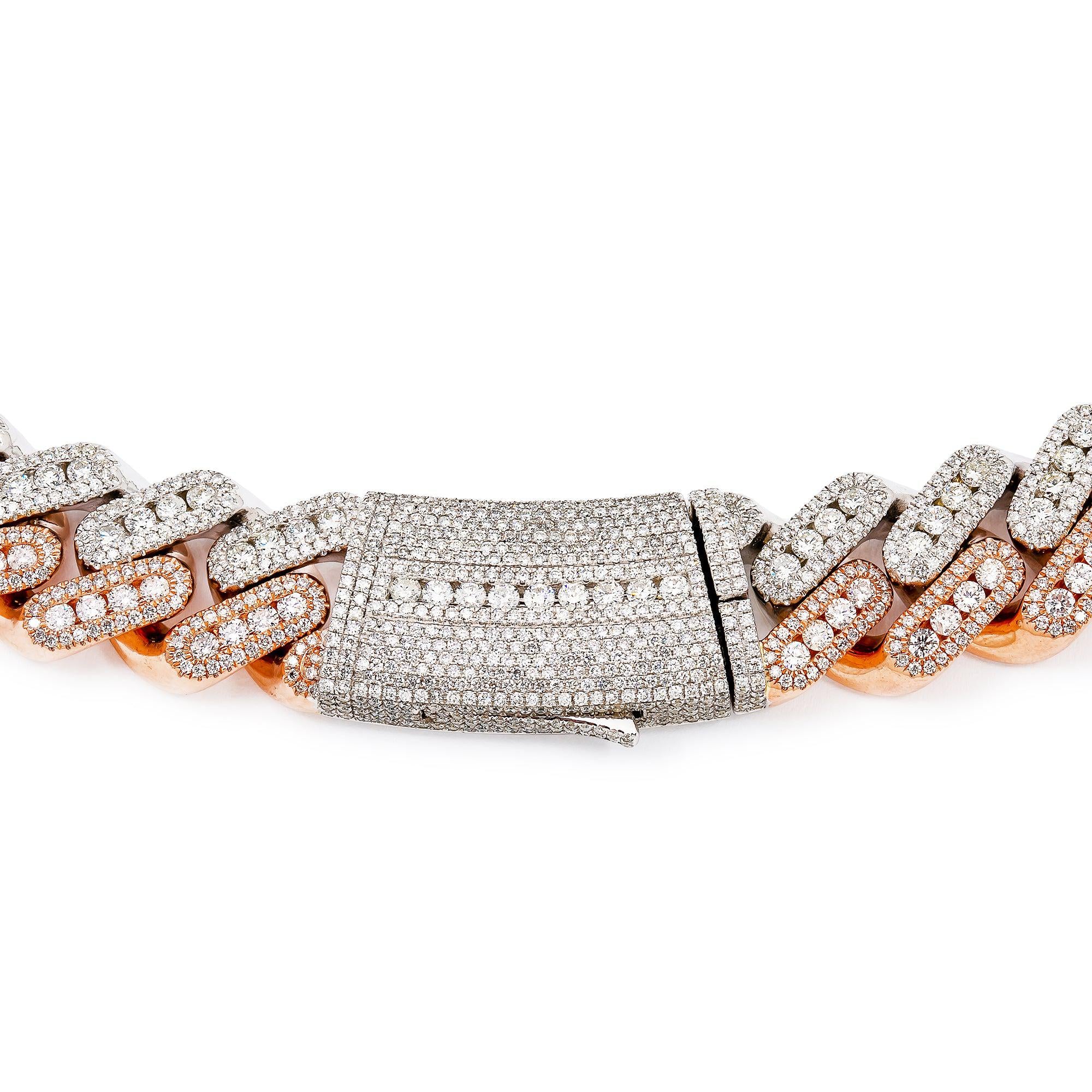 14K ROSE & WHITE GOLD CUBAN CHAIN WITH 34.60 CT DIAMONDS