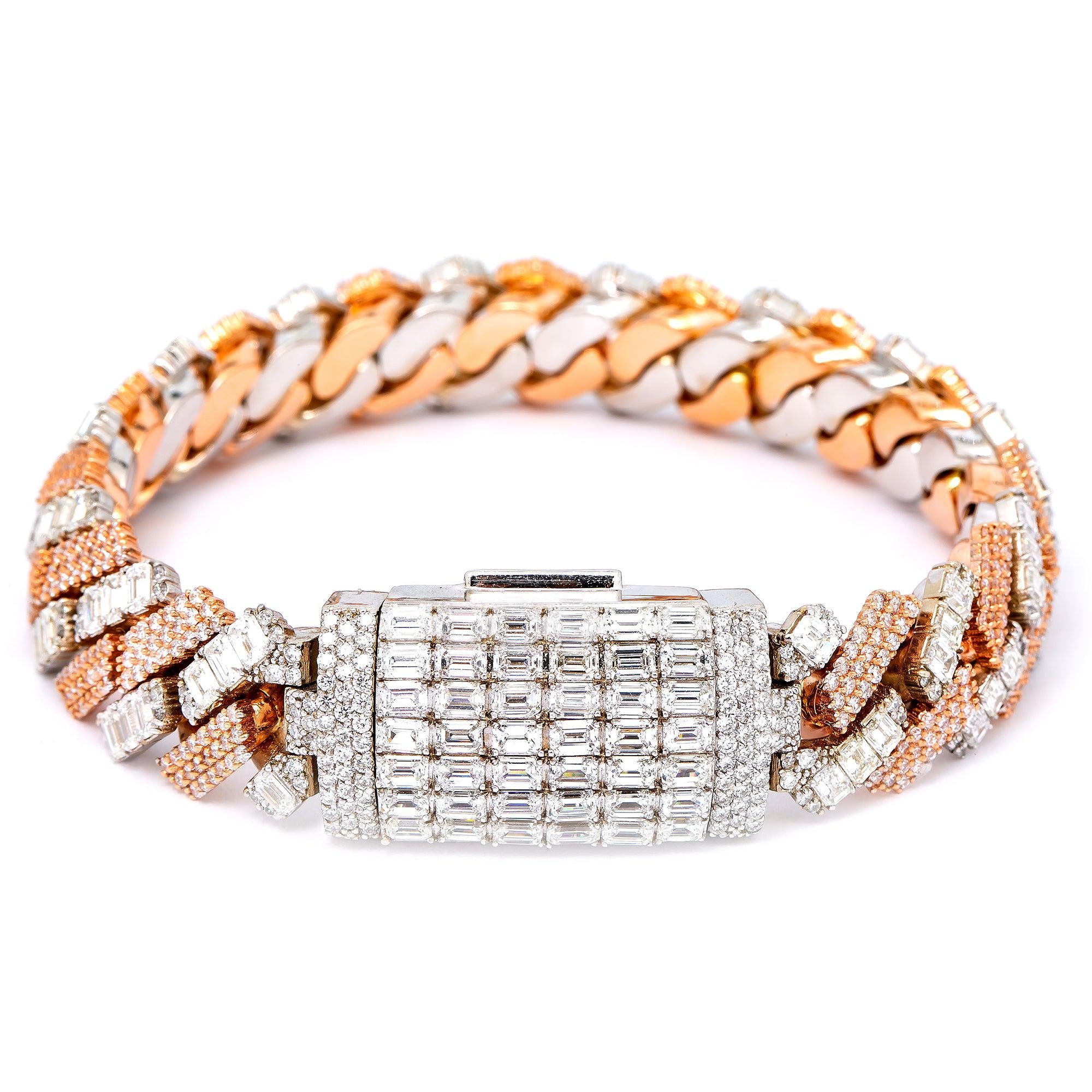 14K Rose & White Gold Men's Diamond Bracelet With Baguette Diamonds Lock