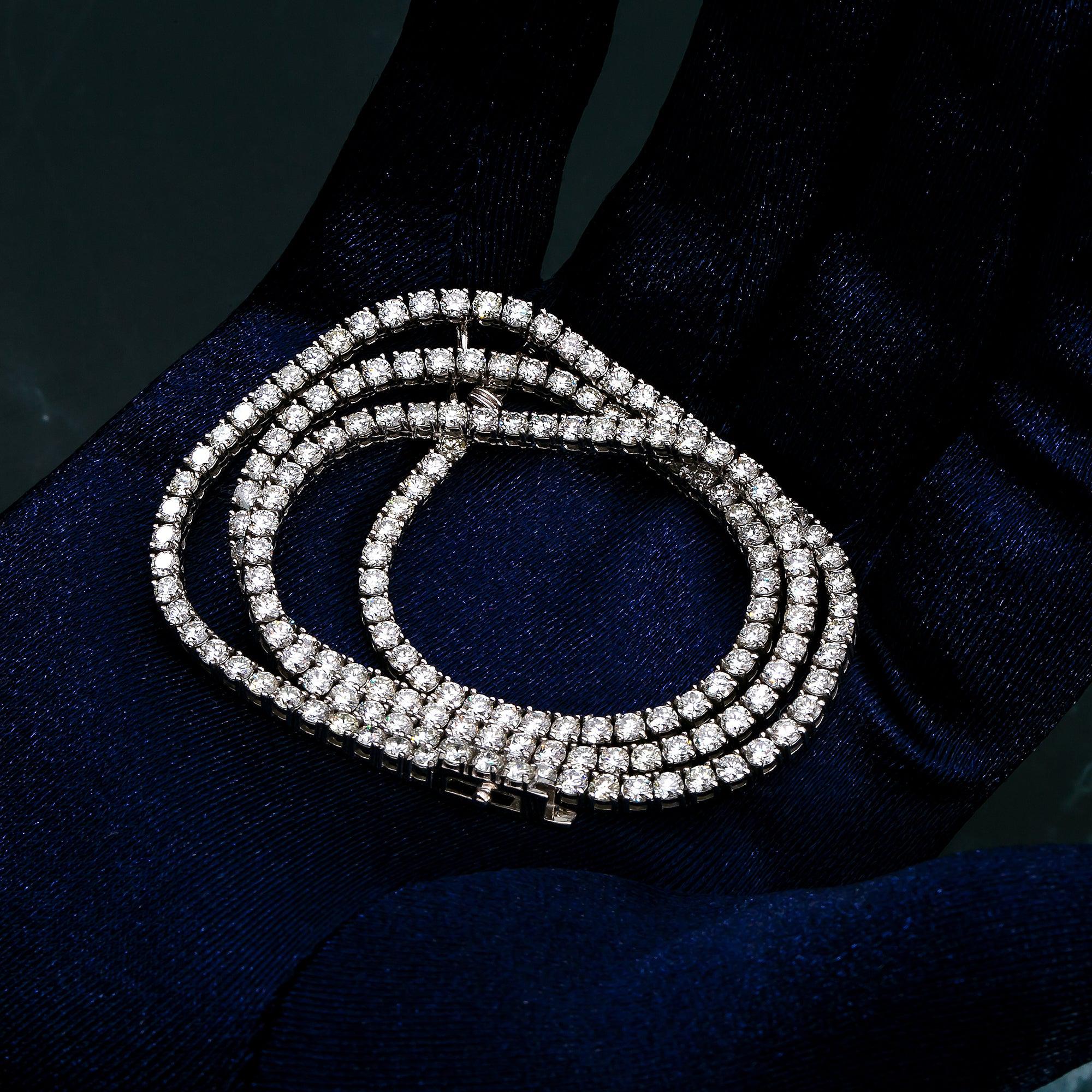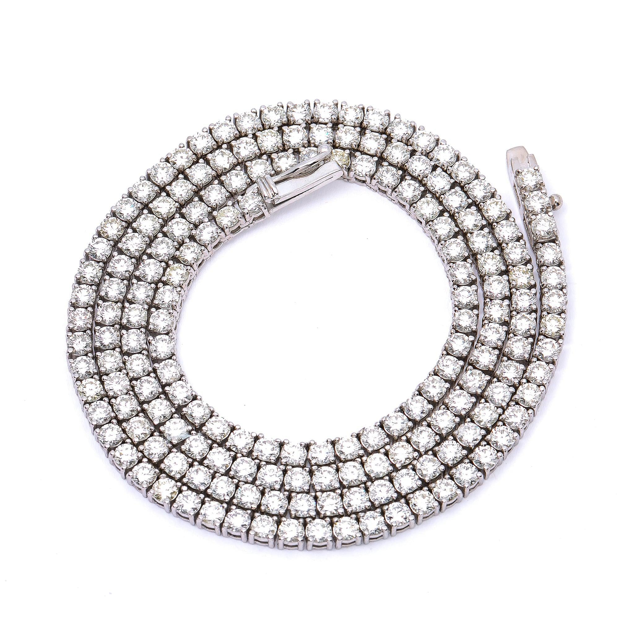14K WHITE GOLD 18" TENNIS CHAIN WITH 10.34 CT DIAMONDS
