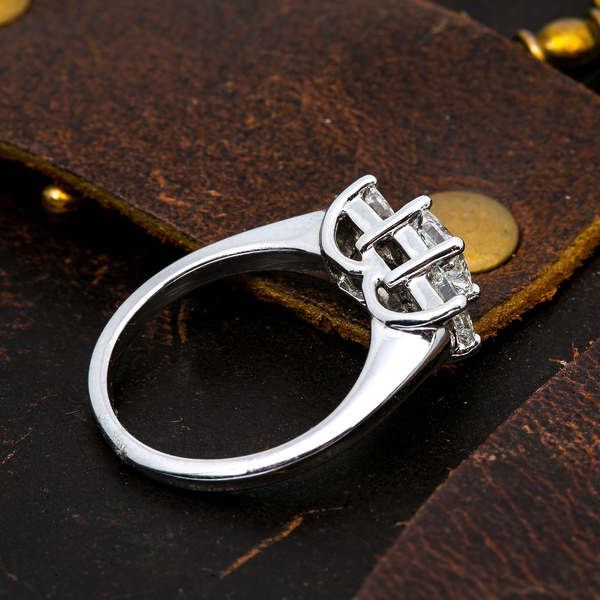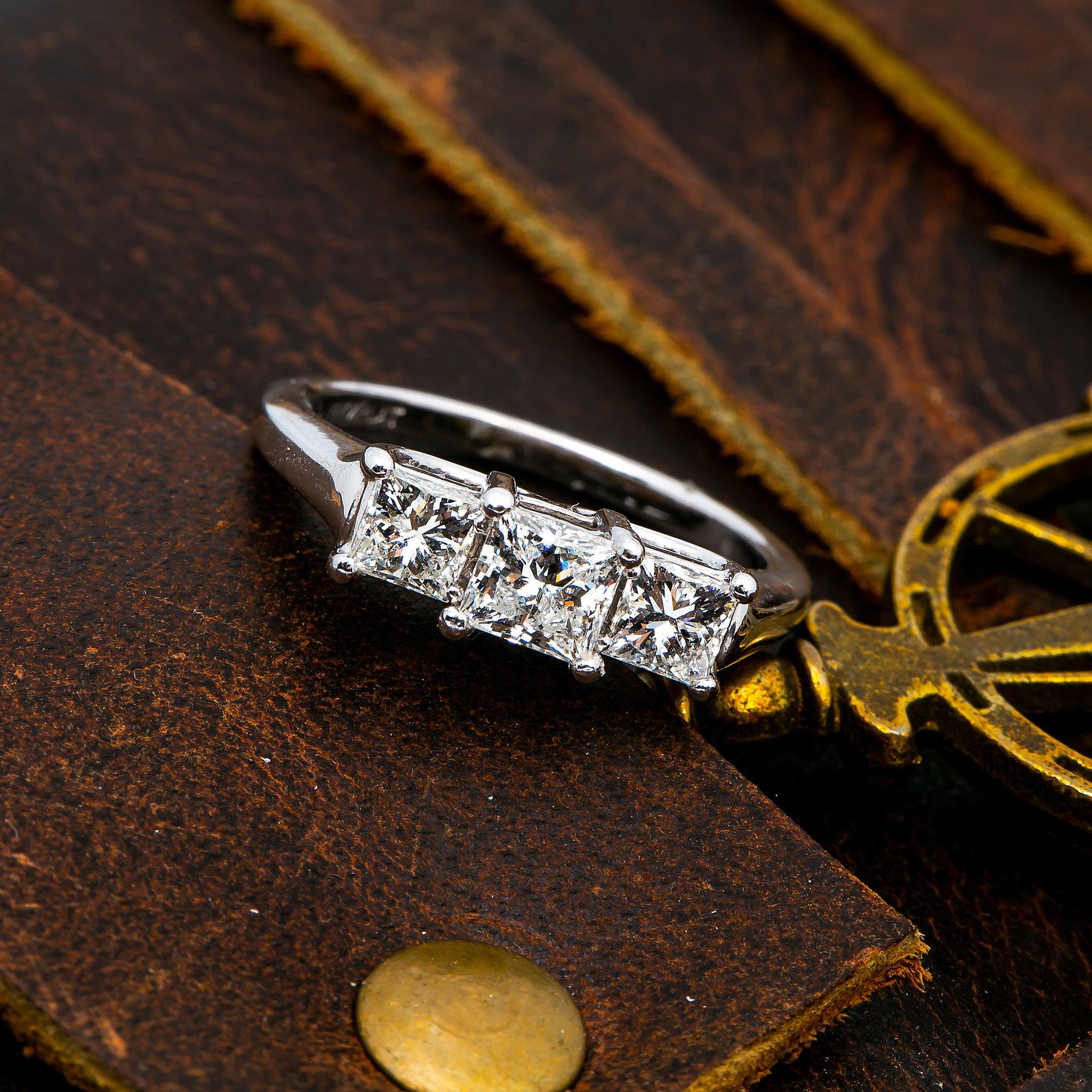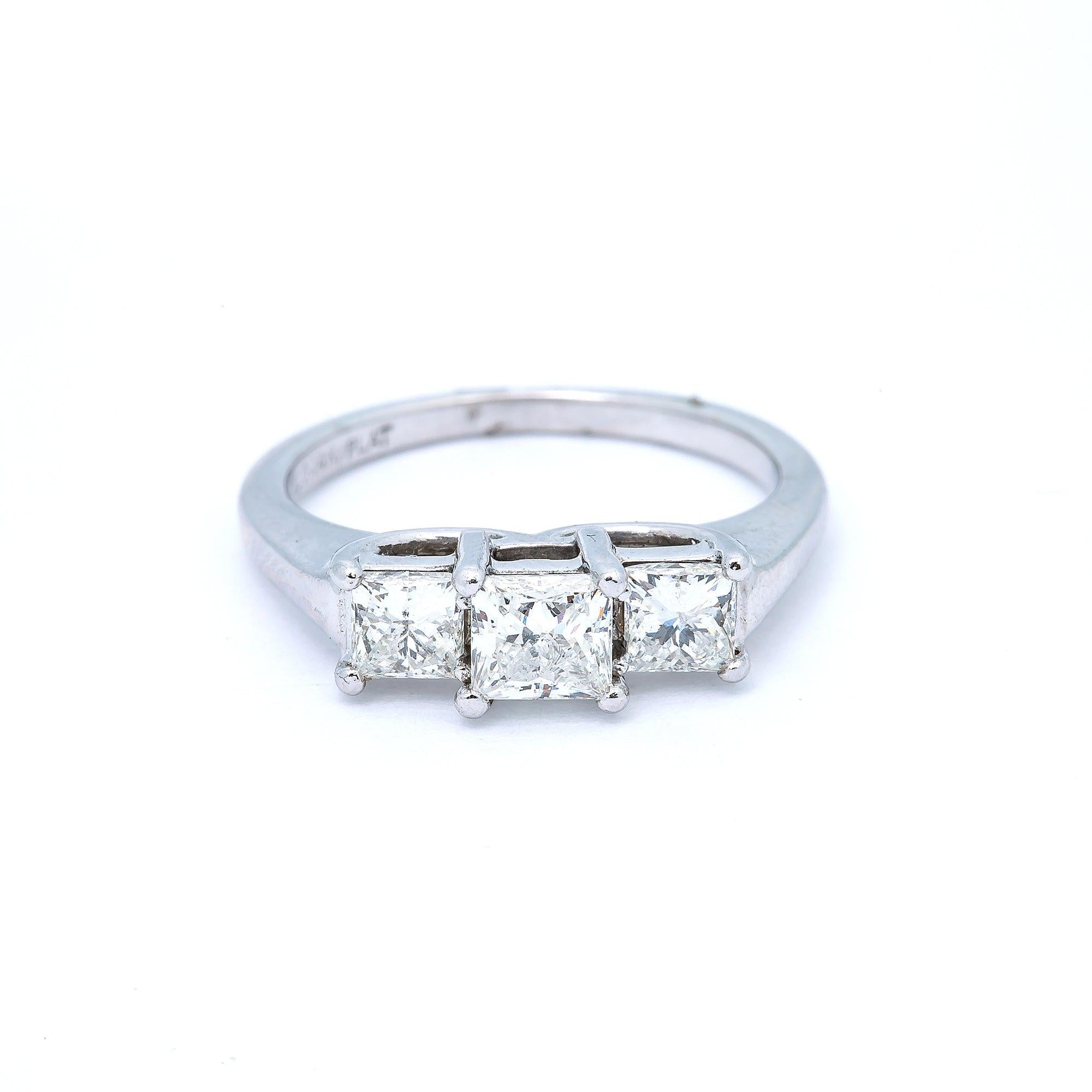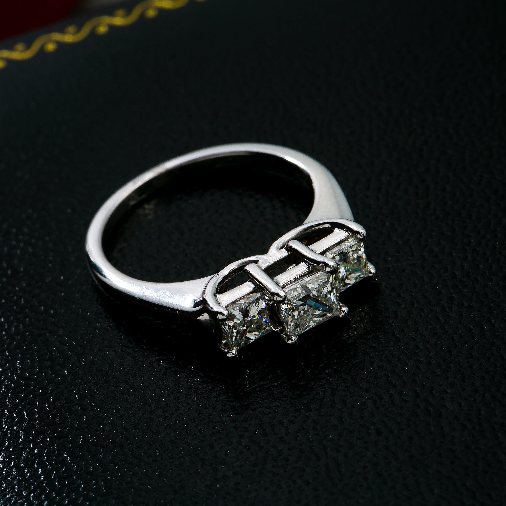 PLATINUM 3 STONE PRINCESS CUT DIAMOND ENGAGEMENT RING