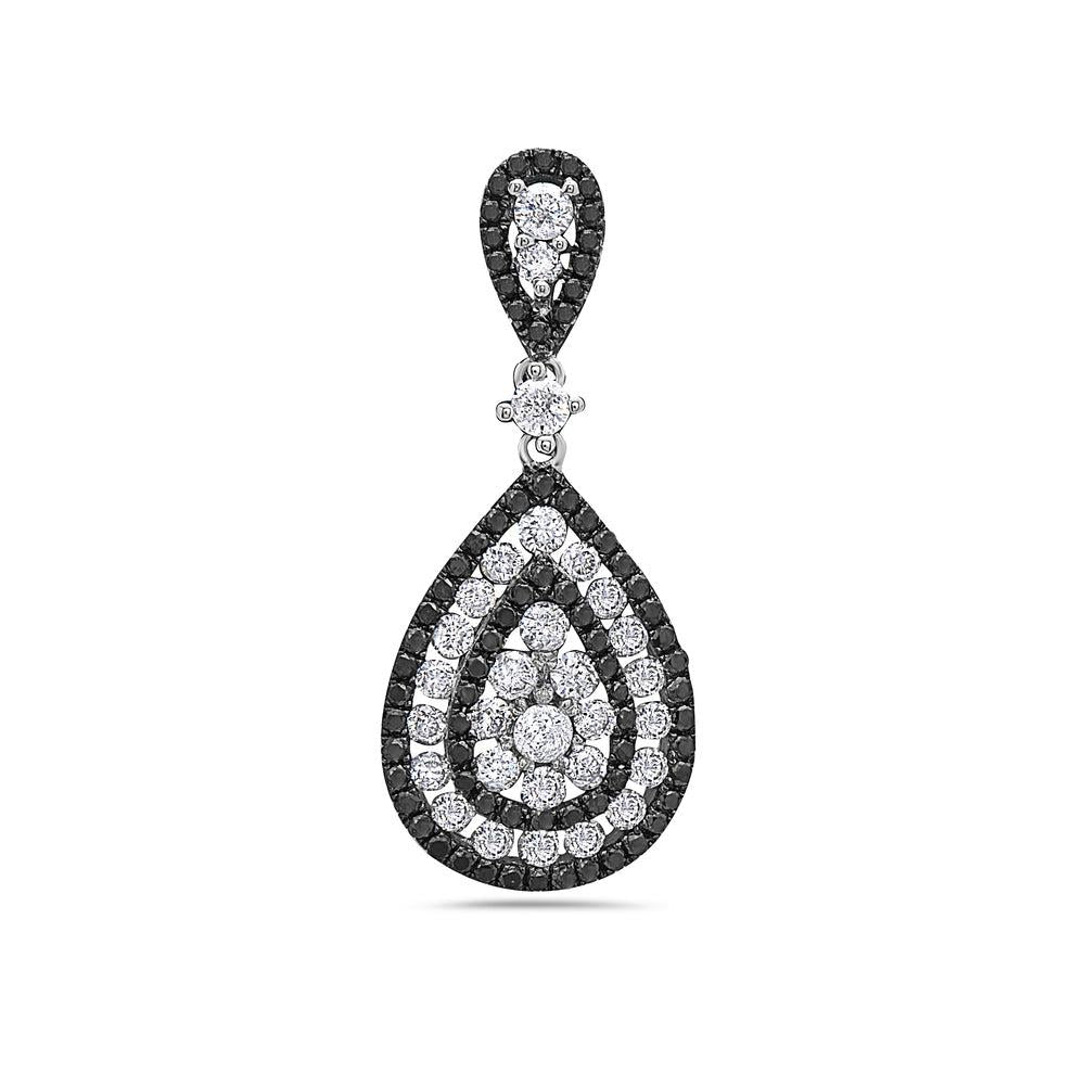 14K White Gold Black & White Drop Women's Pendant with 1.40CT Diamonds