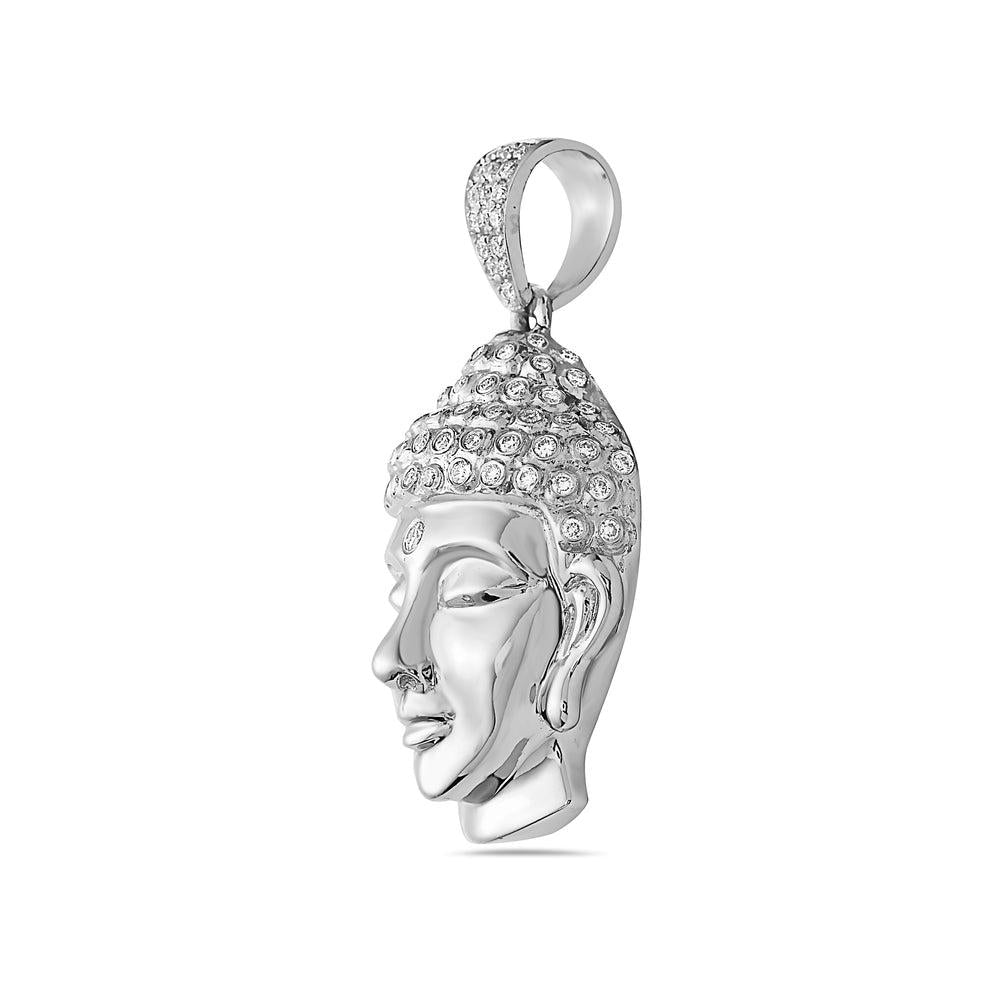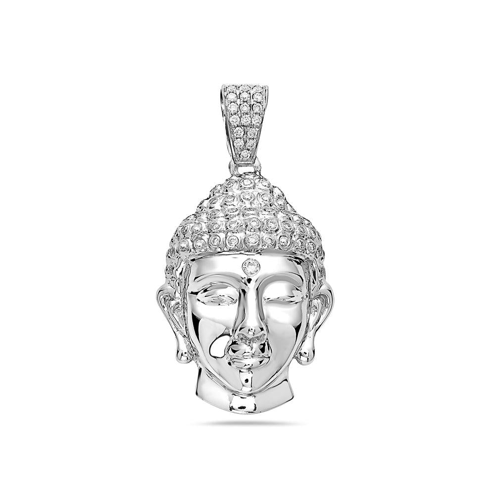14K White Gold Buddha Women's Pendant With 0.90 CT Diamonds