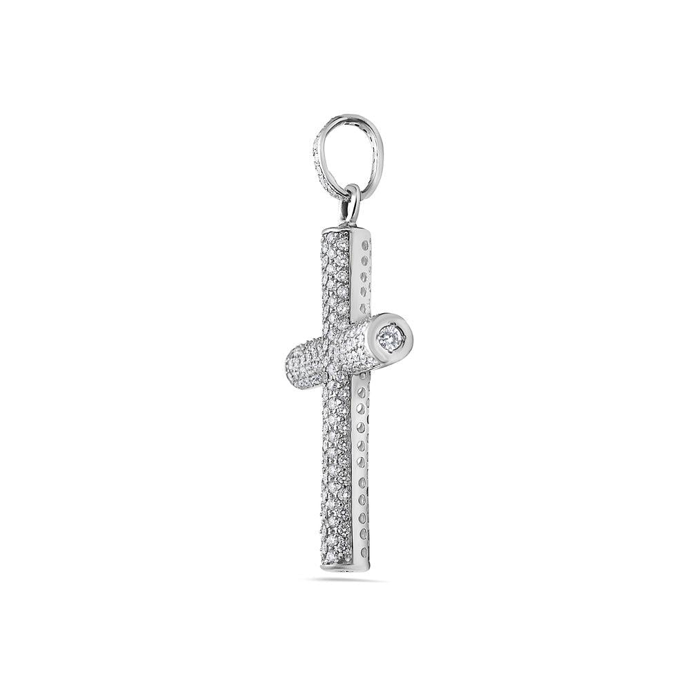 Unisex 14K White Gold Cross Women's Pendant with 3.50CT Diamonds