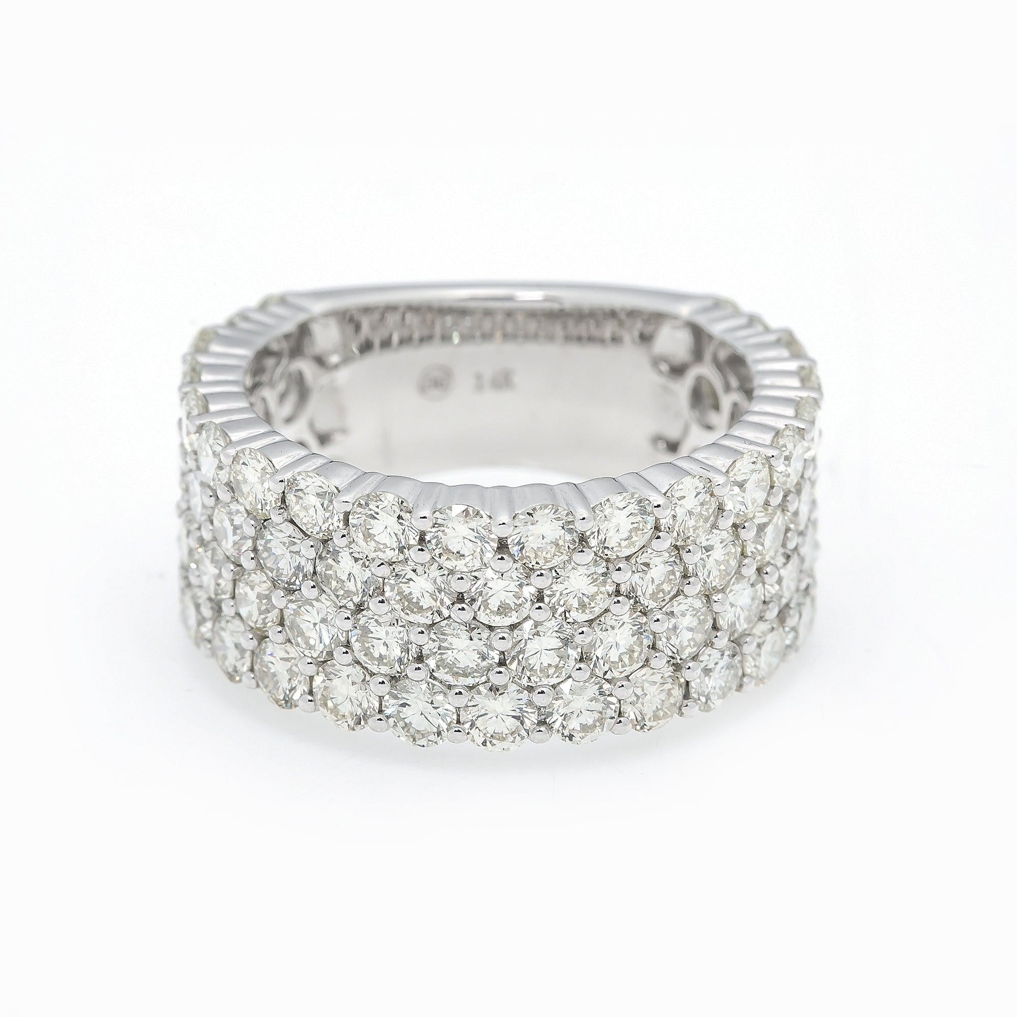 14K WHITE GOLD 4 ROW DIAMOND RING 7.00 CT