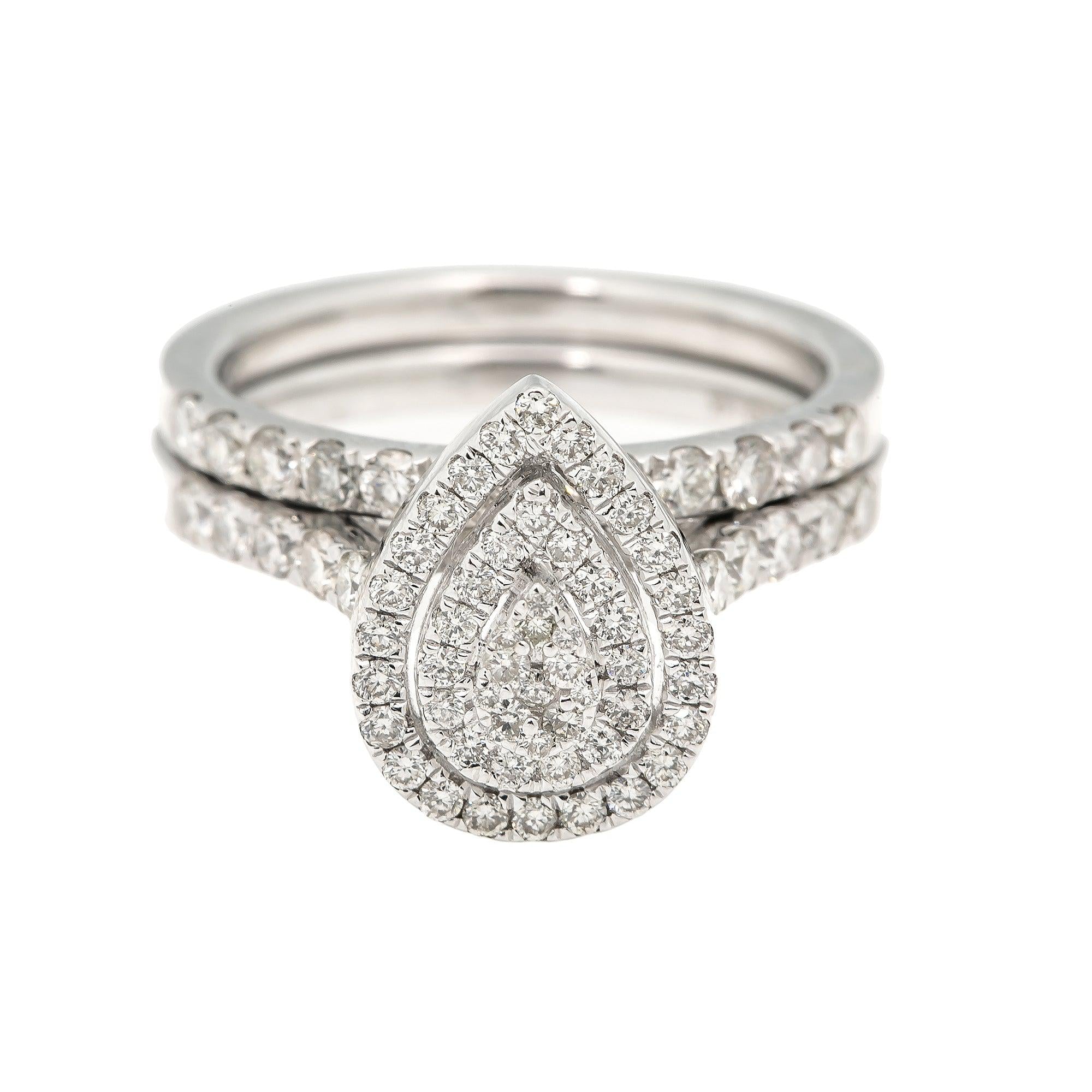 14K WHITE GOLD LADIES PEAR BRIDAL SET WITH 1.7 CT DIAMONDS