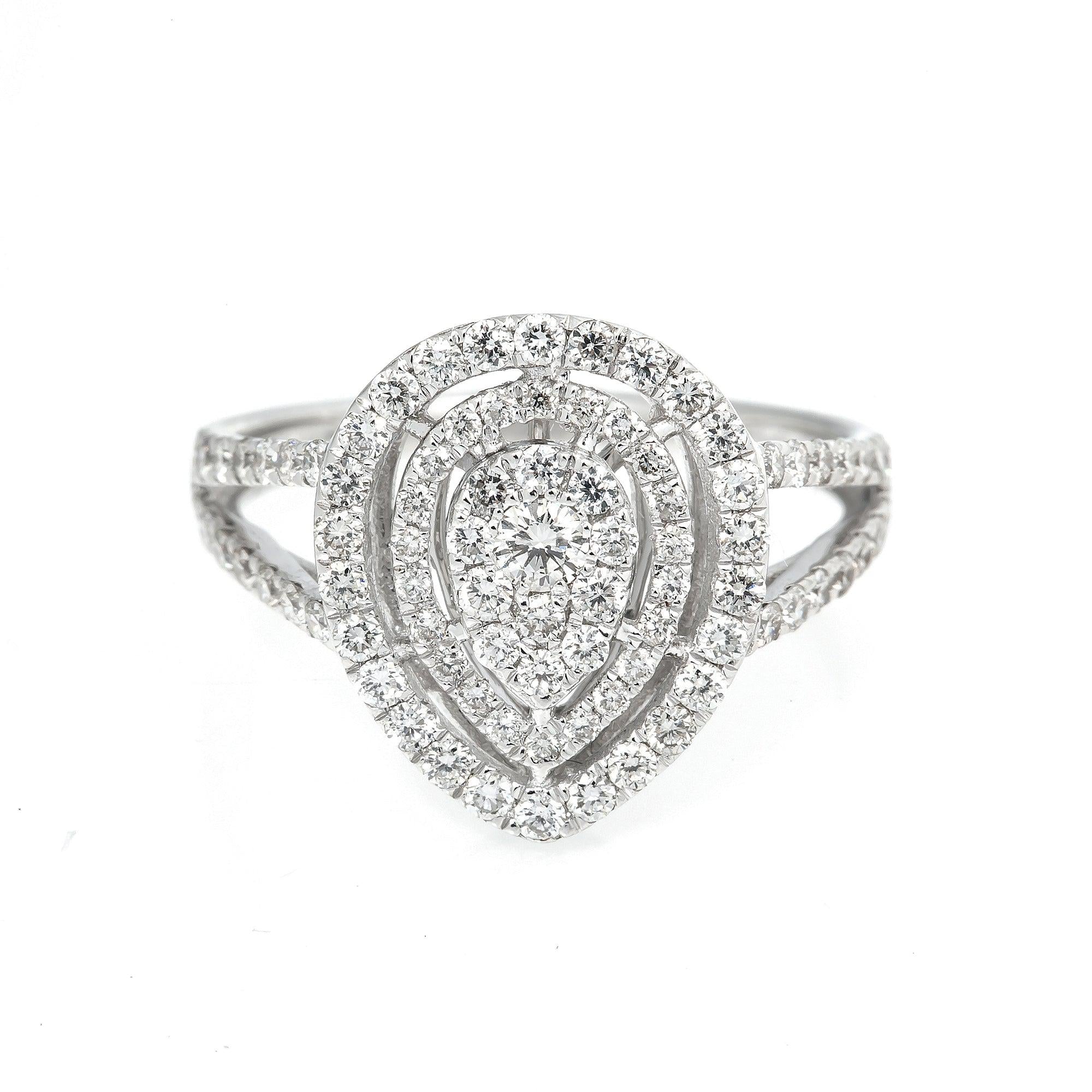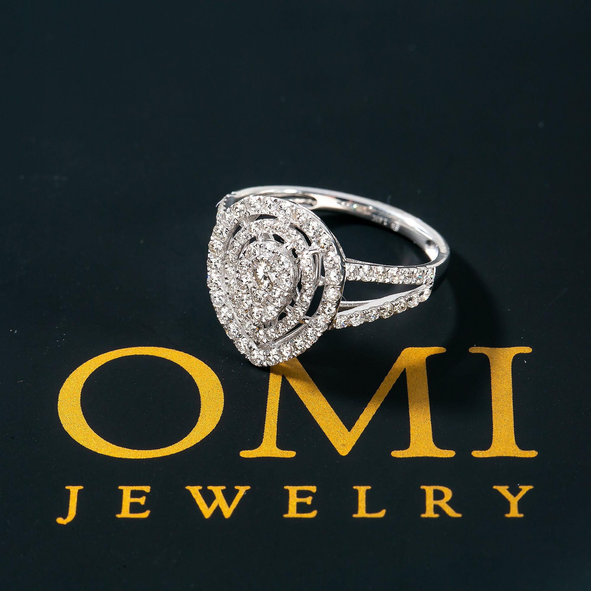 14K White Gold Diamond Pear Cluster Engagement Ring with 1.5 CT Diamonds