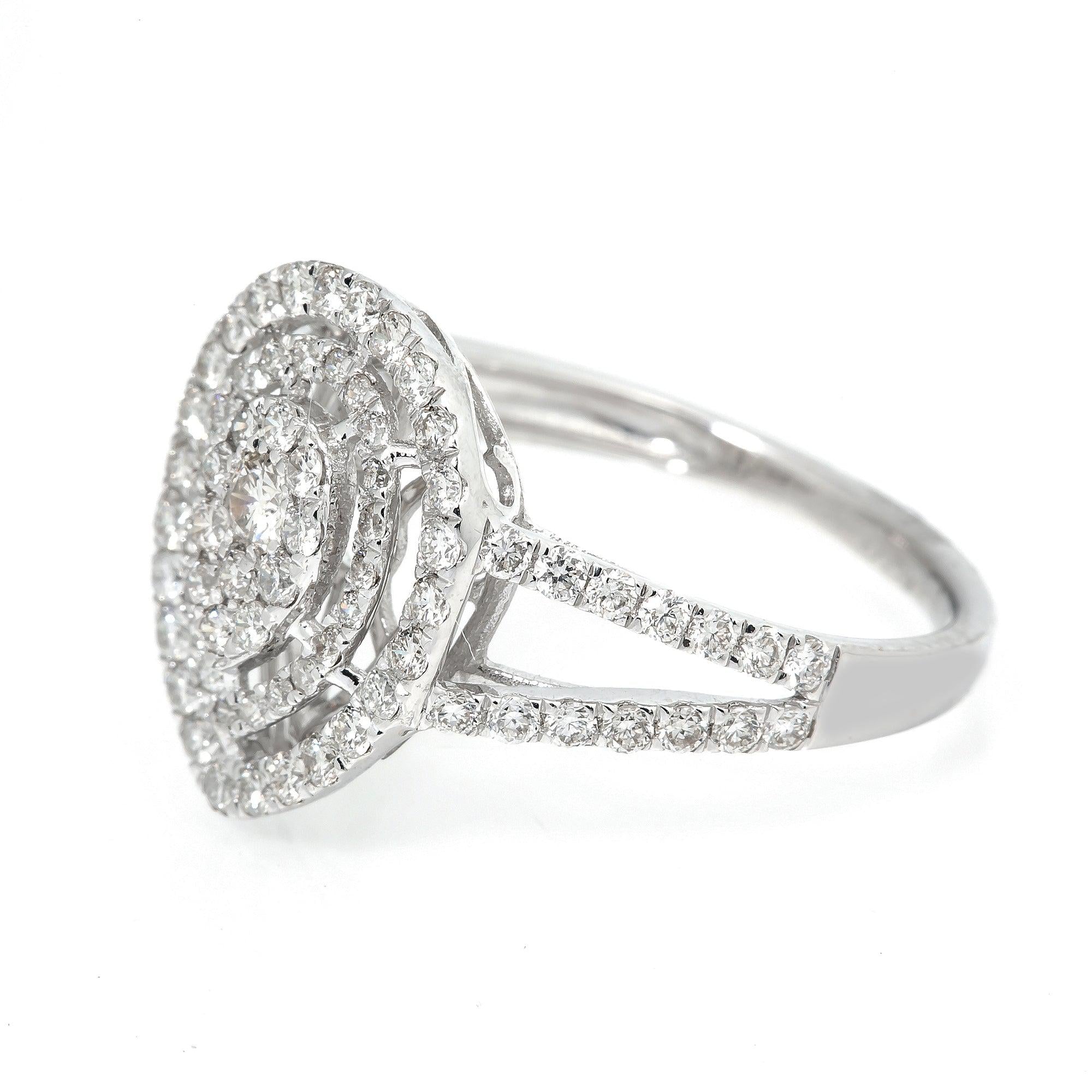 14K White Gold Diamond Pear Cluster Engagement Ring with Double Halo -Split