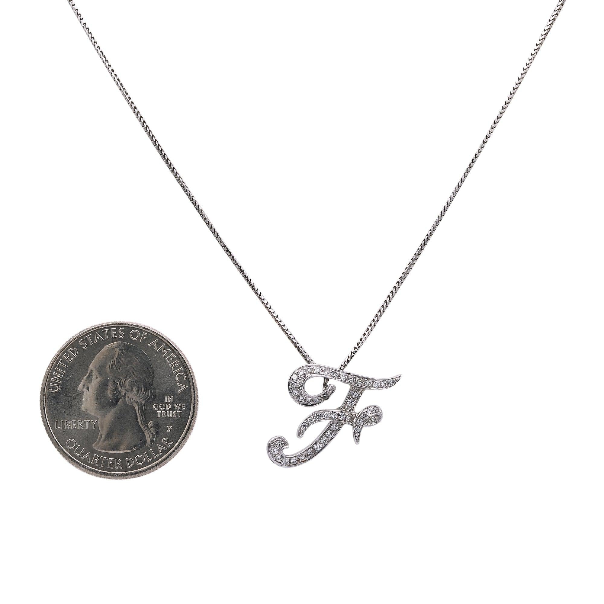 14K White Gold Letter "F" Women's Pendant with 0.35CT Diamonds