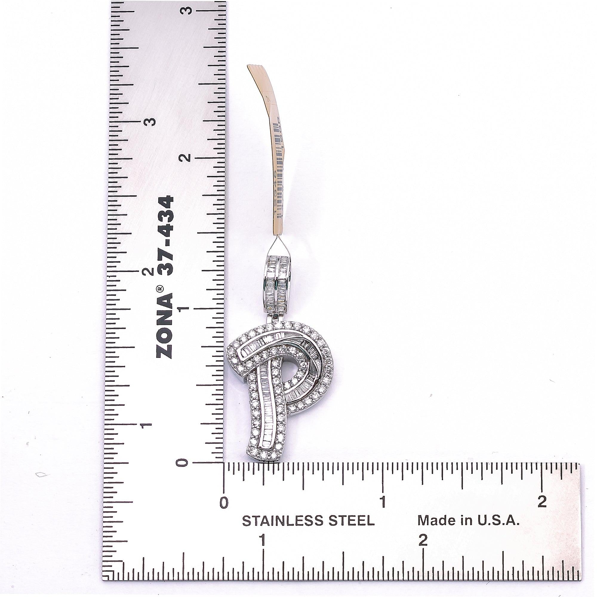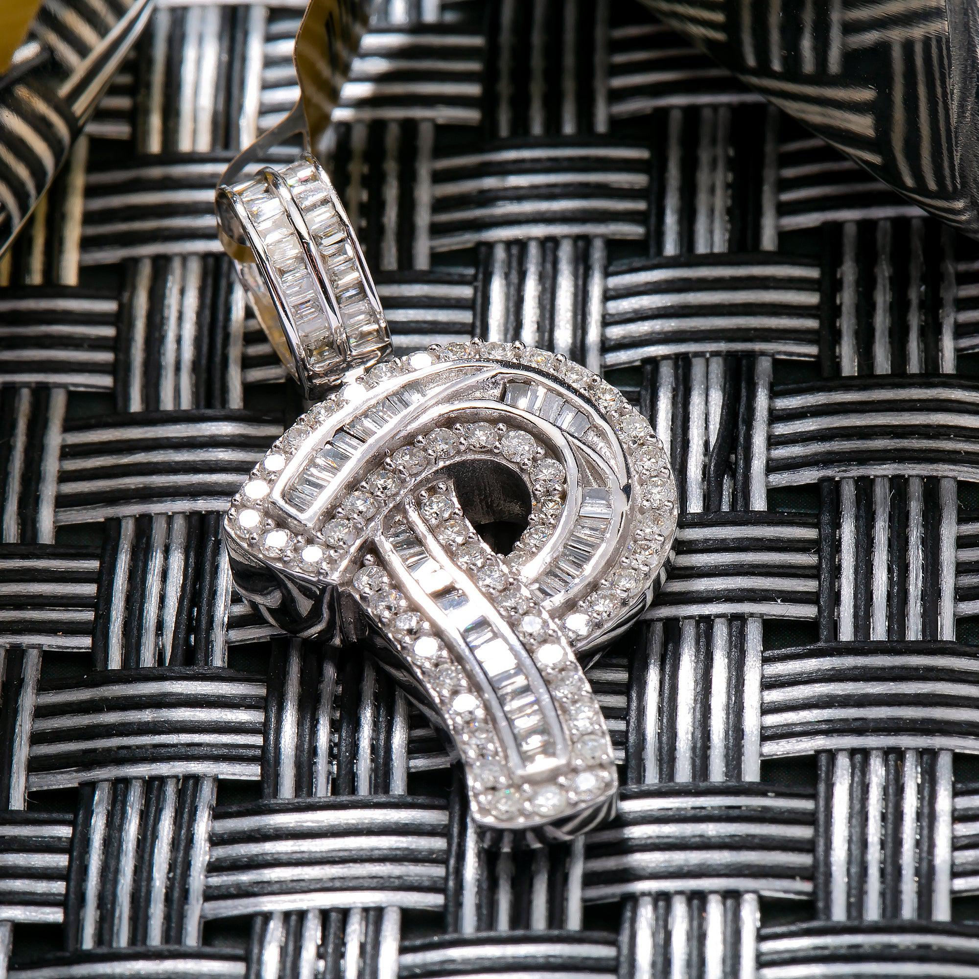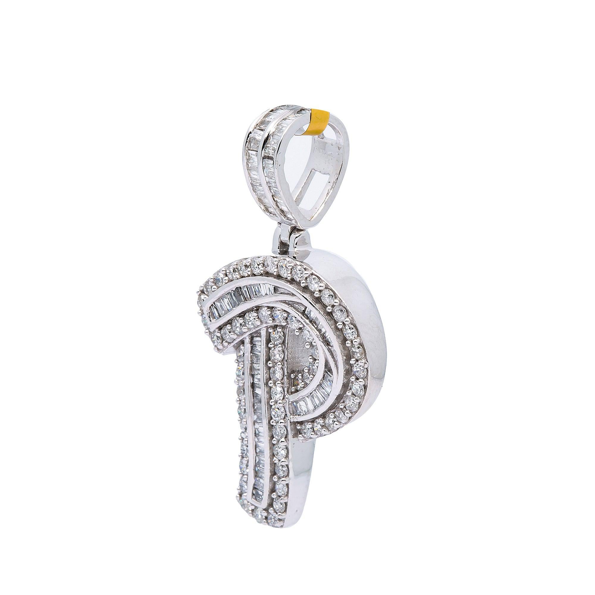 14K WHITE GOLD LETTER P PENDANT WITH 0.95 CT DIAMONDS