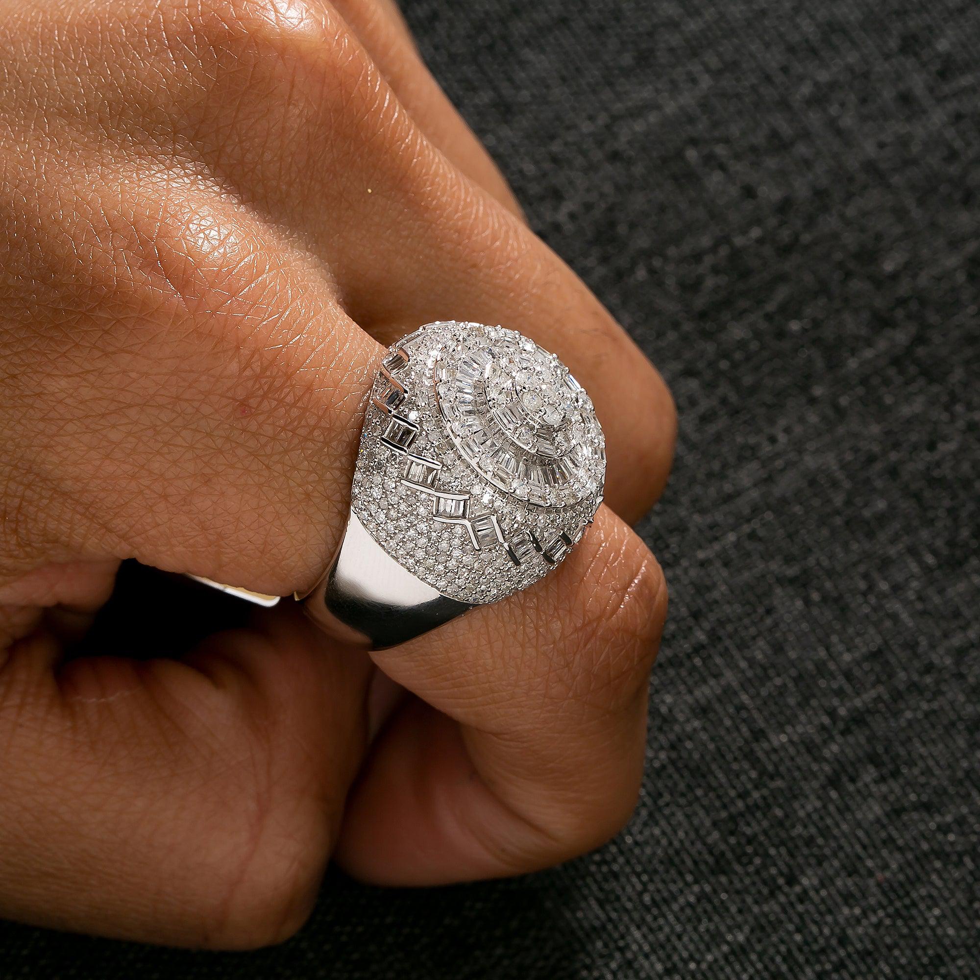 14K WHITE GOLD RING WITH ROUND & BAGUETTE DIAMONDS