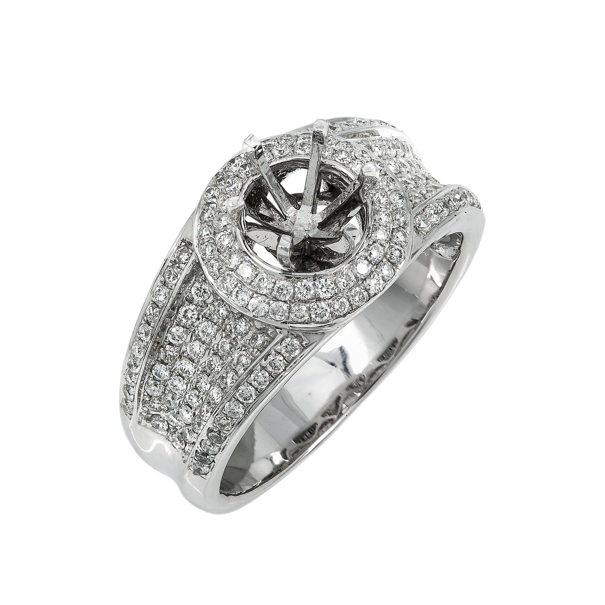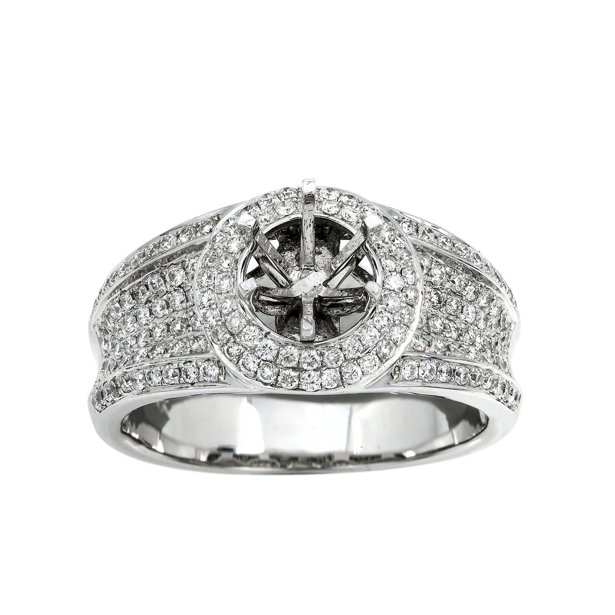 14K White Gold Diamond Engagement Semi-Mounting Women's Ring With 0.75 CT Diamonds