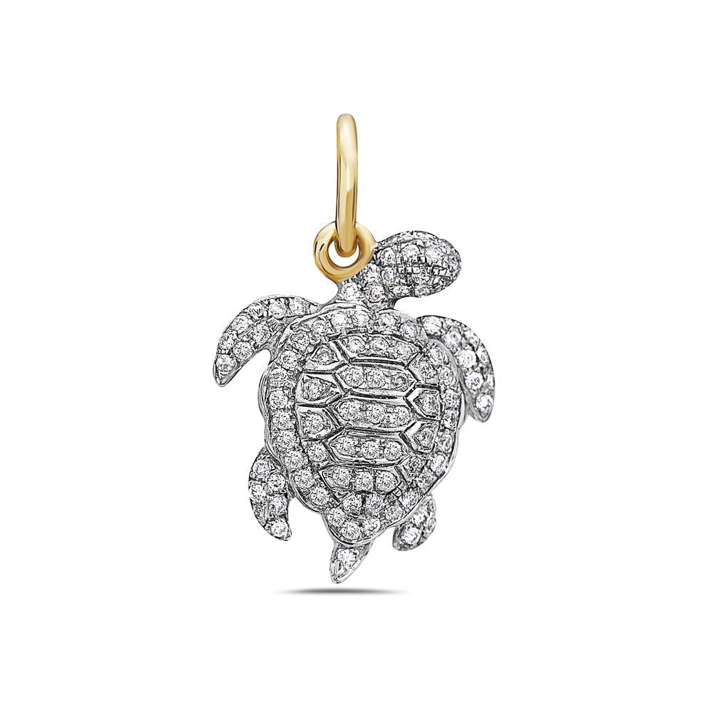 14K Yellow Gold Turtle Women's Pendant with 0.46CT Diamonds