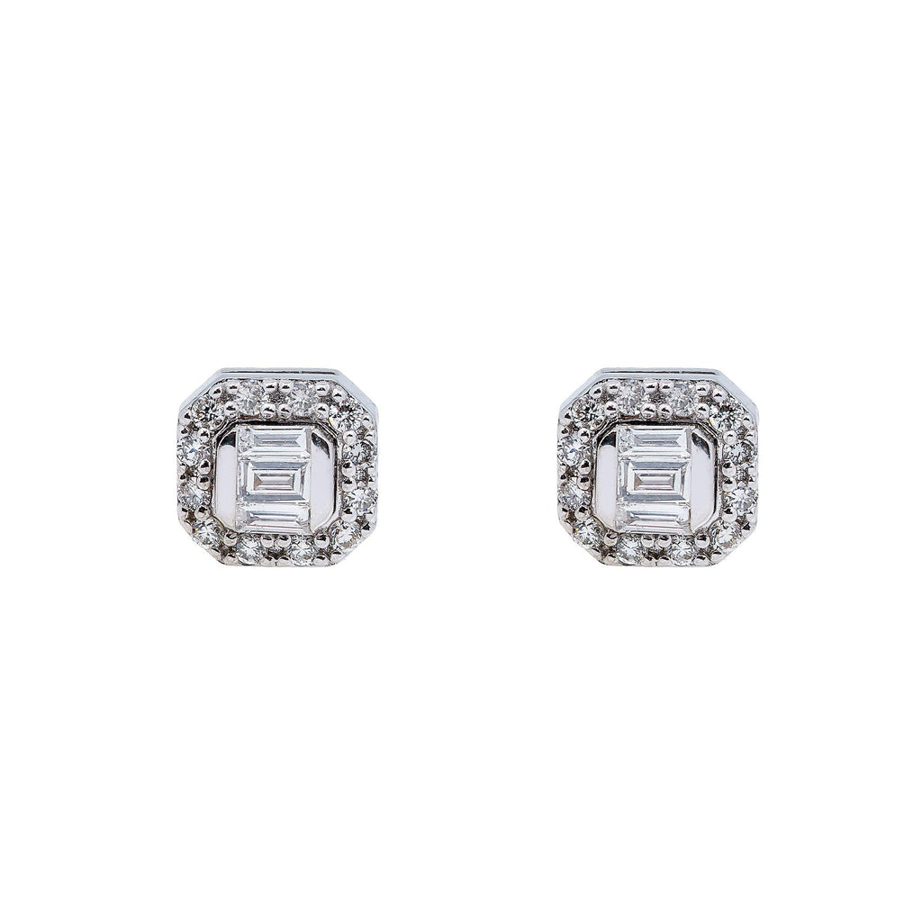 14K White Gold Unisex Earrings with 0.21 Baguette CT Diamond