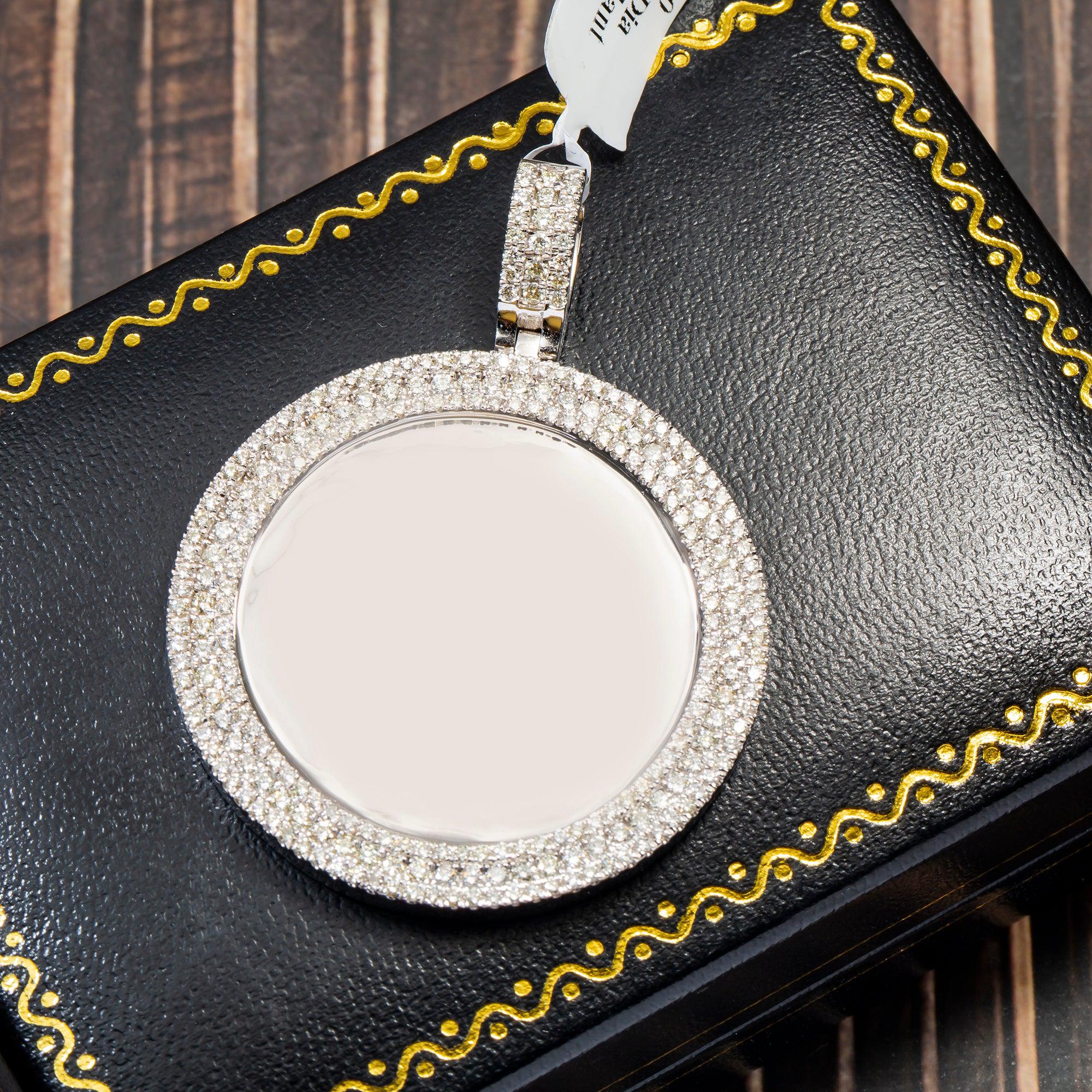 14K WHITE GOLD ROUND DIAMOND CIRCLE PICTURE PENDANT 3.75 CT