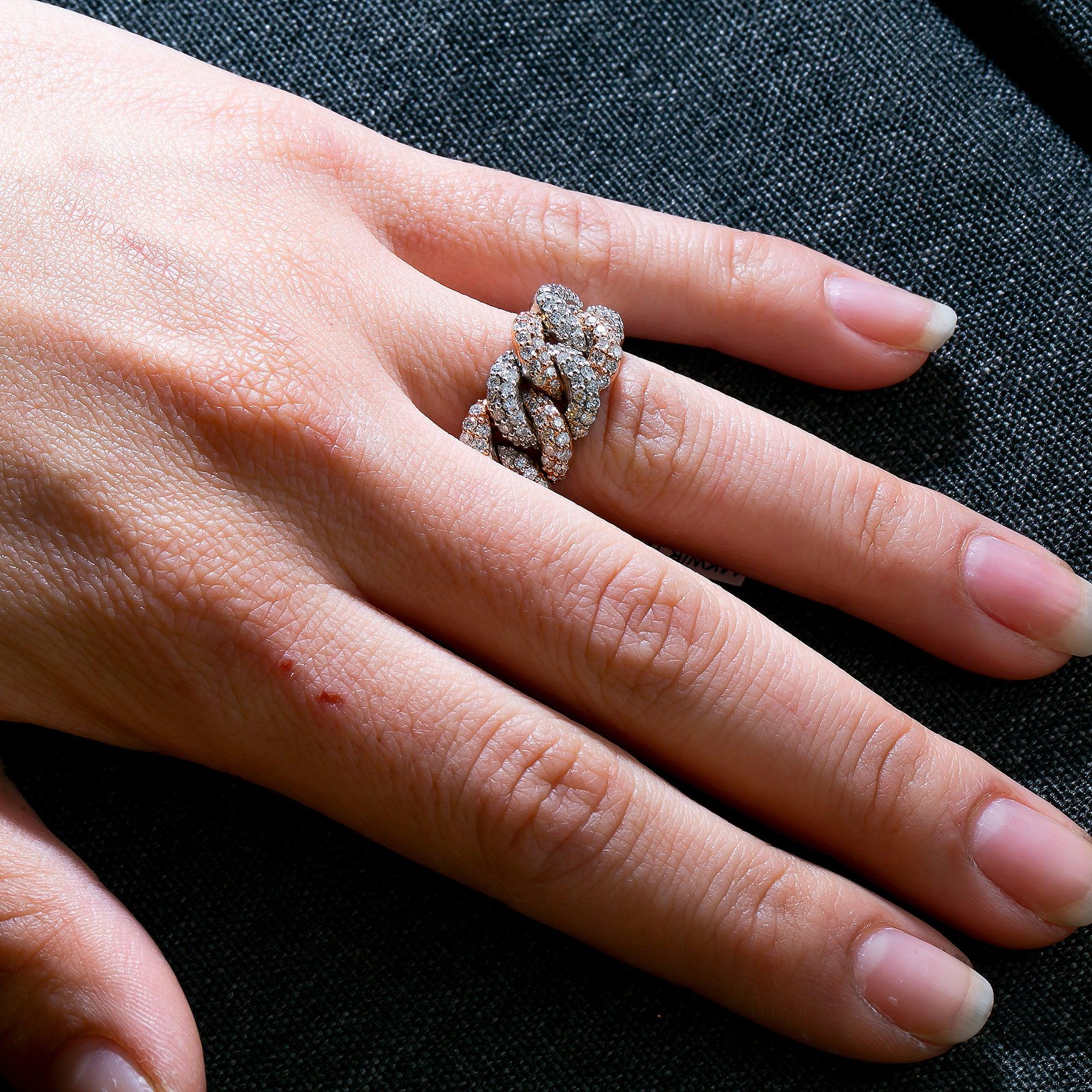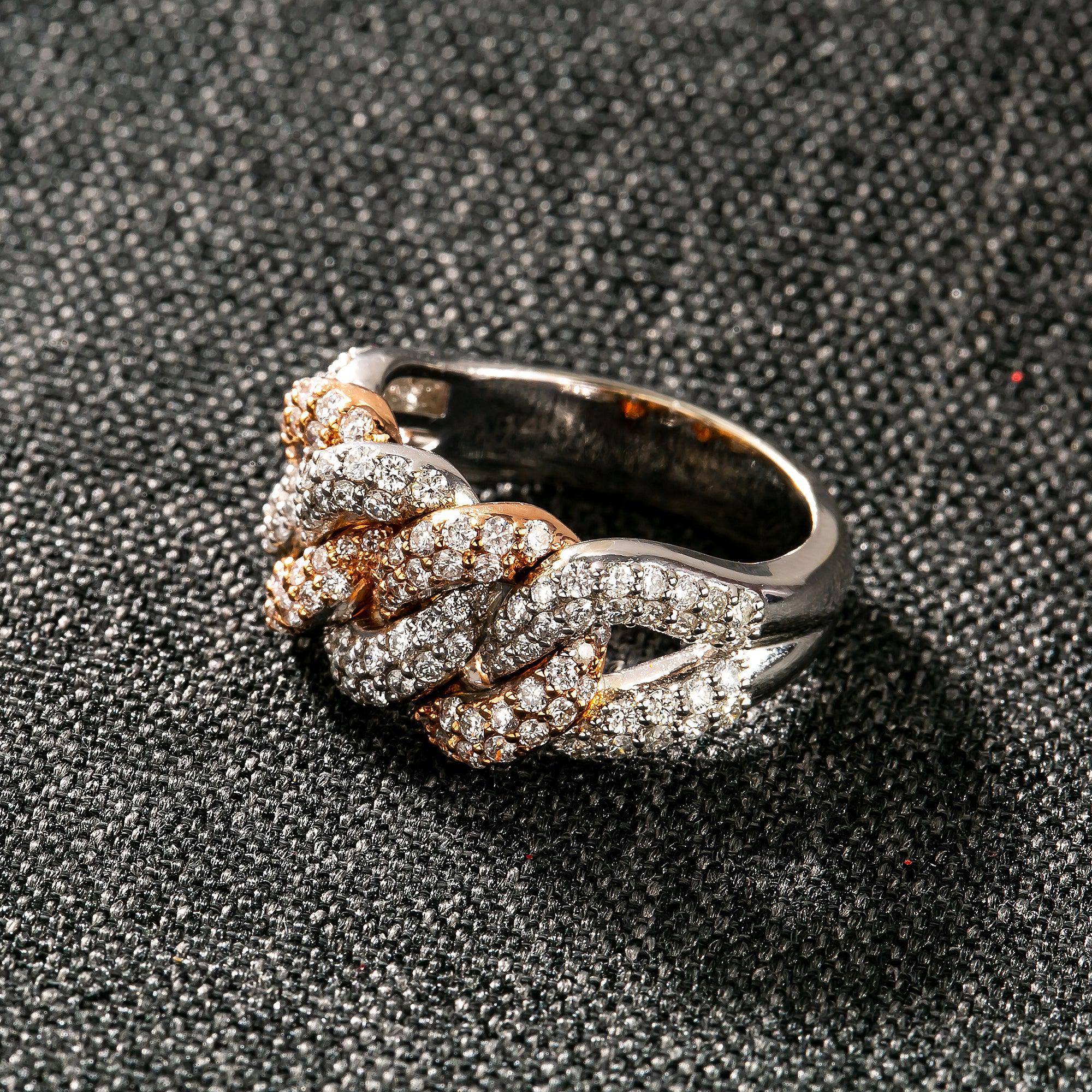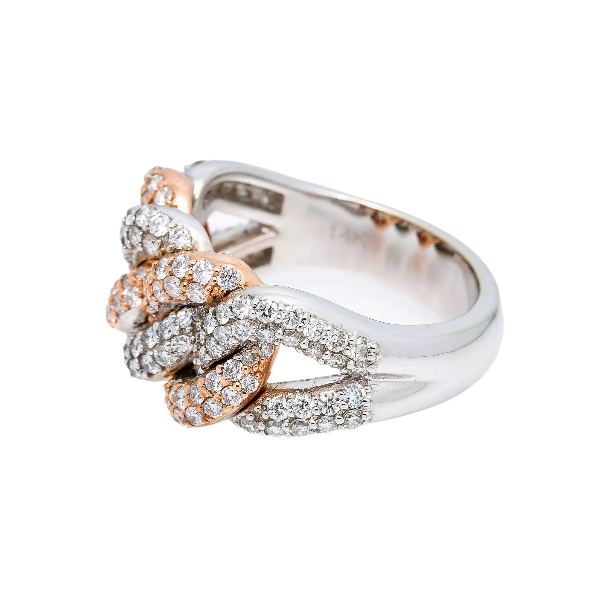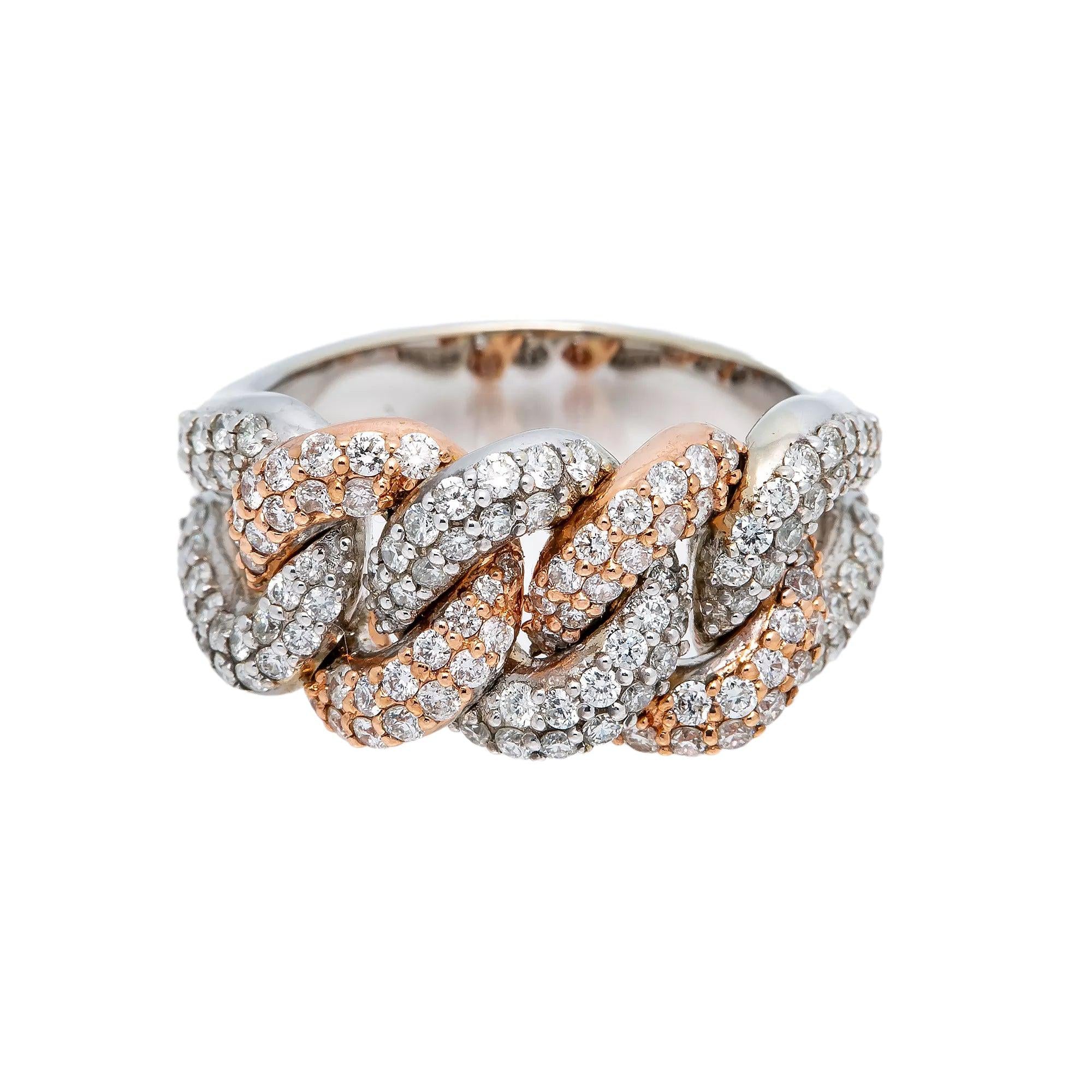 14K WHITE/ROSE GOLD DIAMOND CUBAN RING 2.10 CT