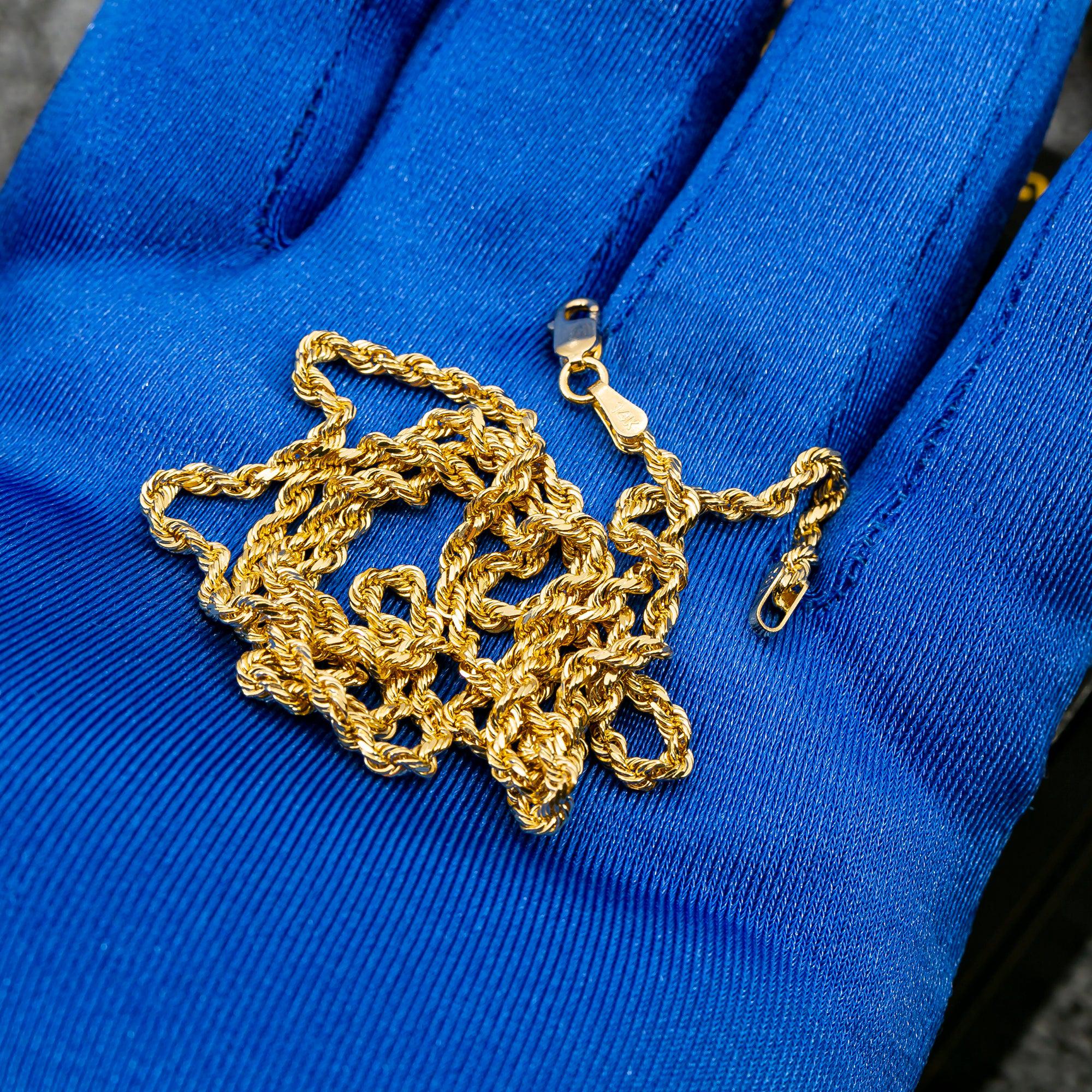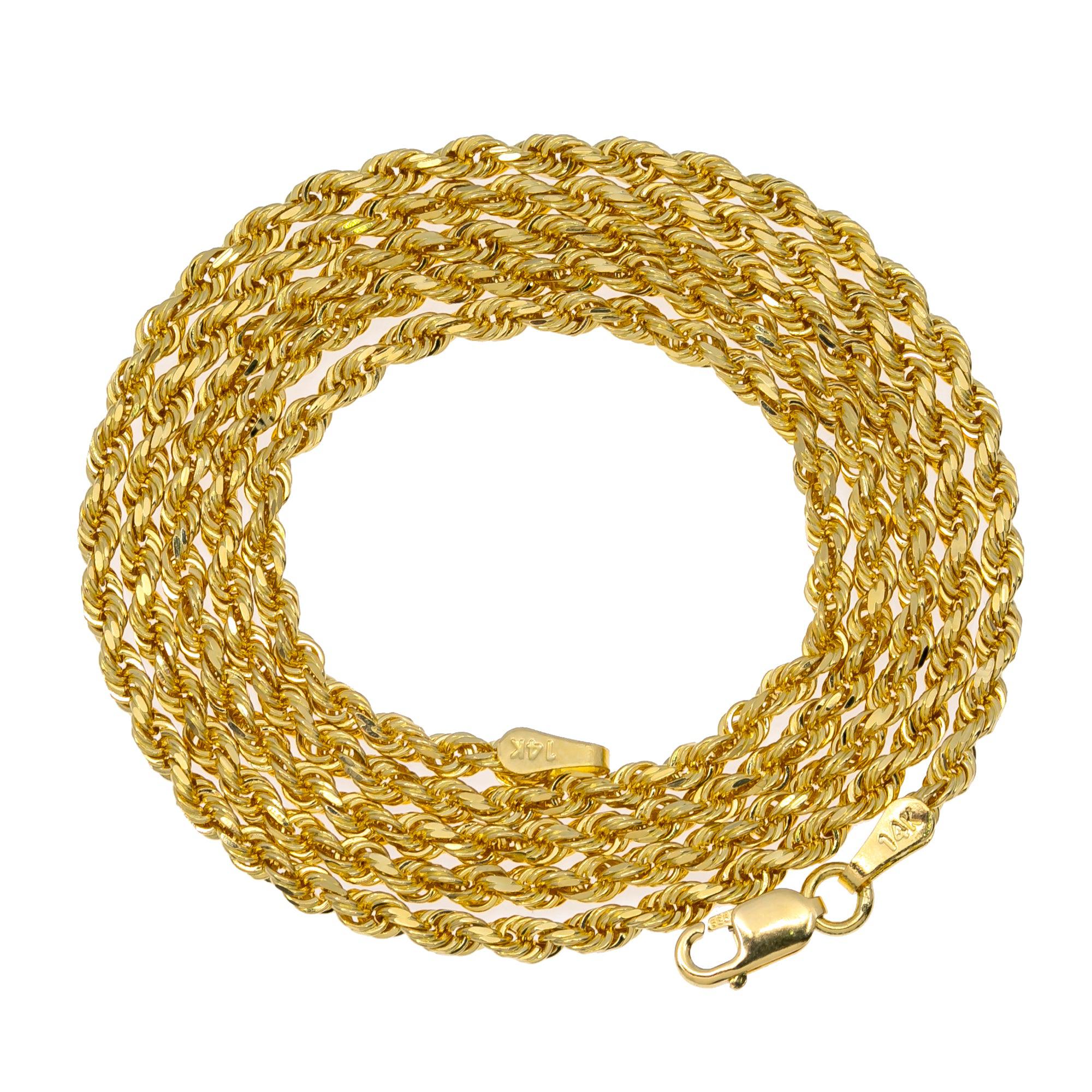 14k Yellow Gold Solid Rope Chain 3mm size available 18-26