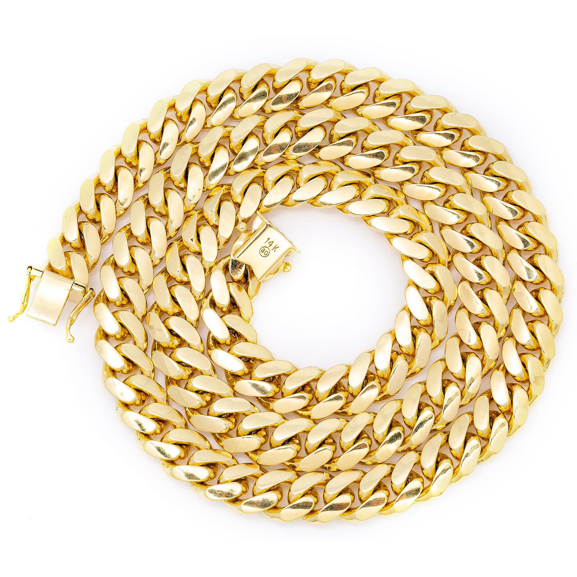 14K Solid Yellow Gold 9.21mm Miami Cuban Chain Available In Sizes 18"-26"