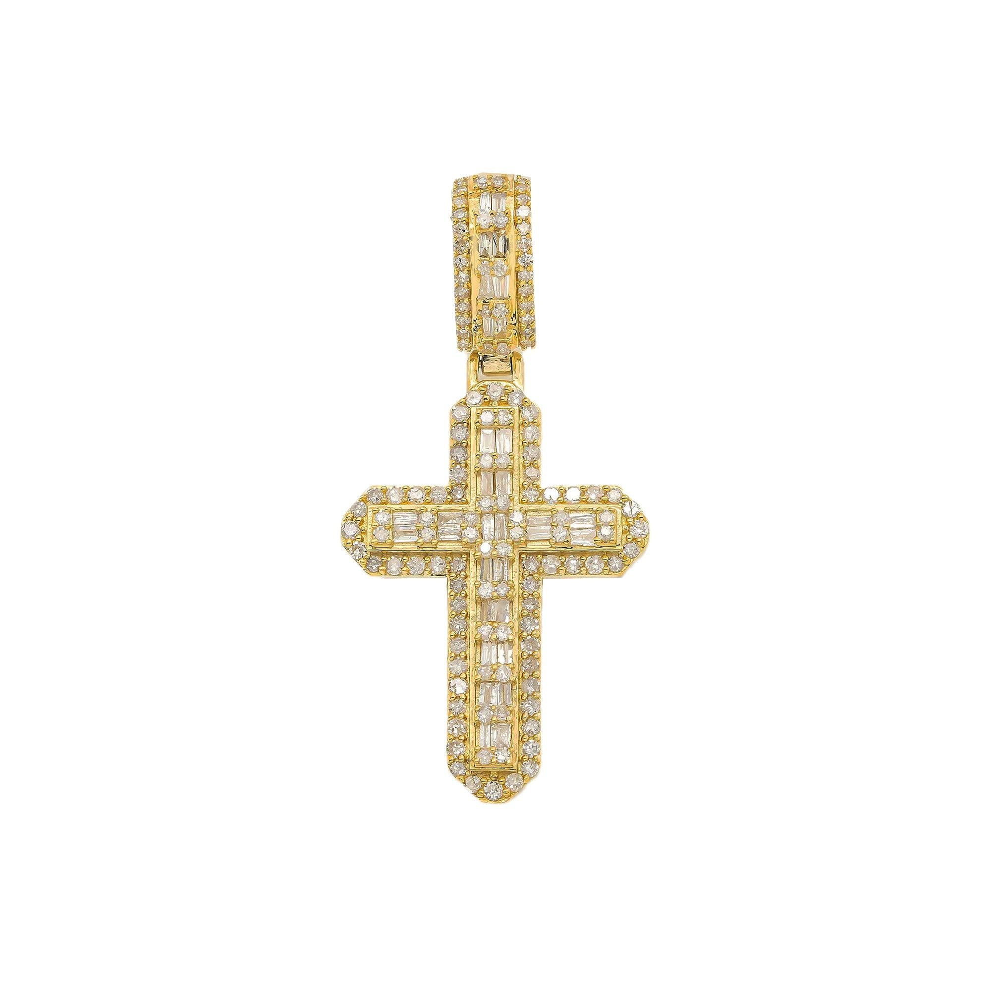 14K GOLD DIAMOND CROSS PENDANT 1.01 CT