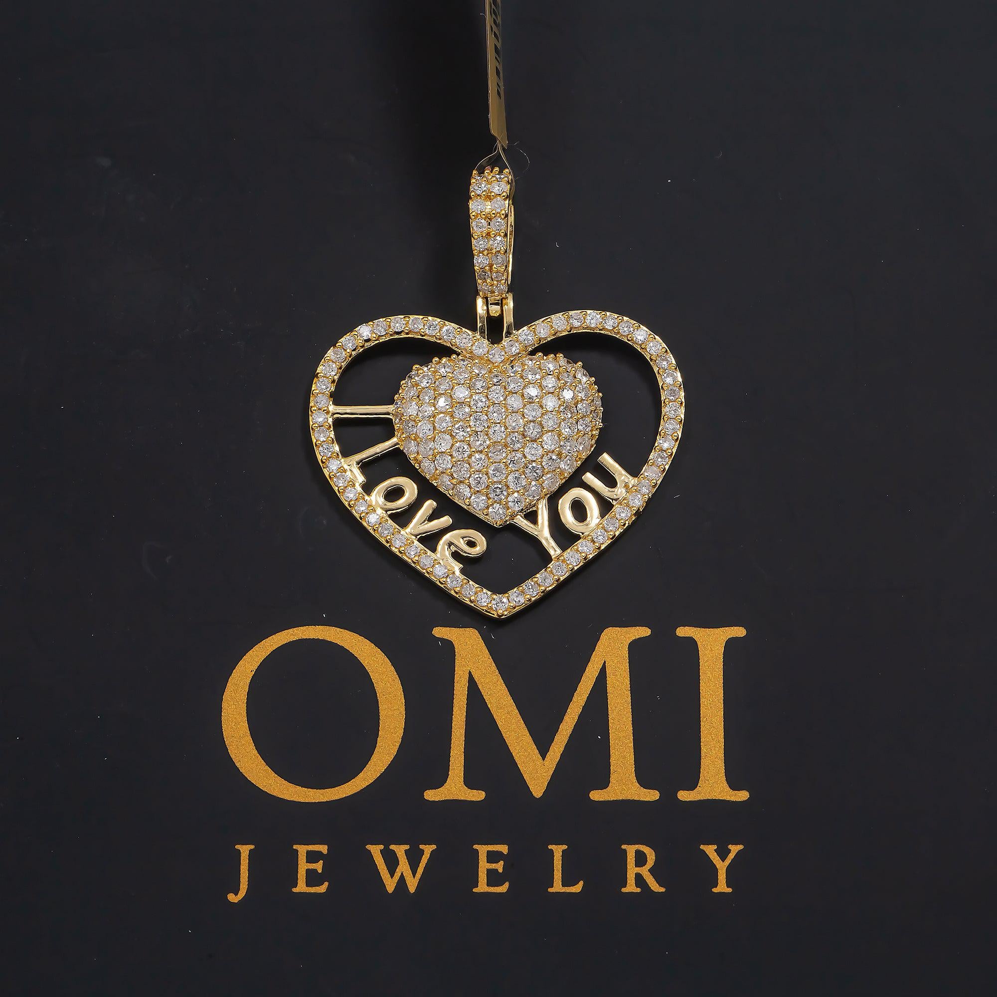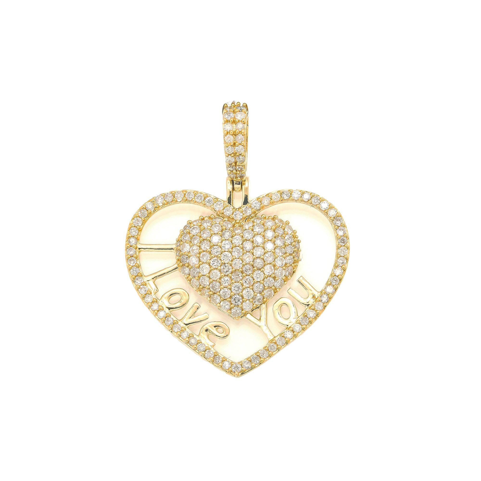 14K GOLD DIAMOND HEART WITH I LOVE YOU PENDANT 1.41 CT