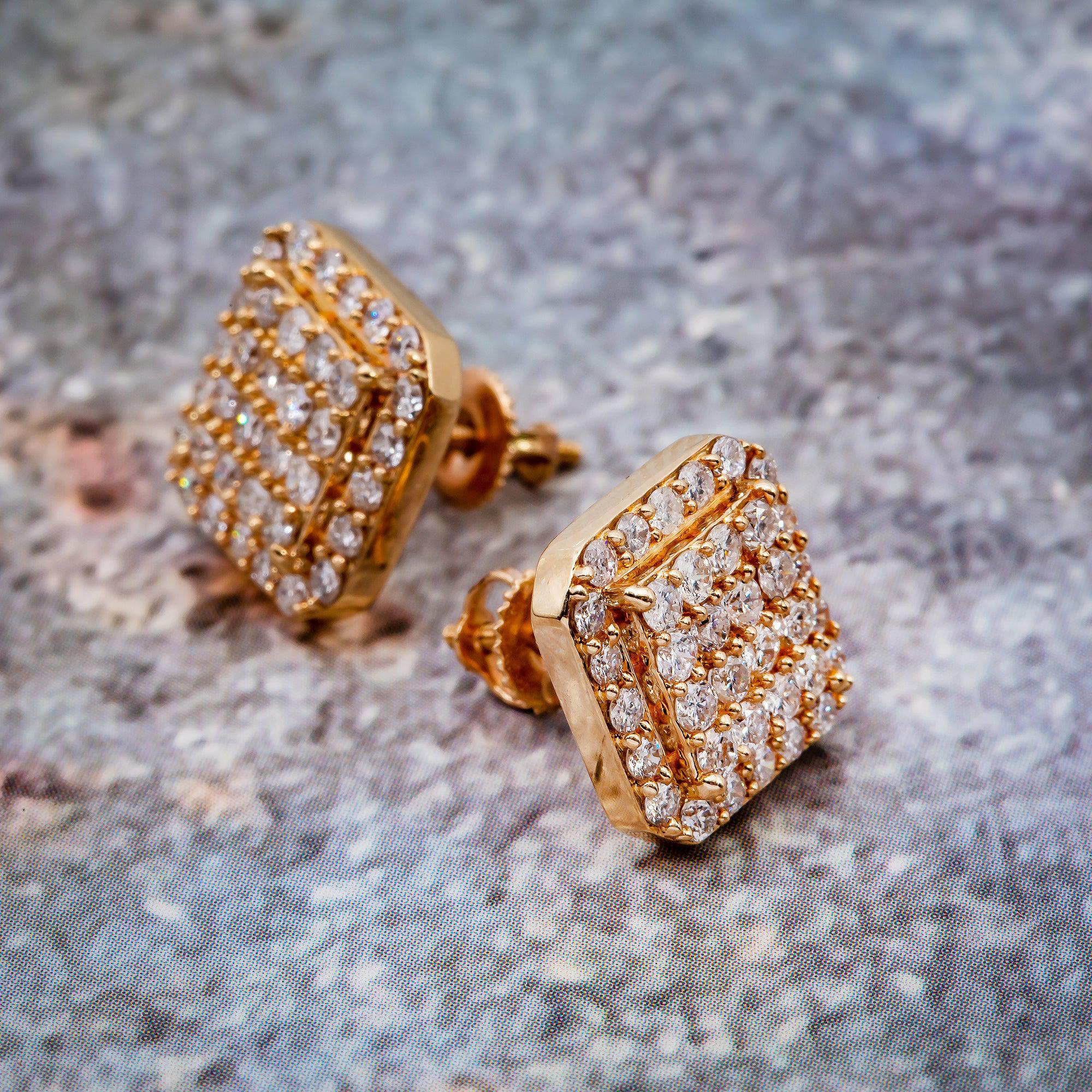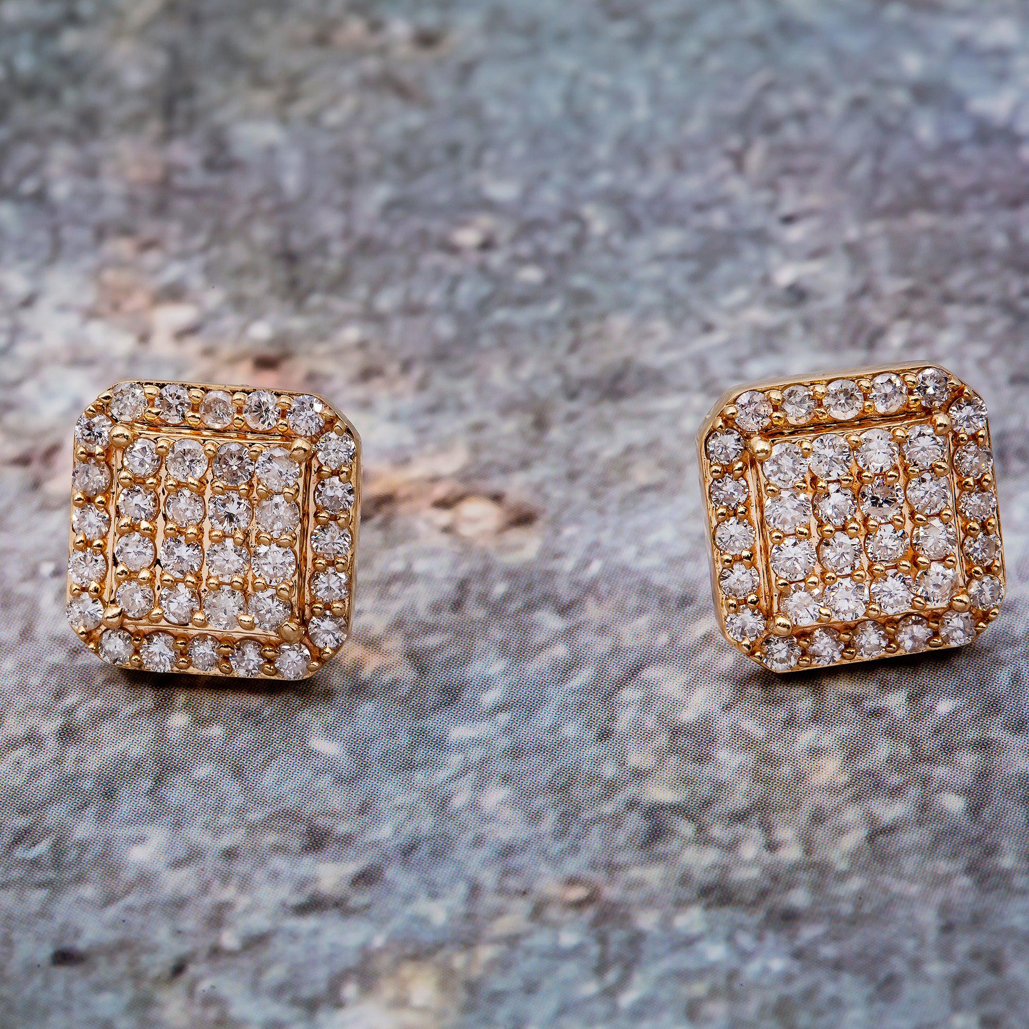 14K Yellow Gold Ladies Earrings with 1.31 CT Round And Baguette Diamond