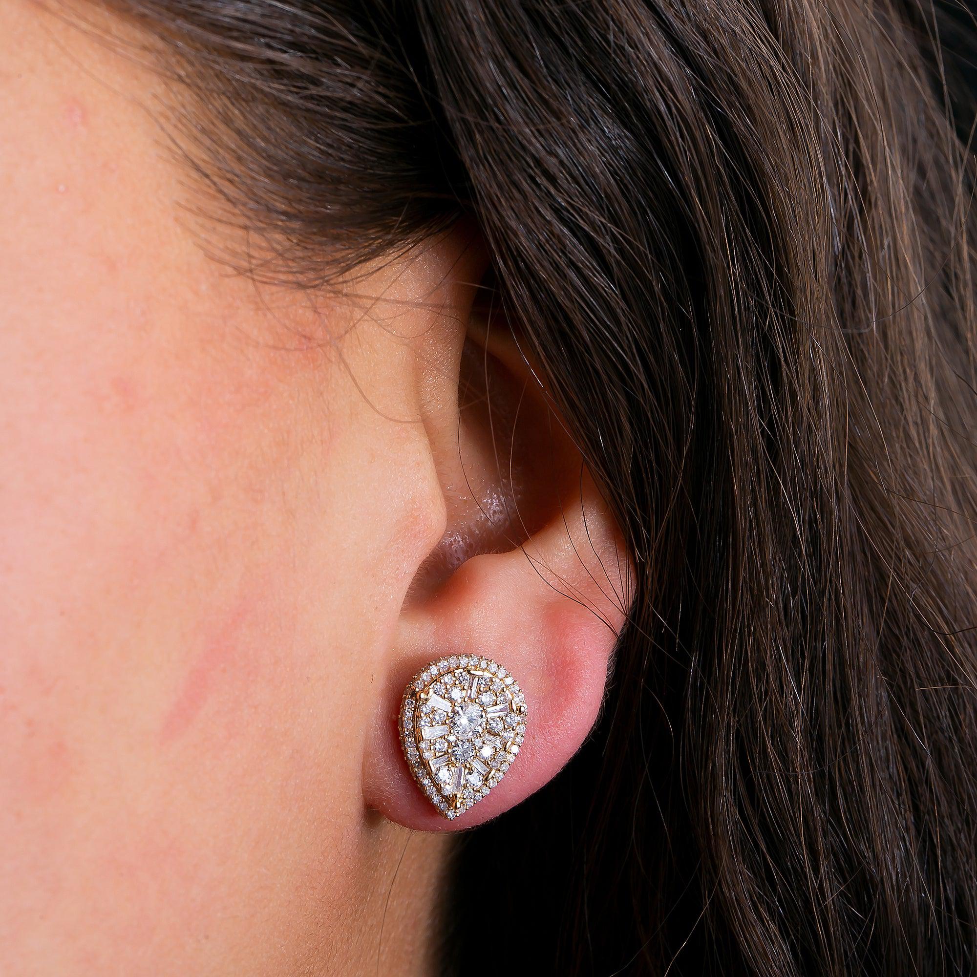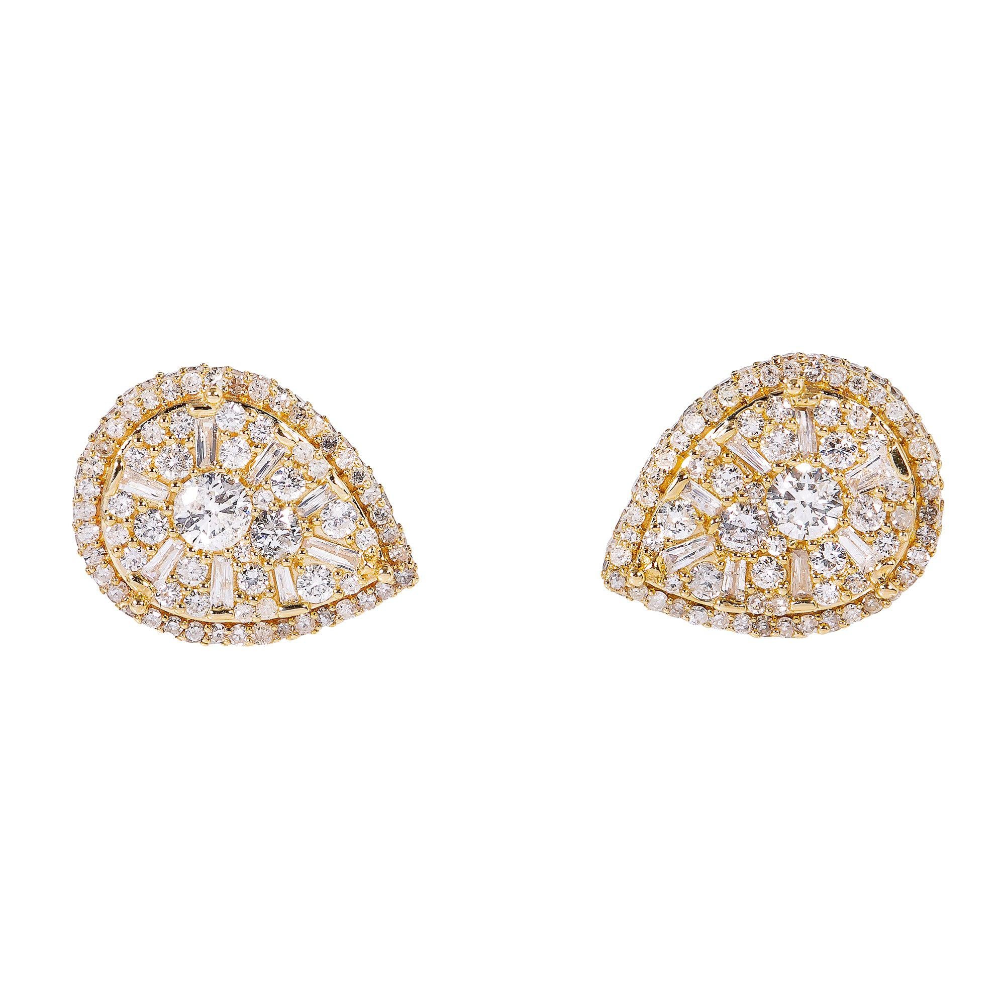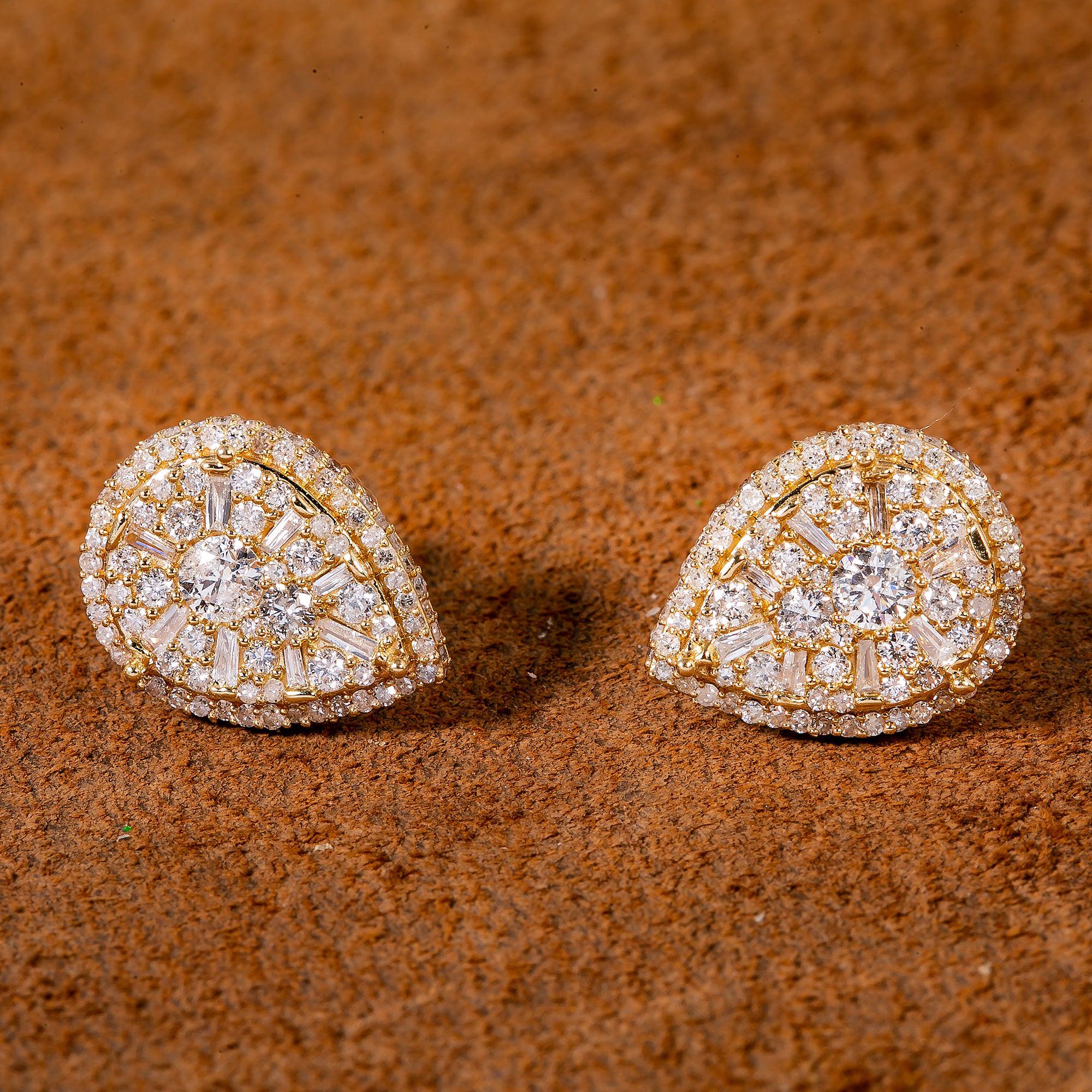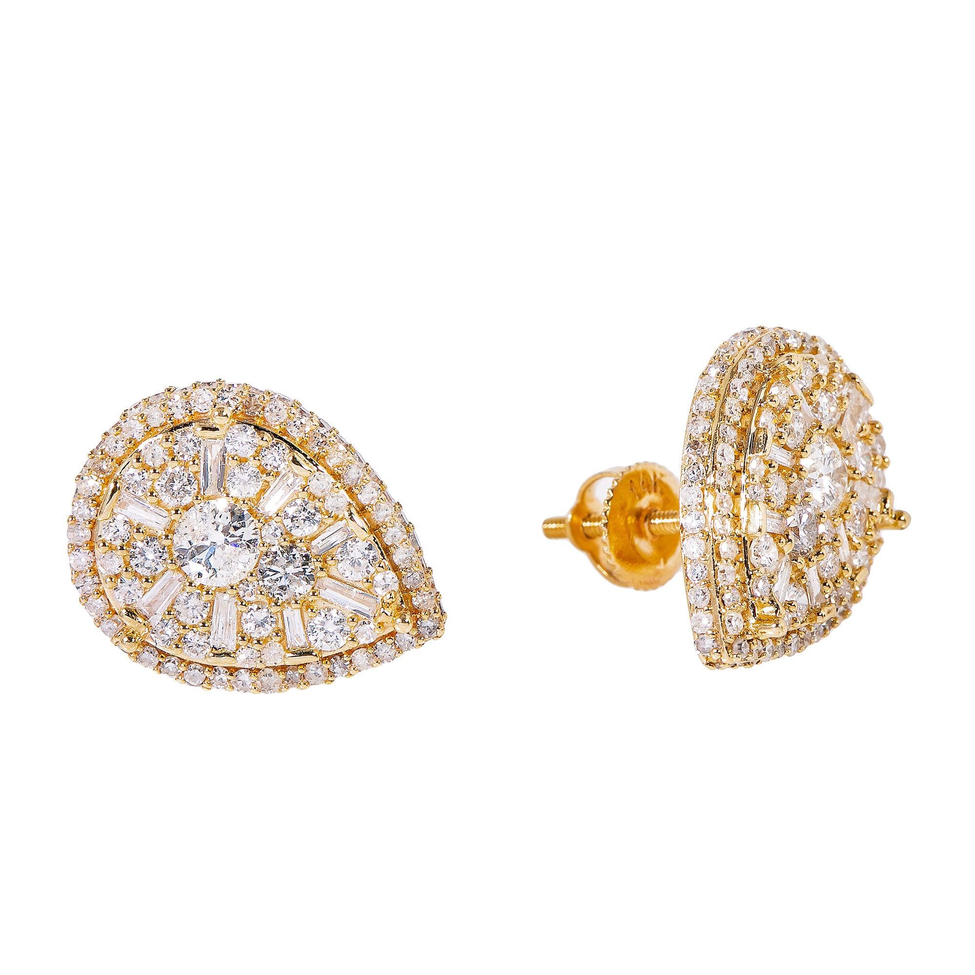14K YELLOW GOLD DIAMOND CLUSTER PEAR SHAPE EARRINGS 1.40 CT