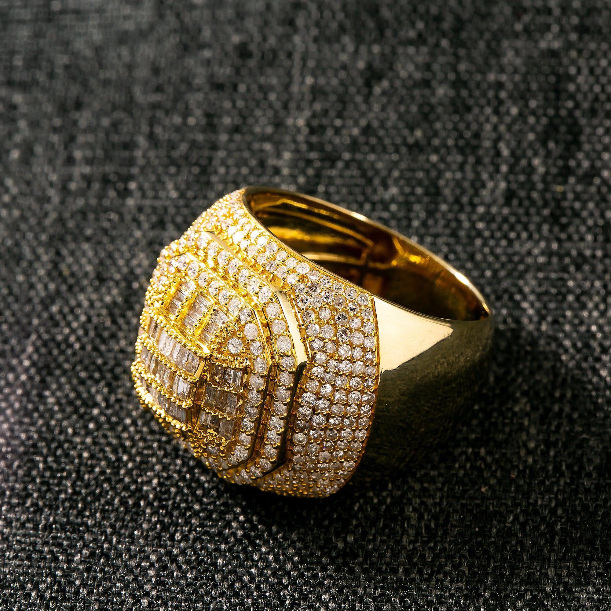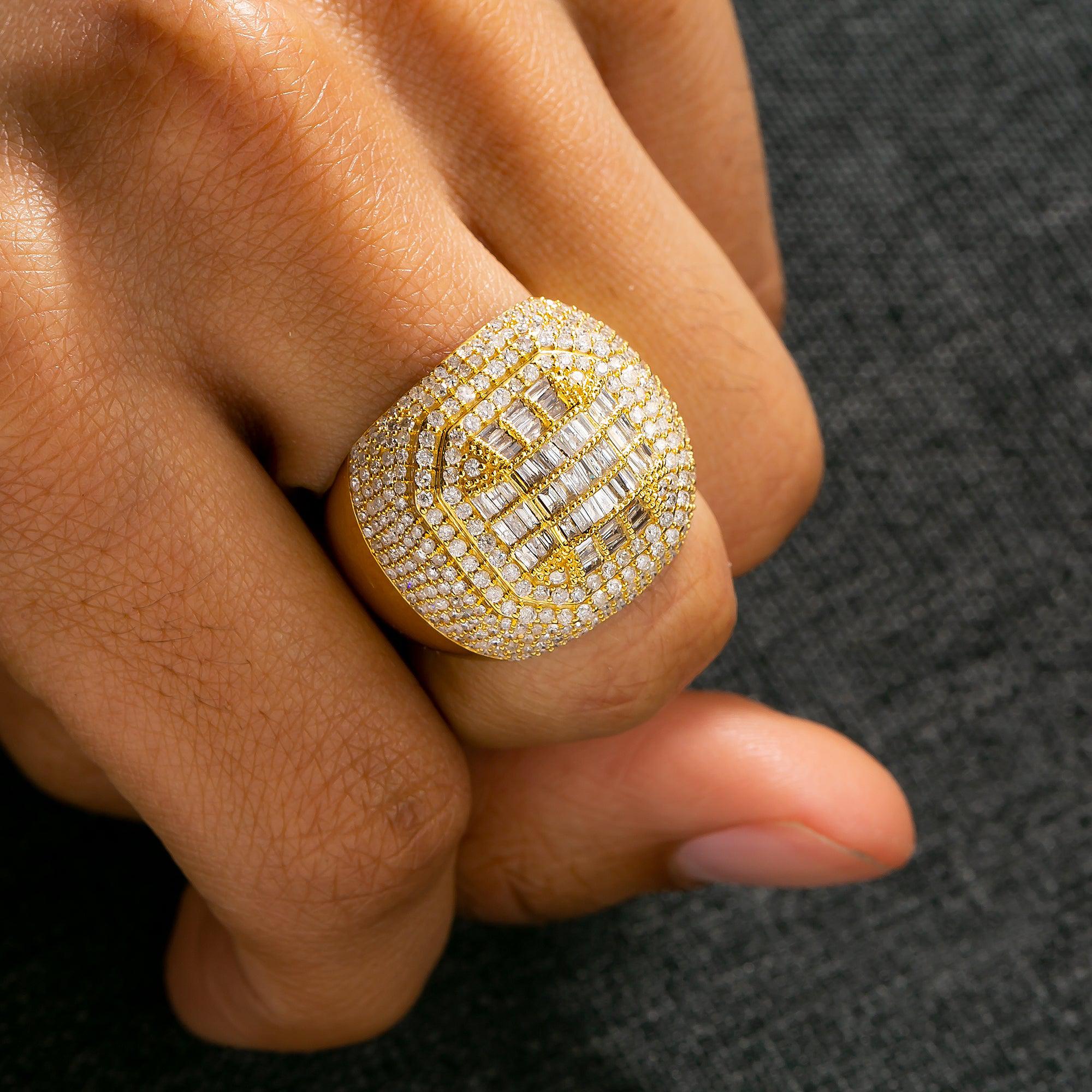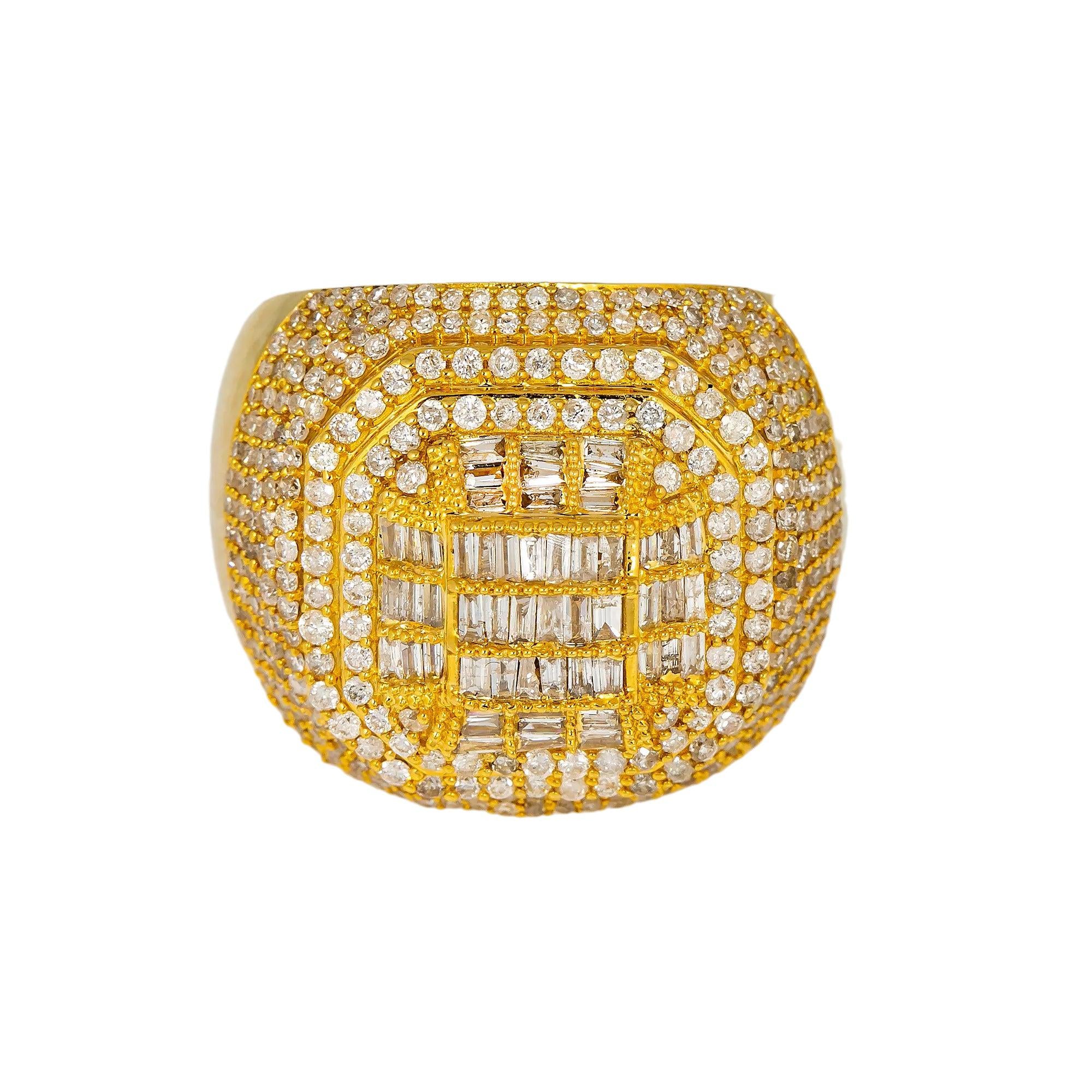 14K YELLOW GOLD RING WITH ROUND & BAGUETTE DIAMONDS