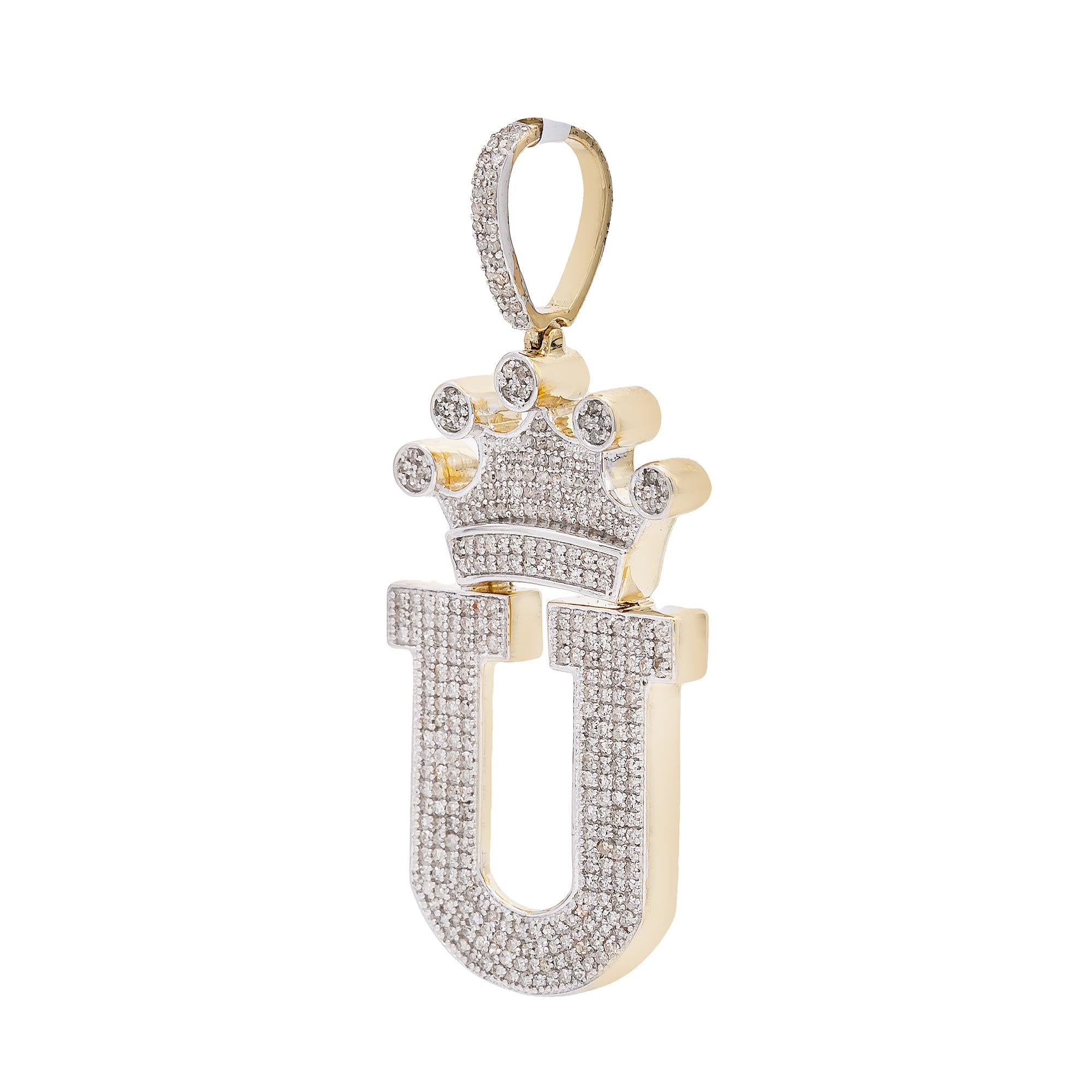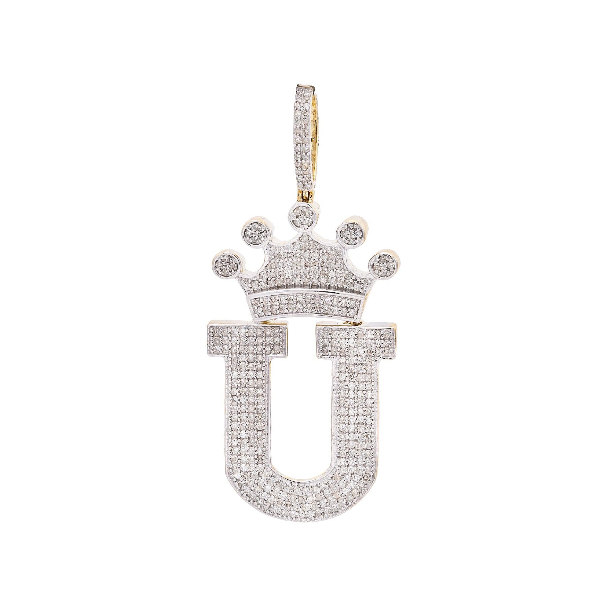 14K Yellow Gold Letter "U" Women's Pendant with Diamonds