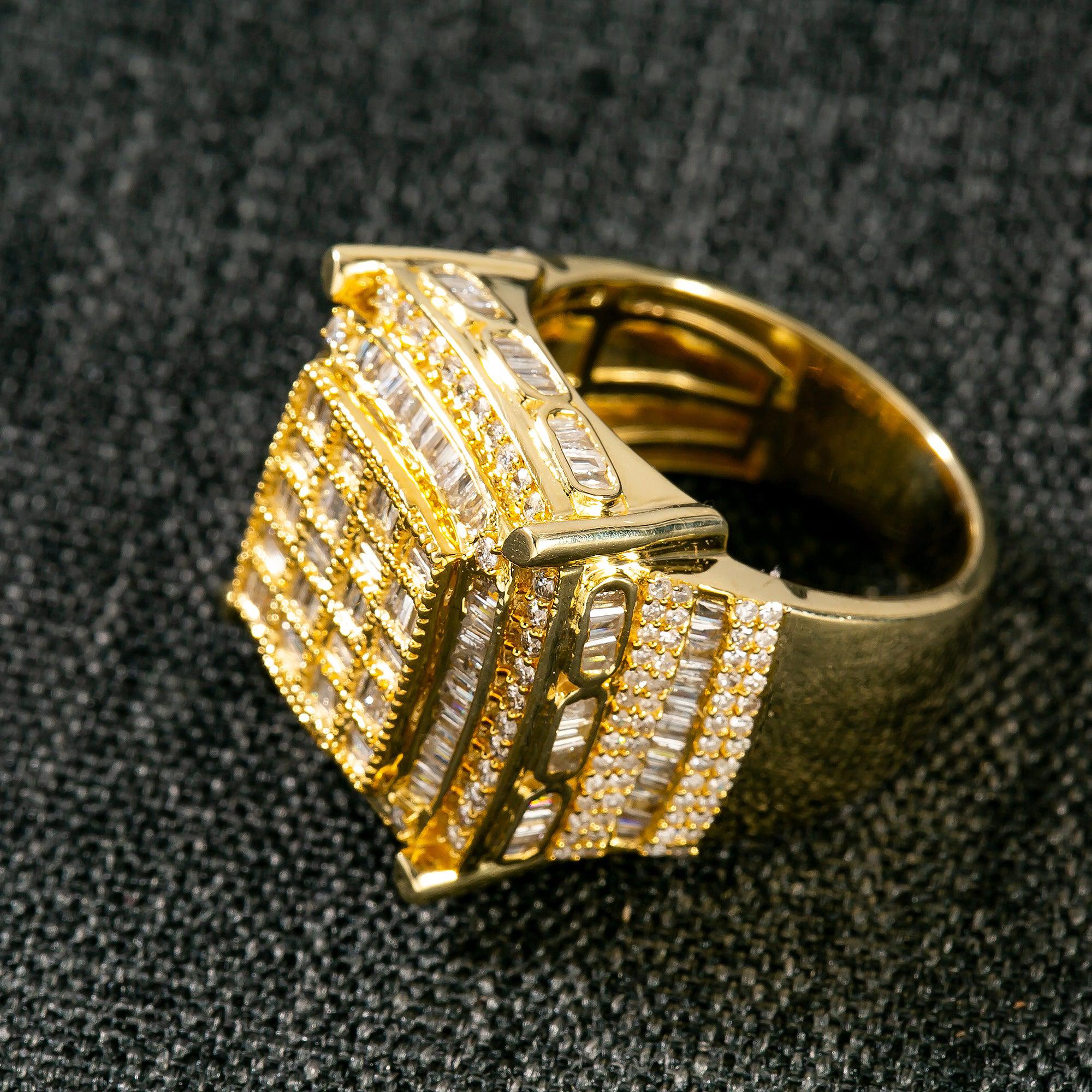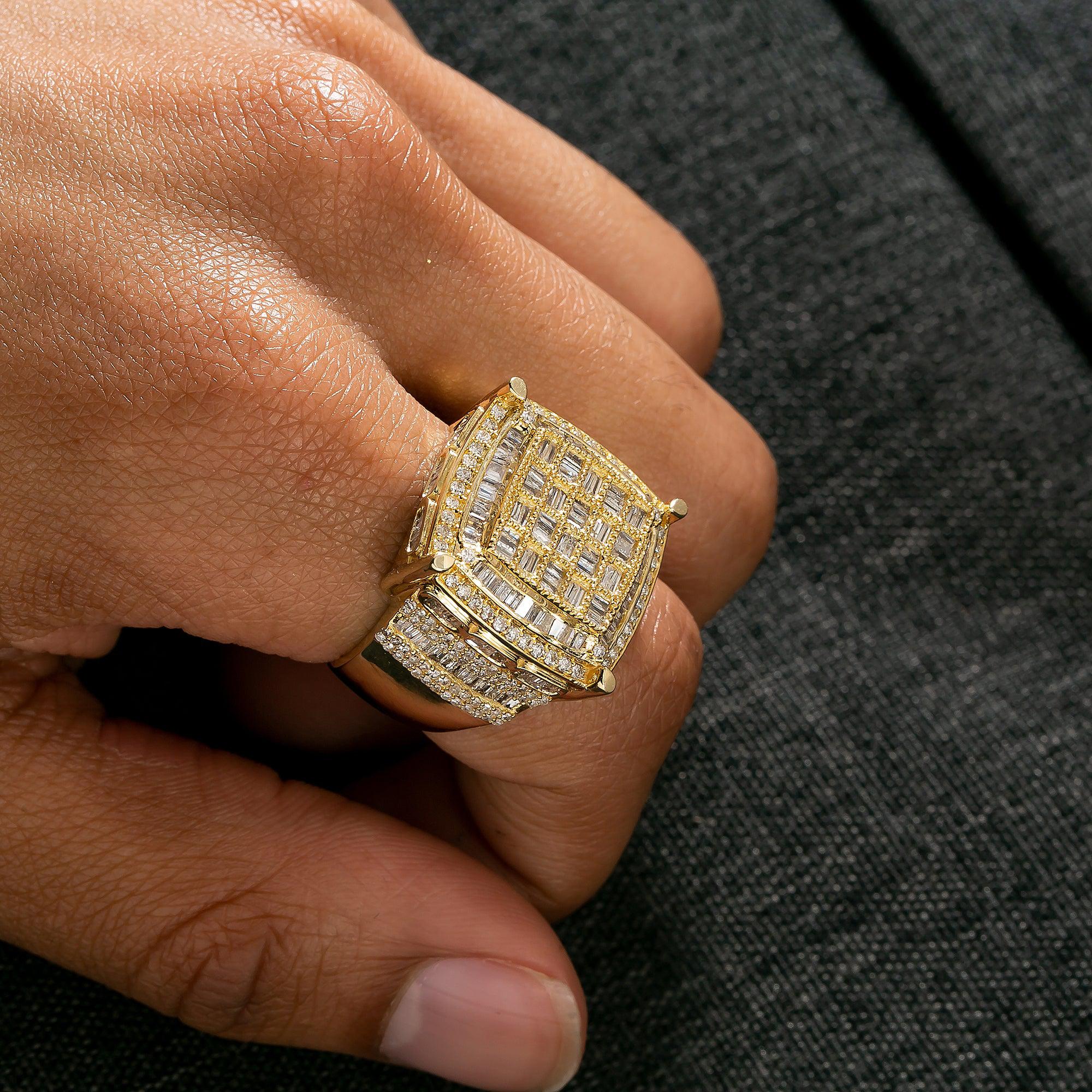 14K YELLOW GOLD RING WITH ROUND & BAGUETTE DIAMONDS