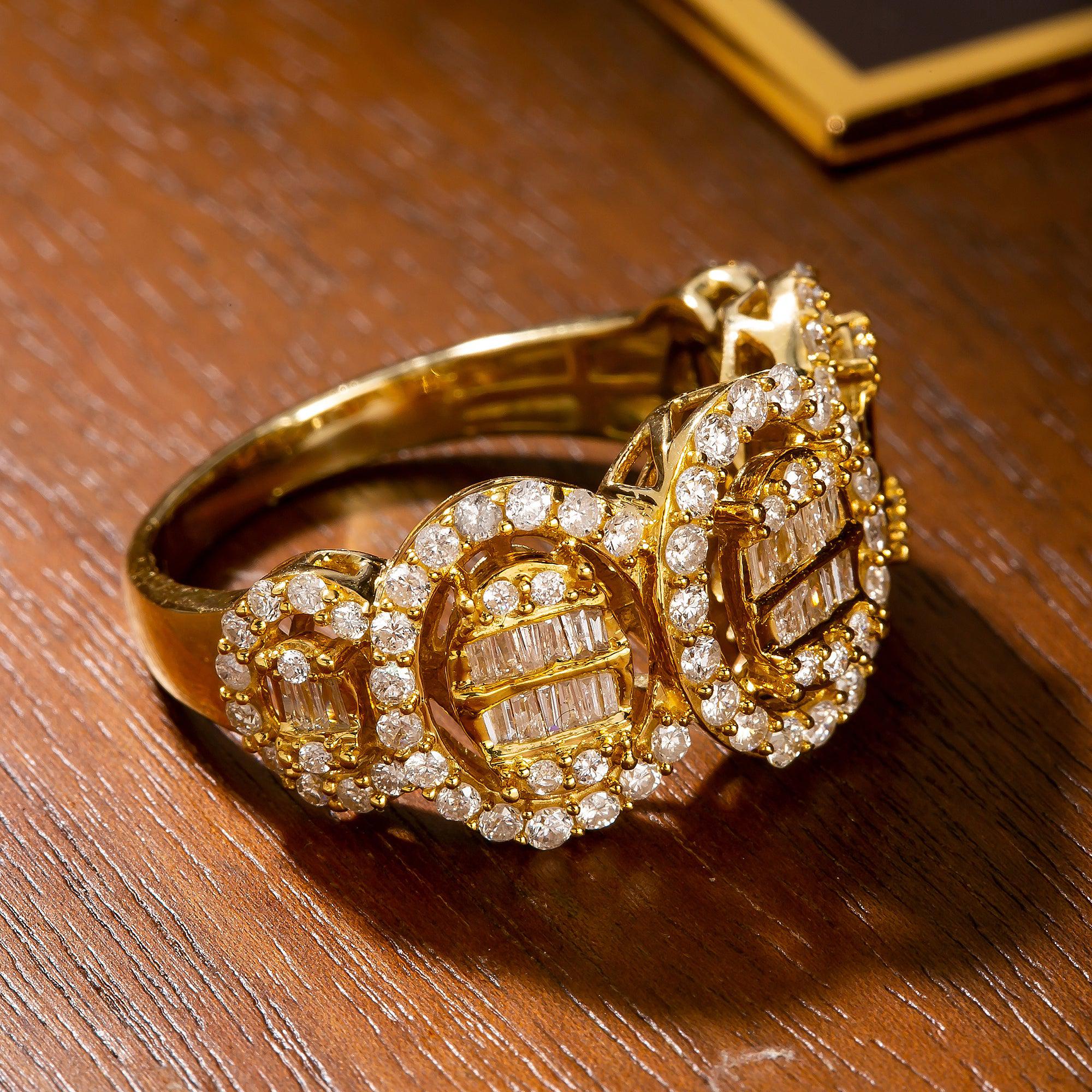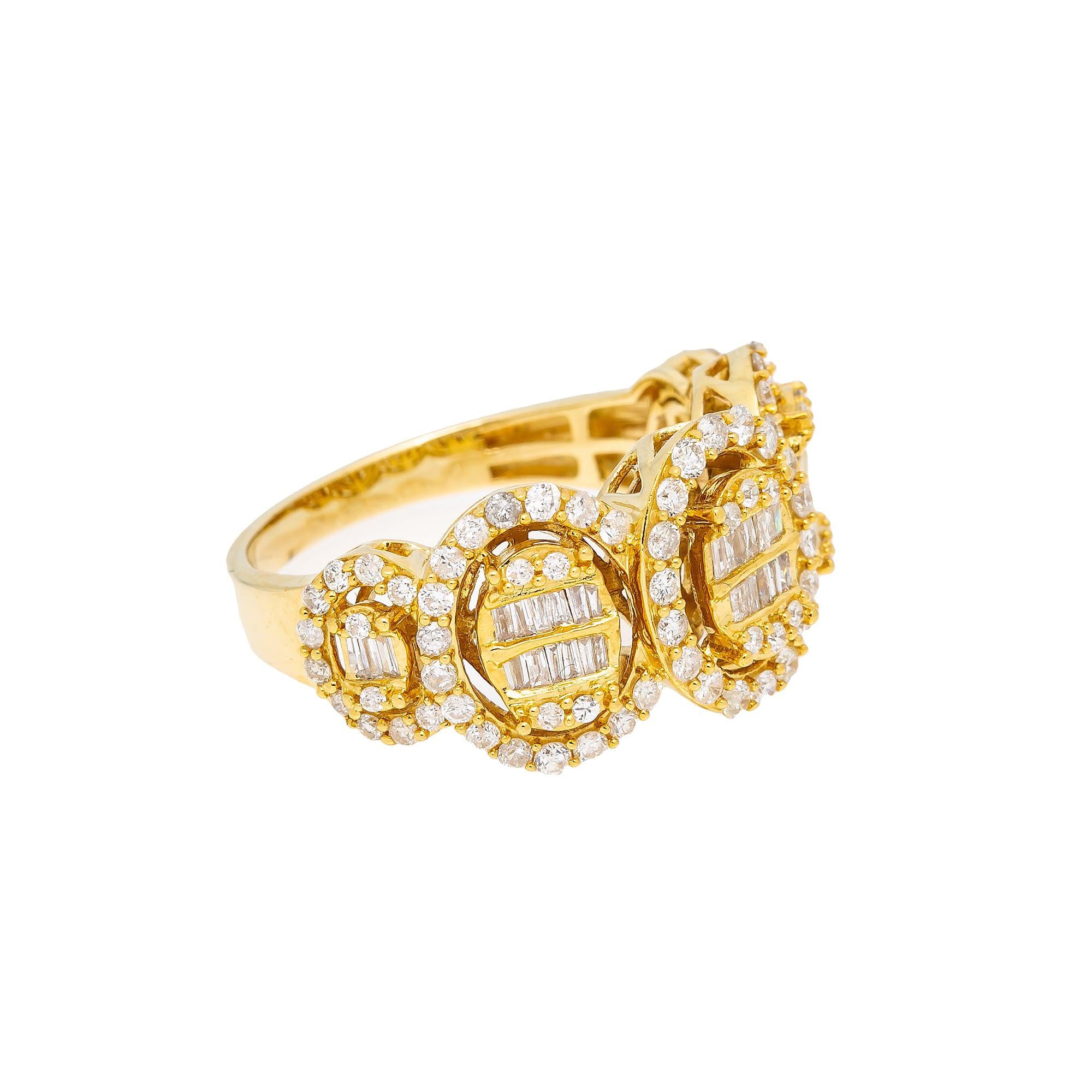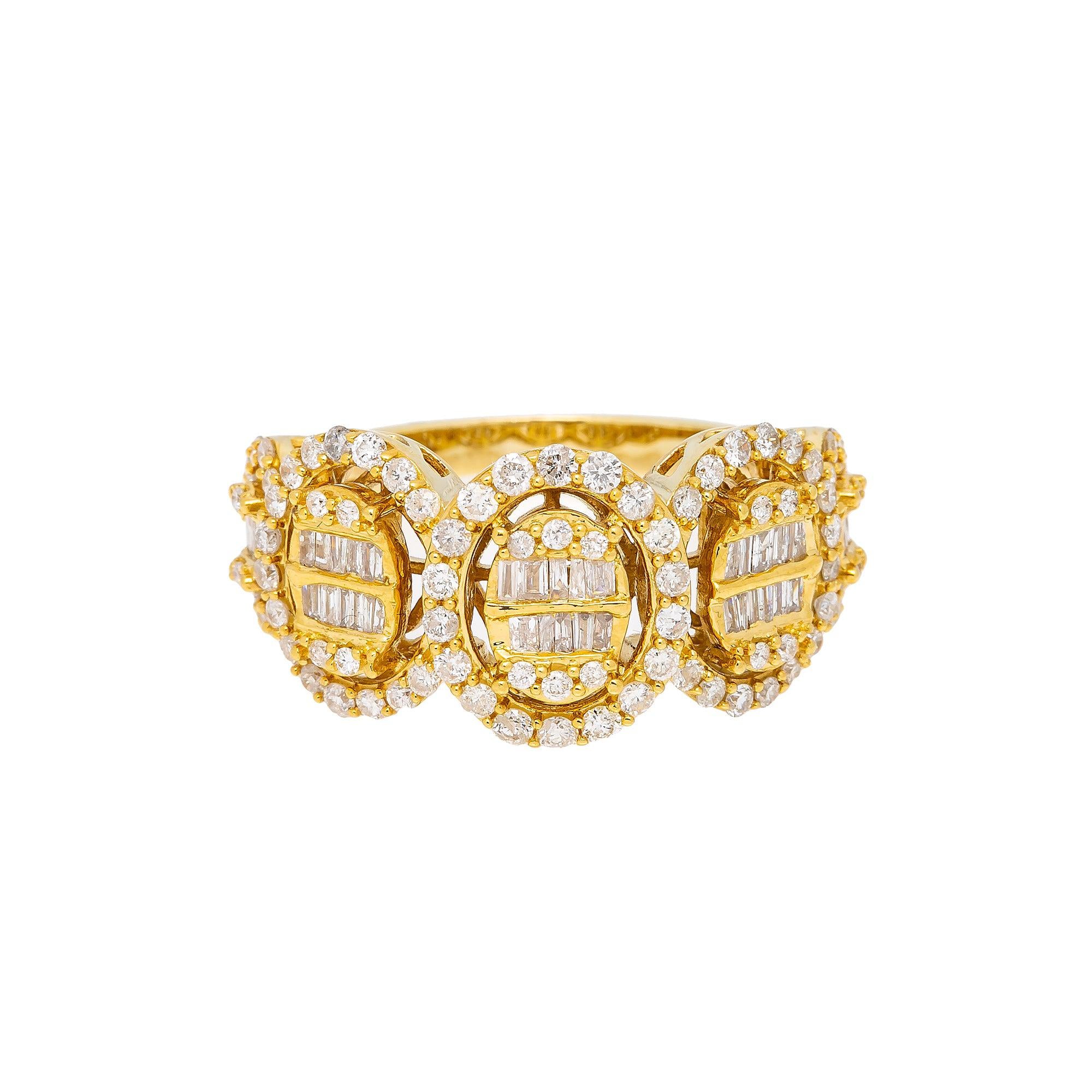14K Yellow Gold Ring with Round & Baguette Diamonds