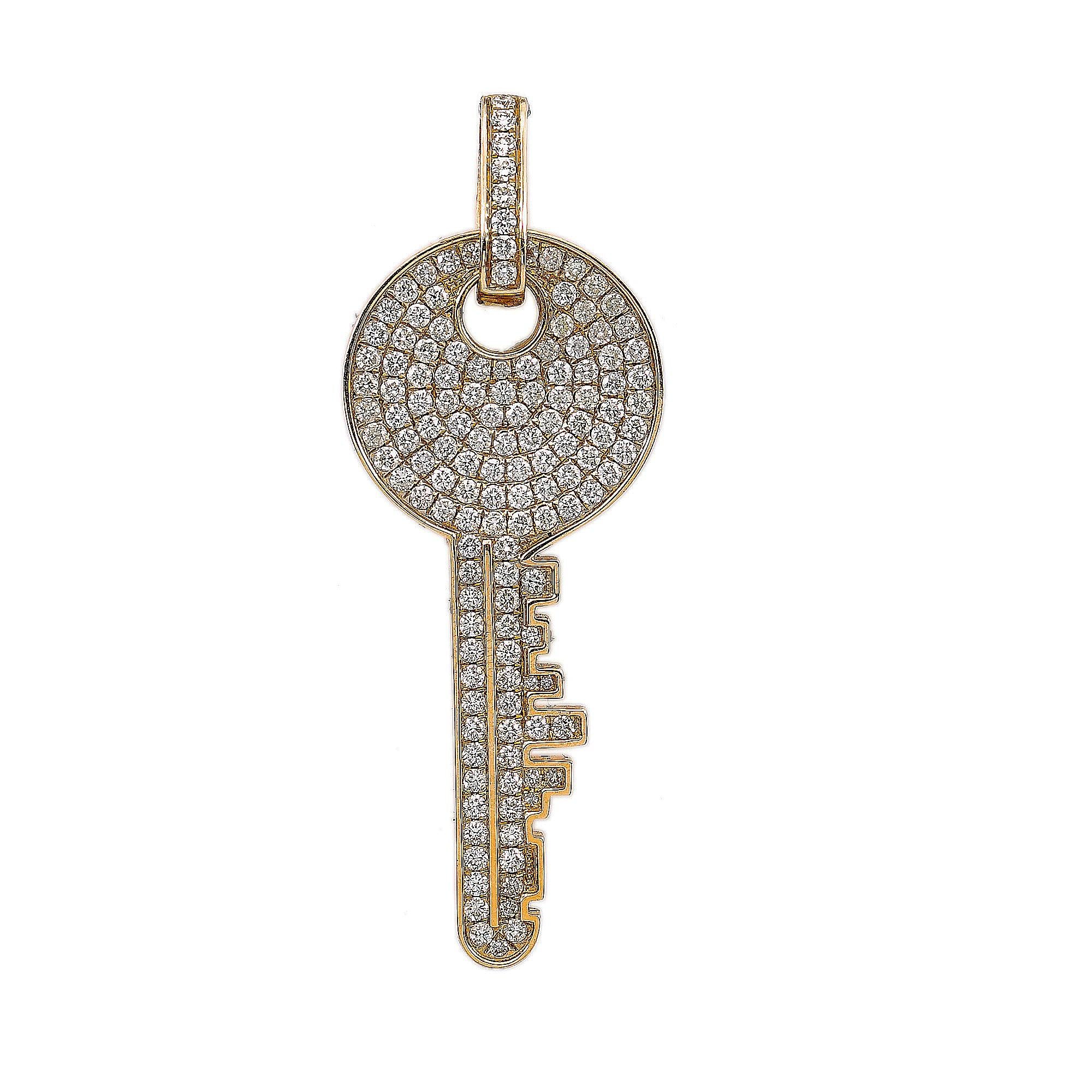 14K Yellow Gold Diamond The Key Round Shaped Pendant