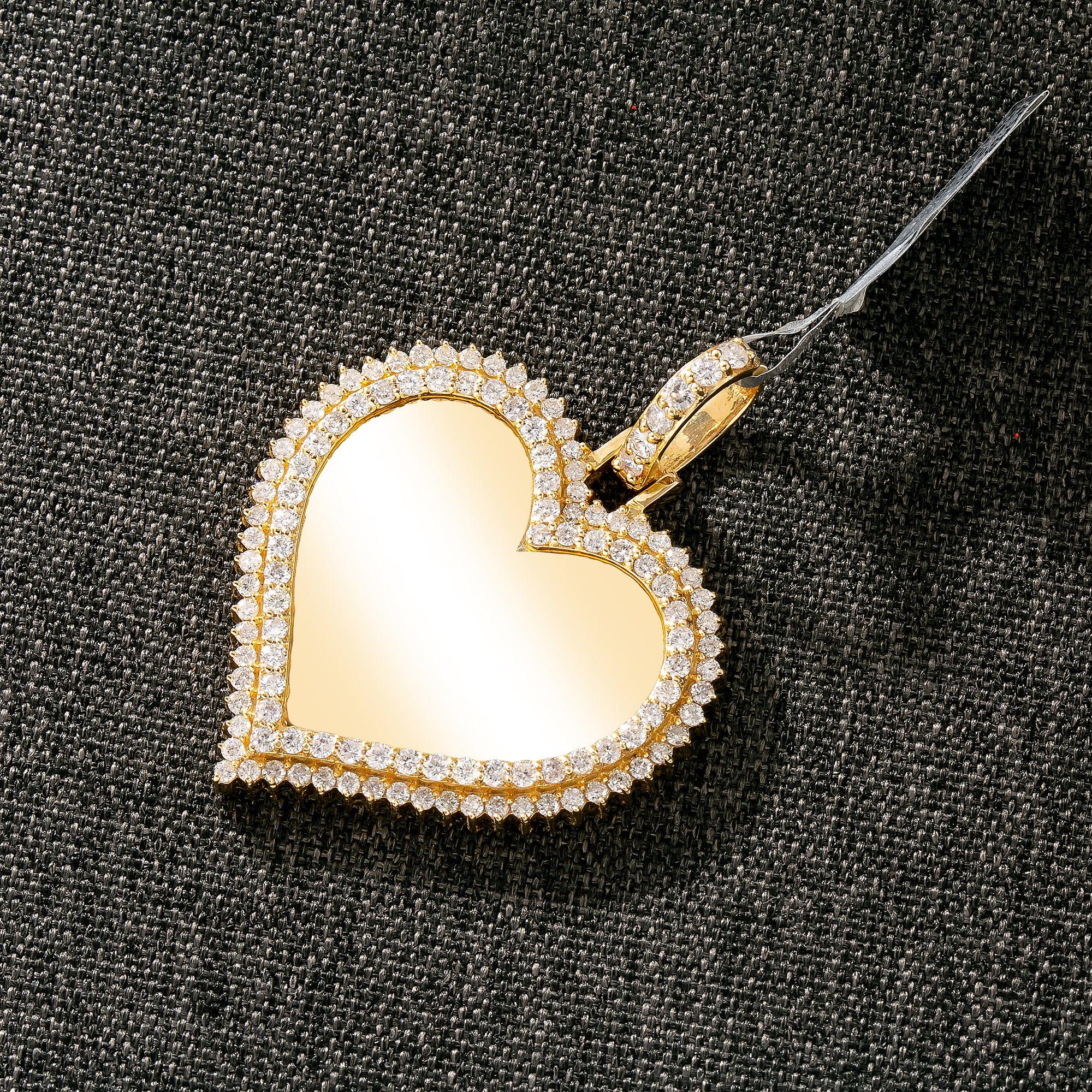 14K YELLOW GOLD ROUND DIAMOND CUSTOM HEART PICTURE PENDANT 3.28 CT