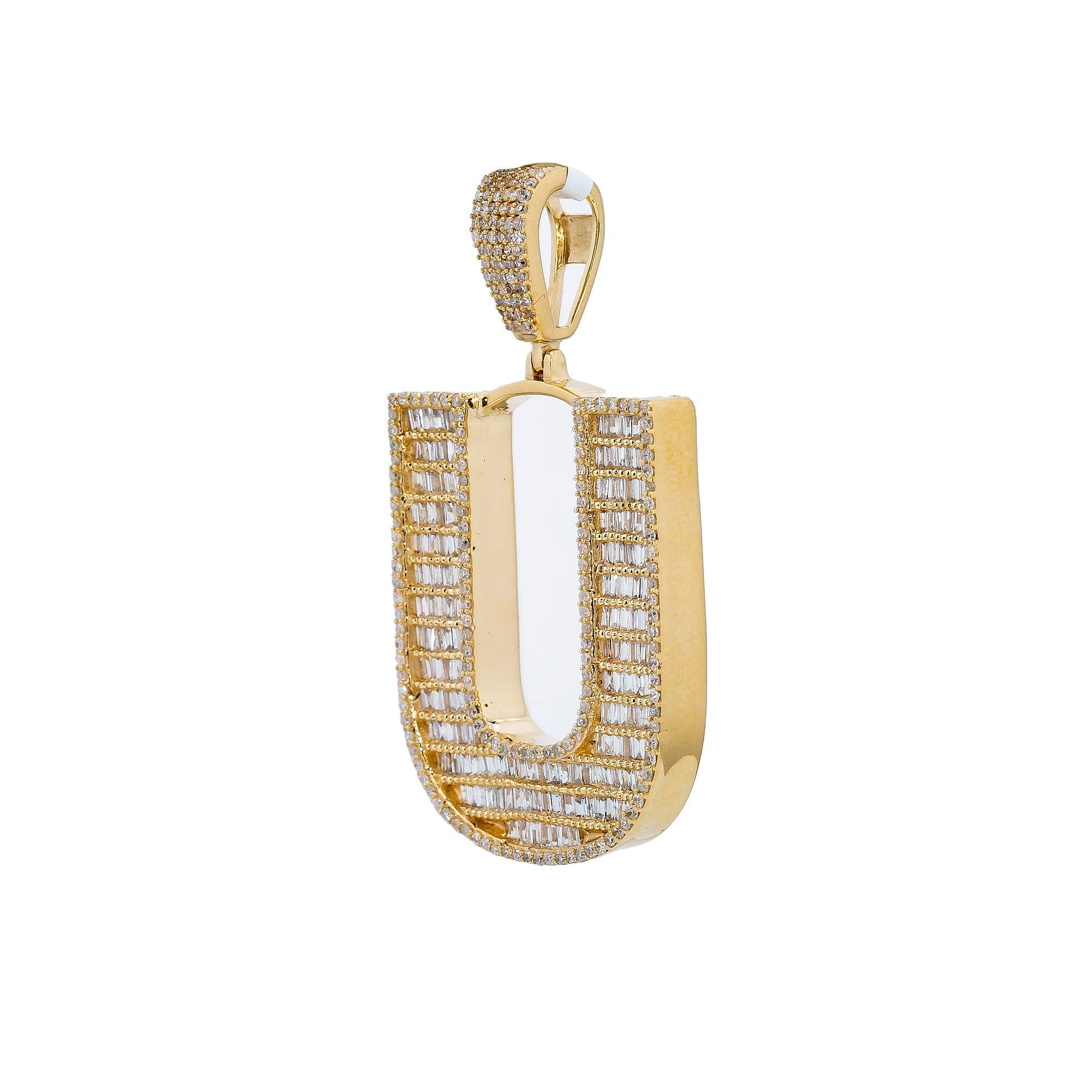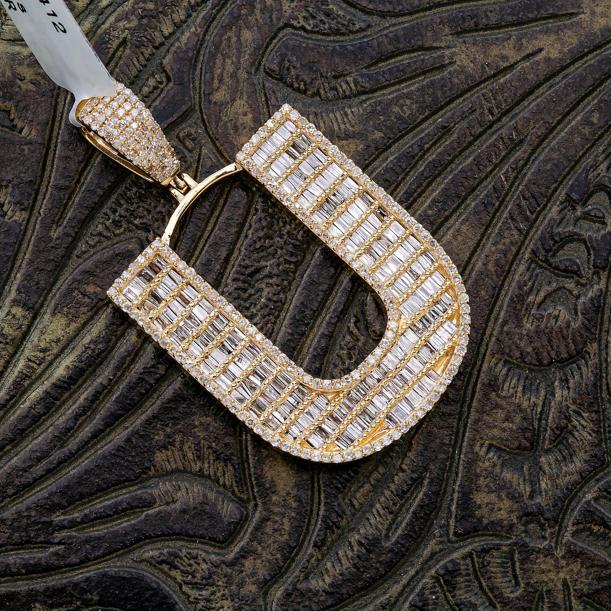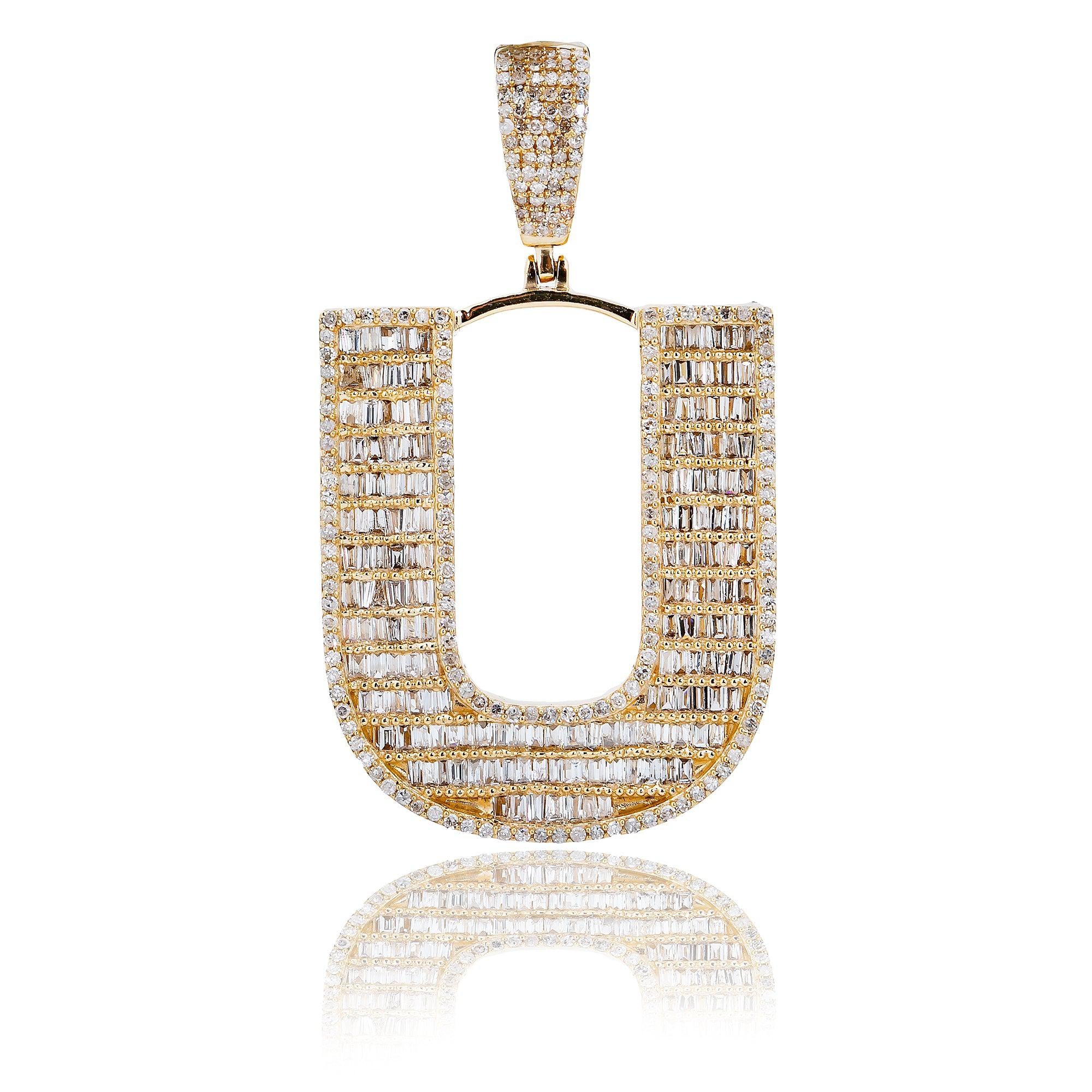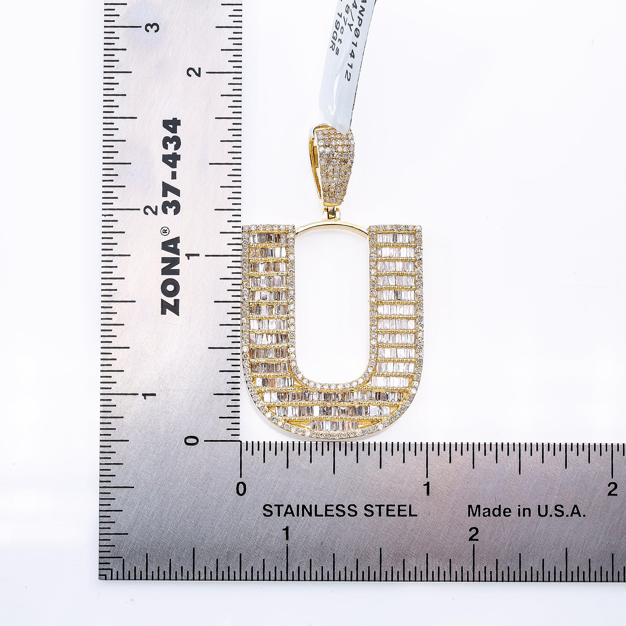 14K Yellow Gold Unisex Letter U Pendant with 1.87 CT Baguette Diamond