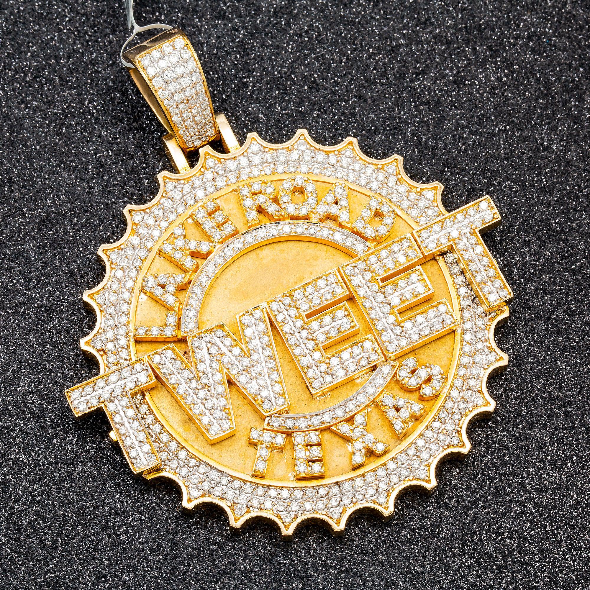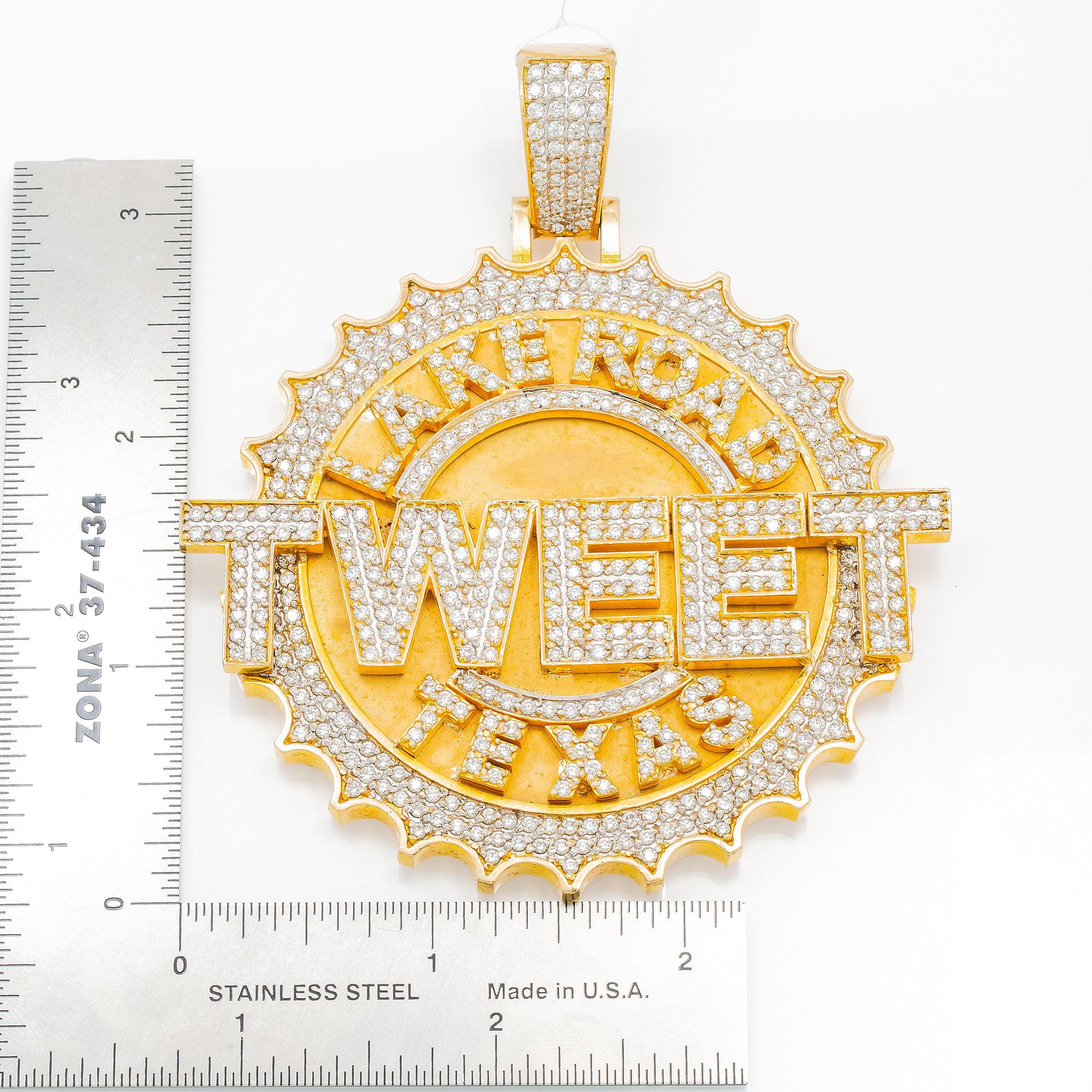 14K YELLOW GOLD CUSTOM TWEET PENDANT WITH 10.95 CT DIAMONDS