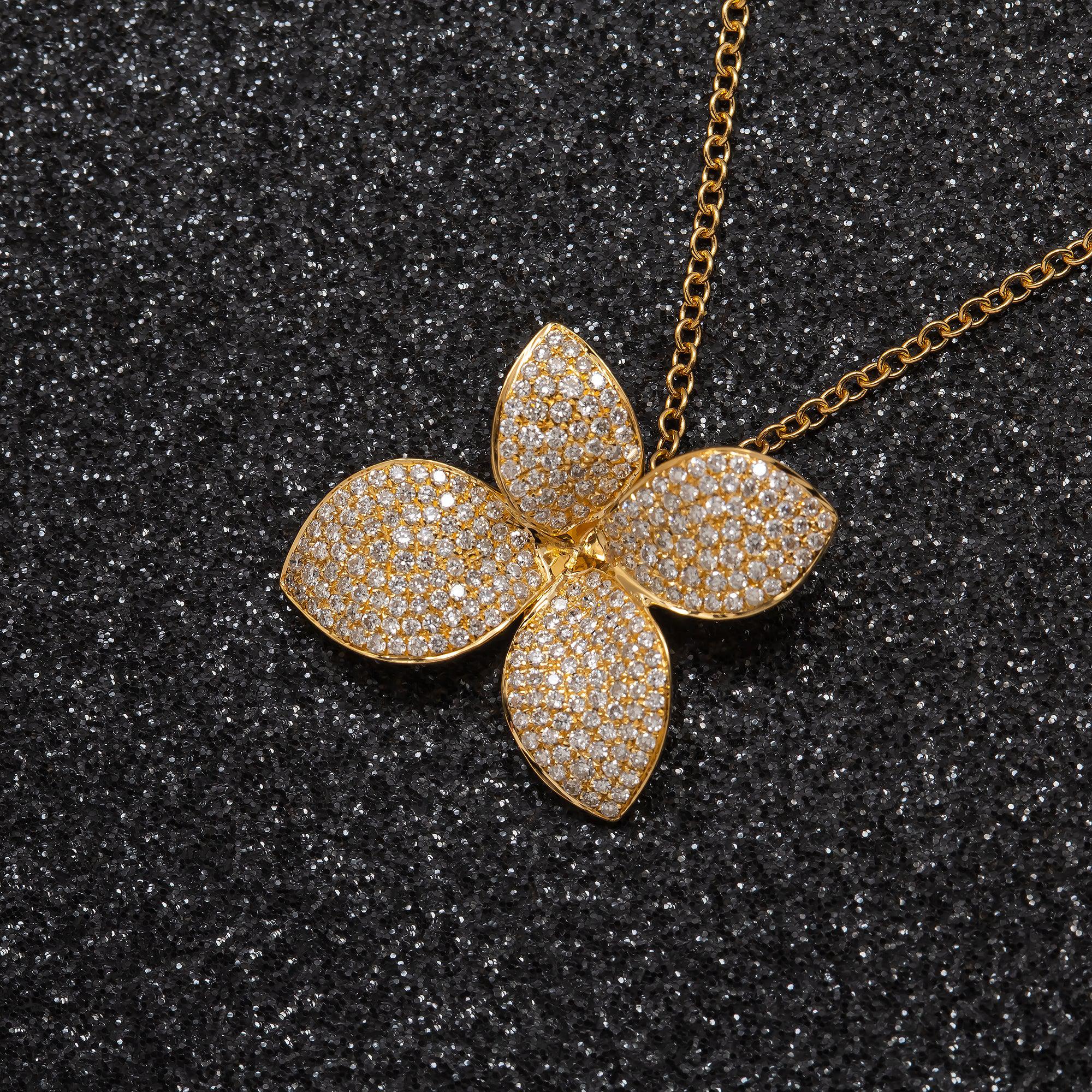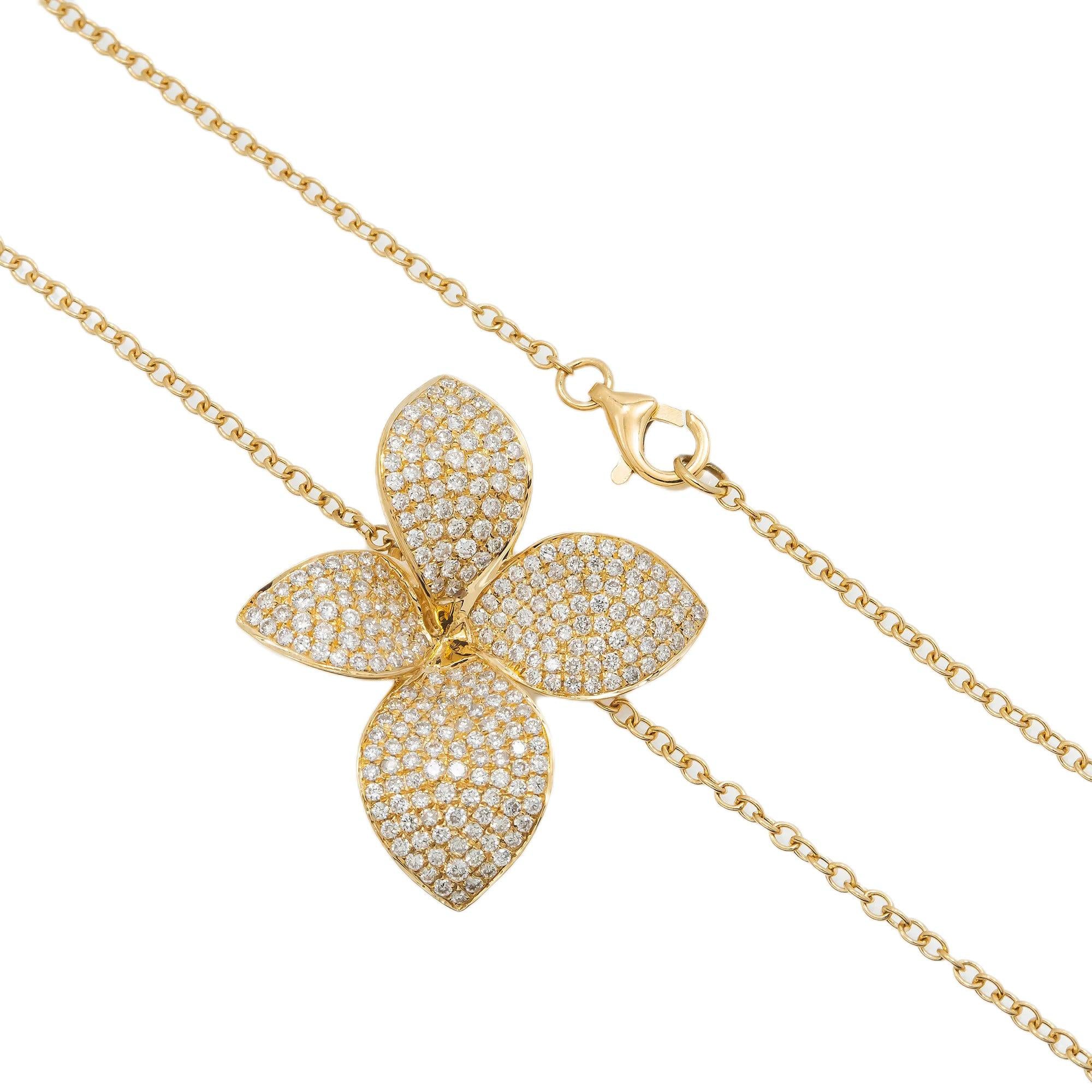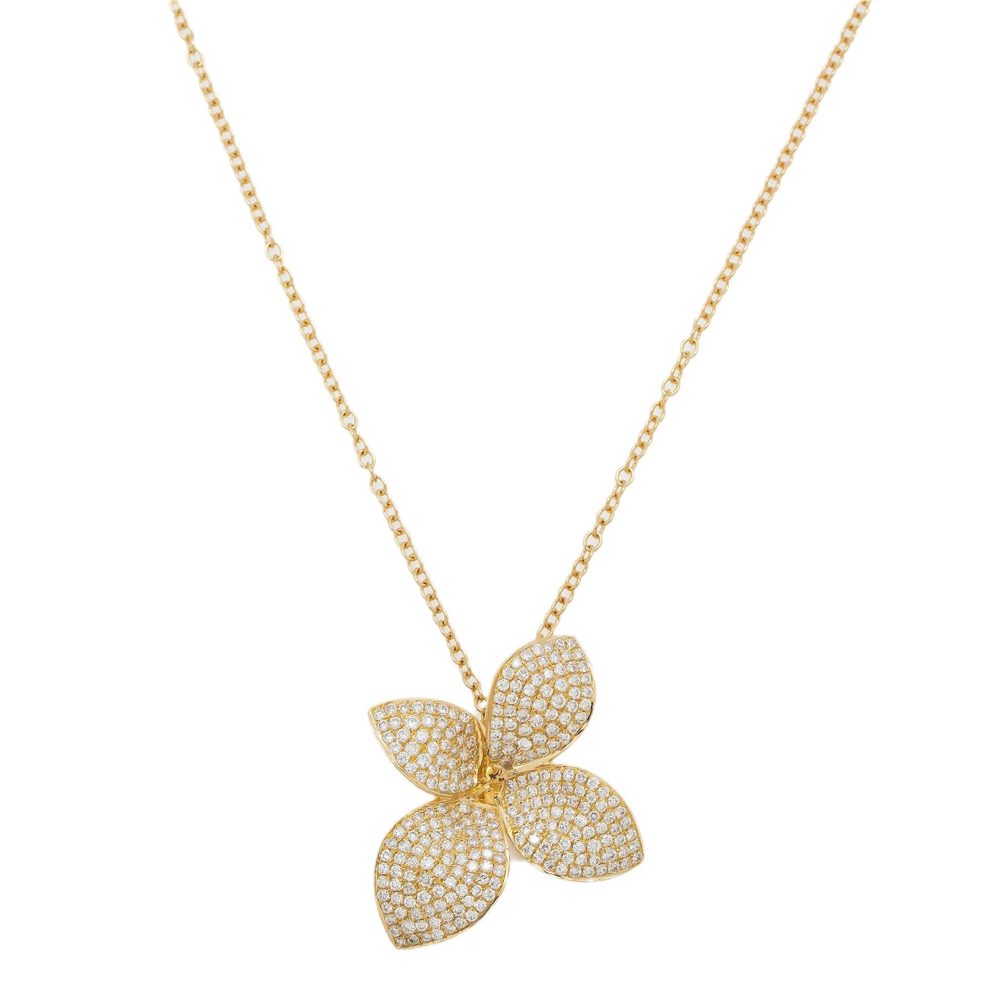 18K GOLD DIAMOND FLOWER NECKLACE 1.07 CT