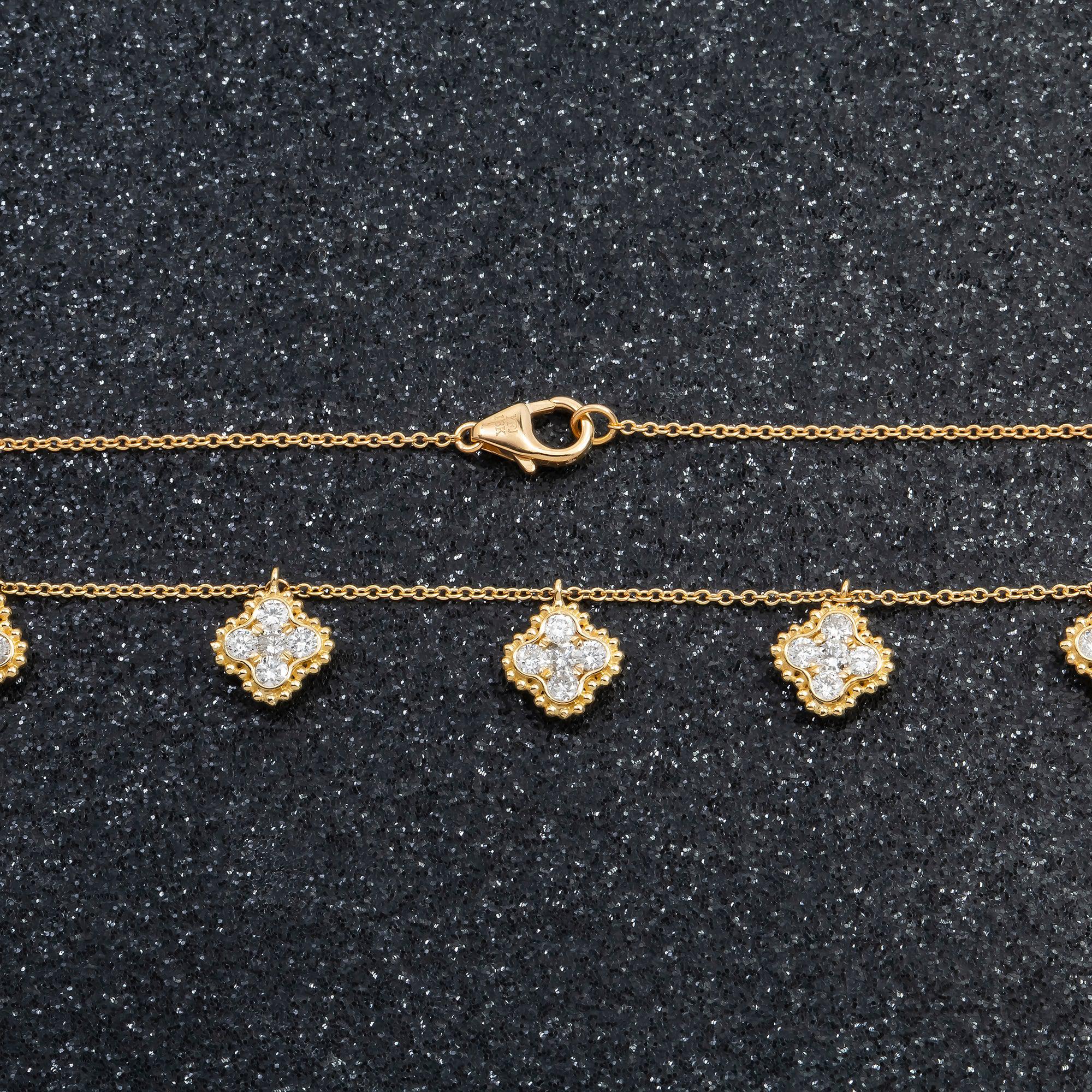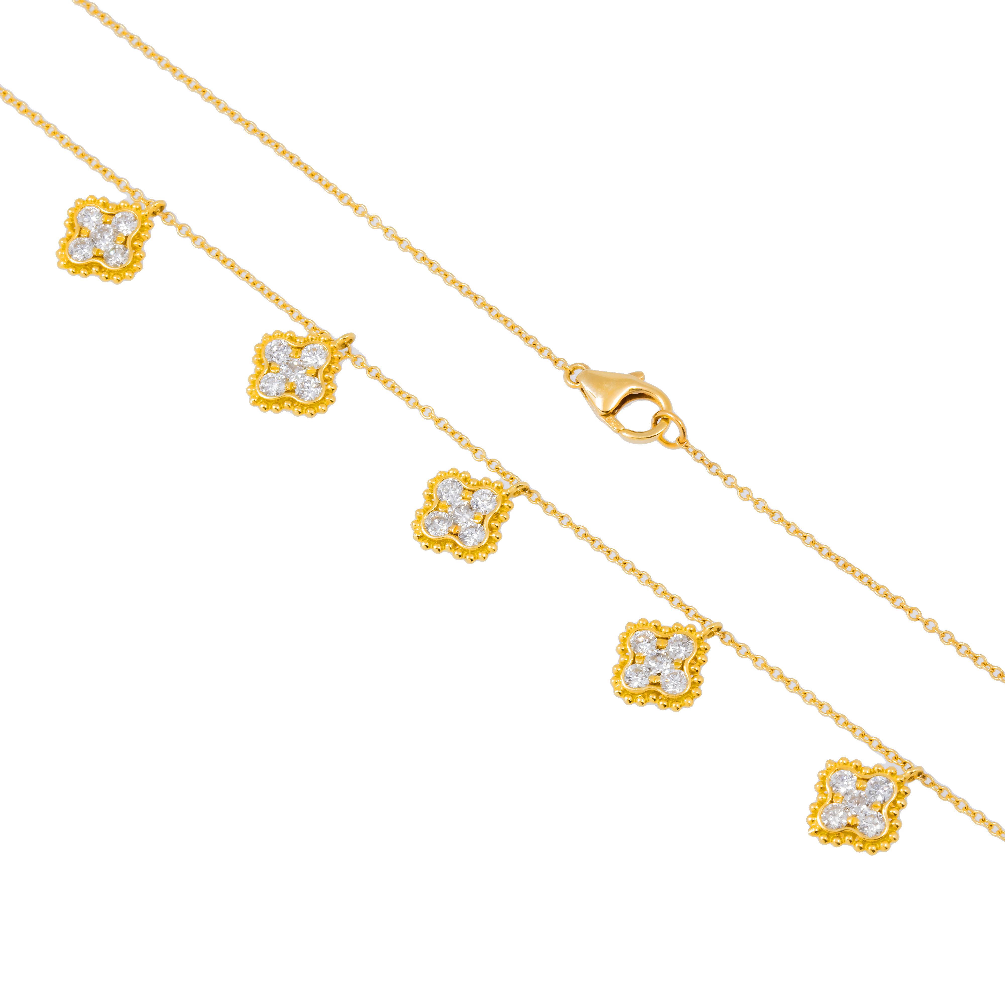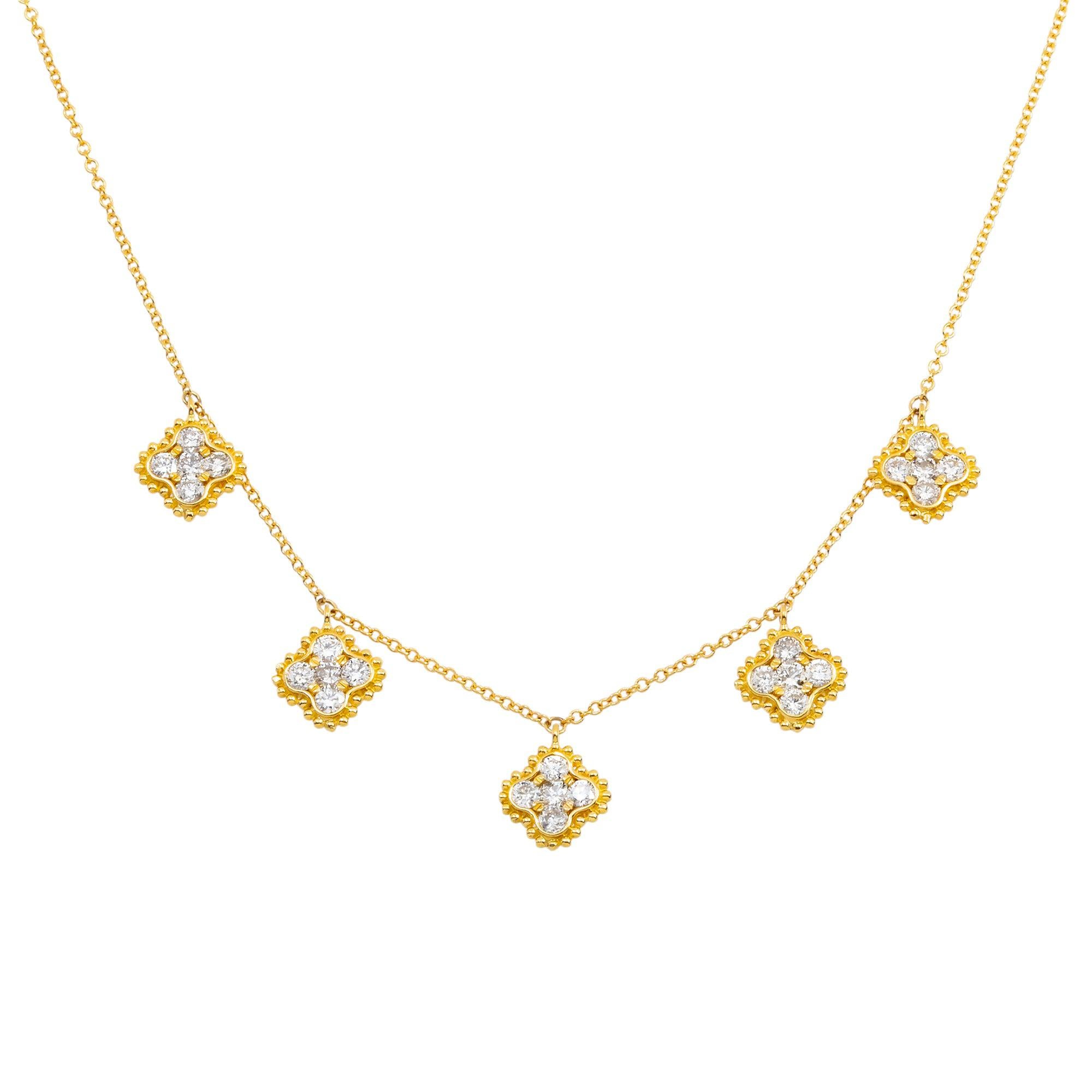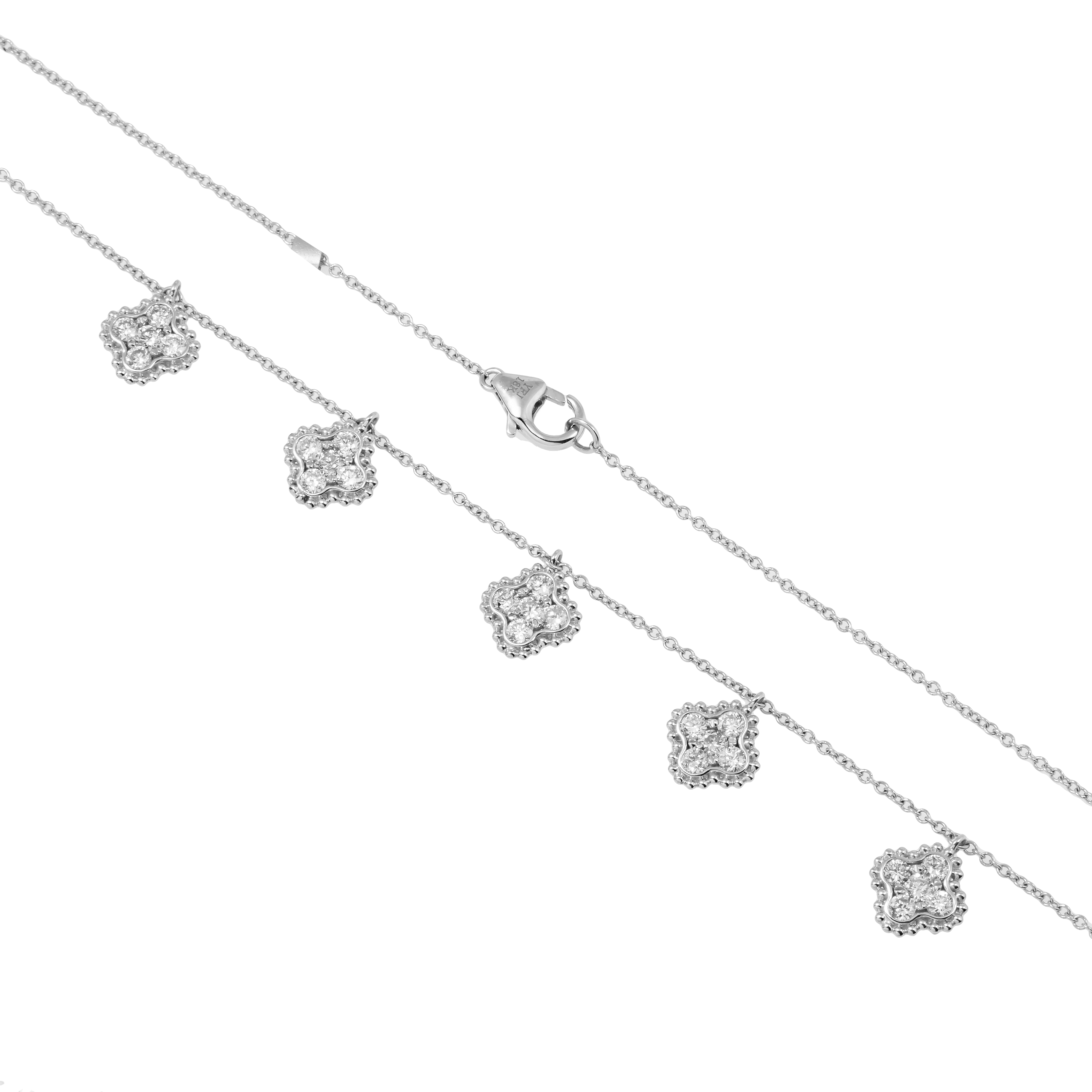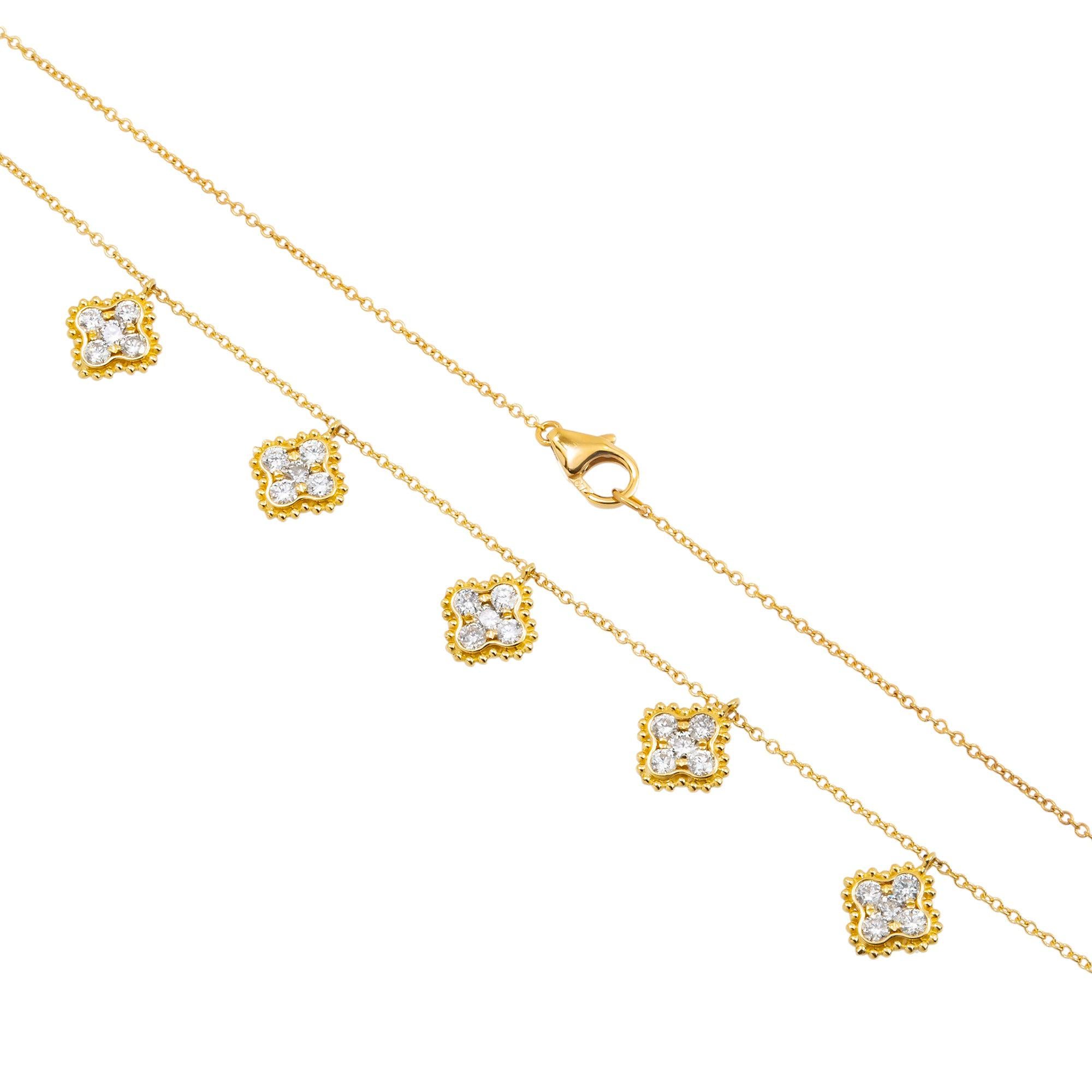 18K GOLD ROUND DIAMOND CLOVER SHAPE NECKLACE 0.95 CT