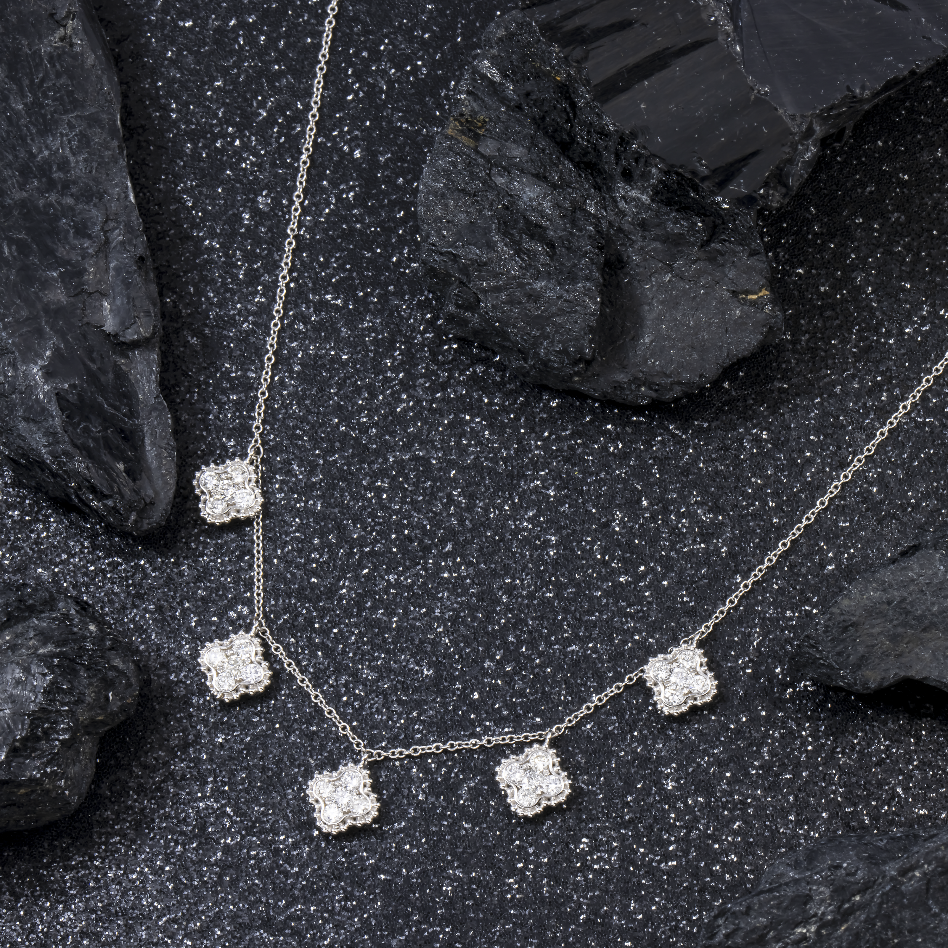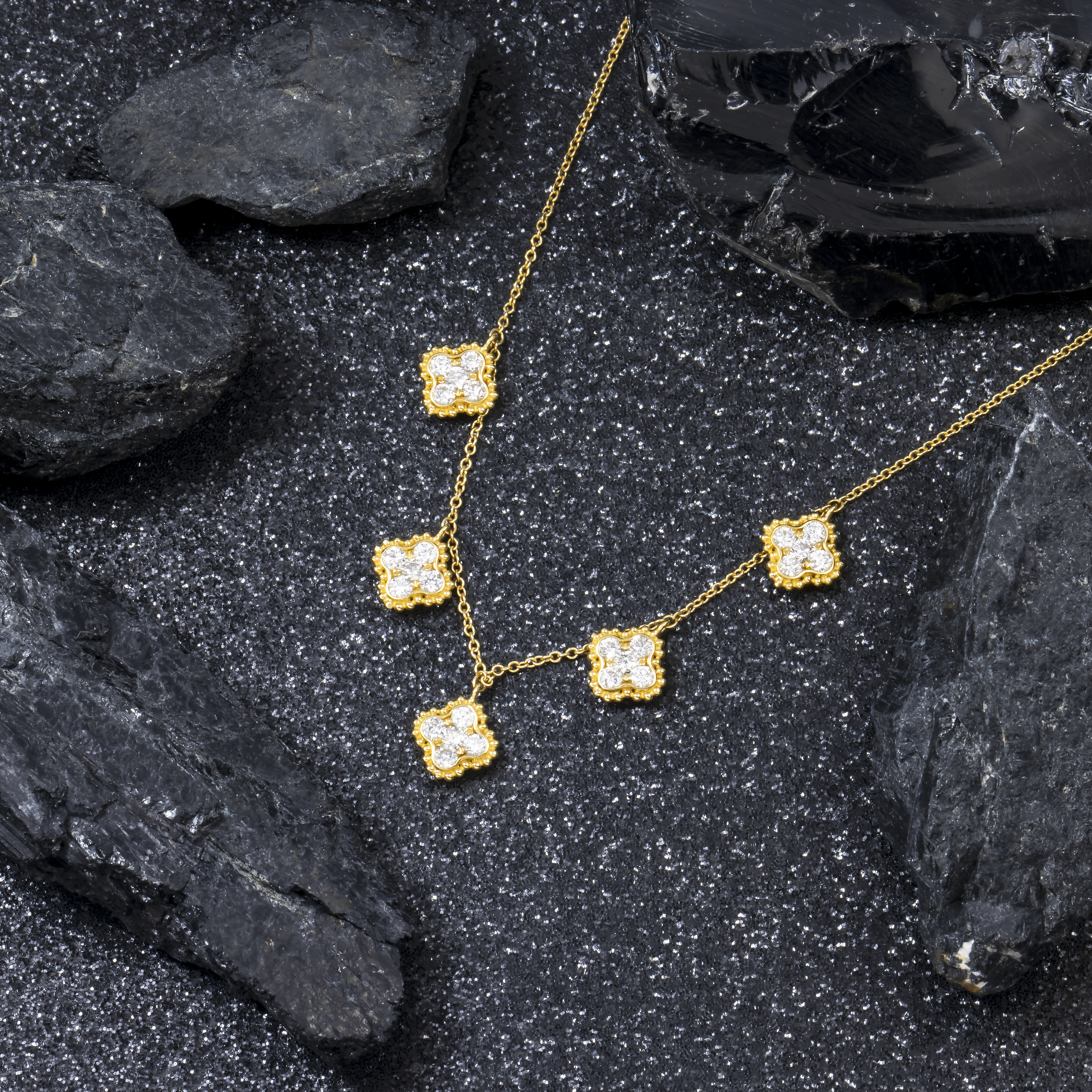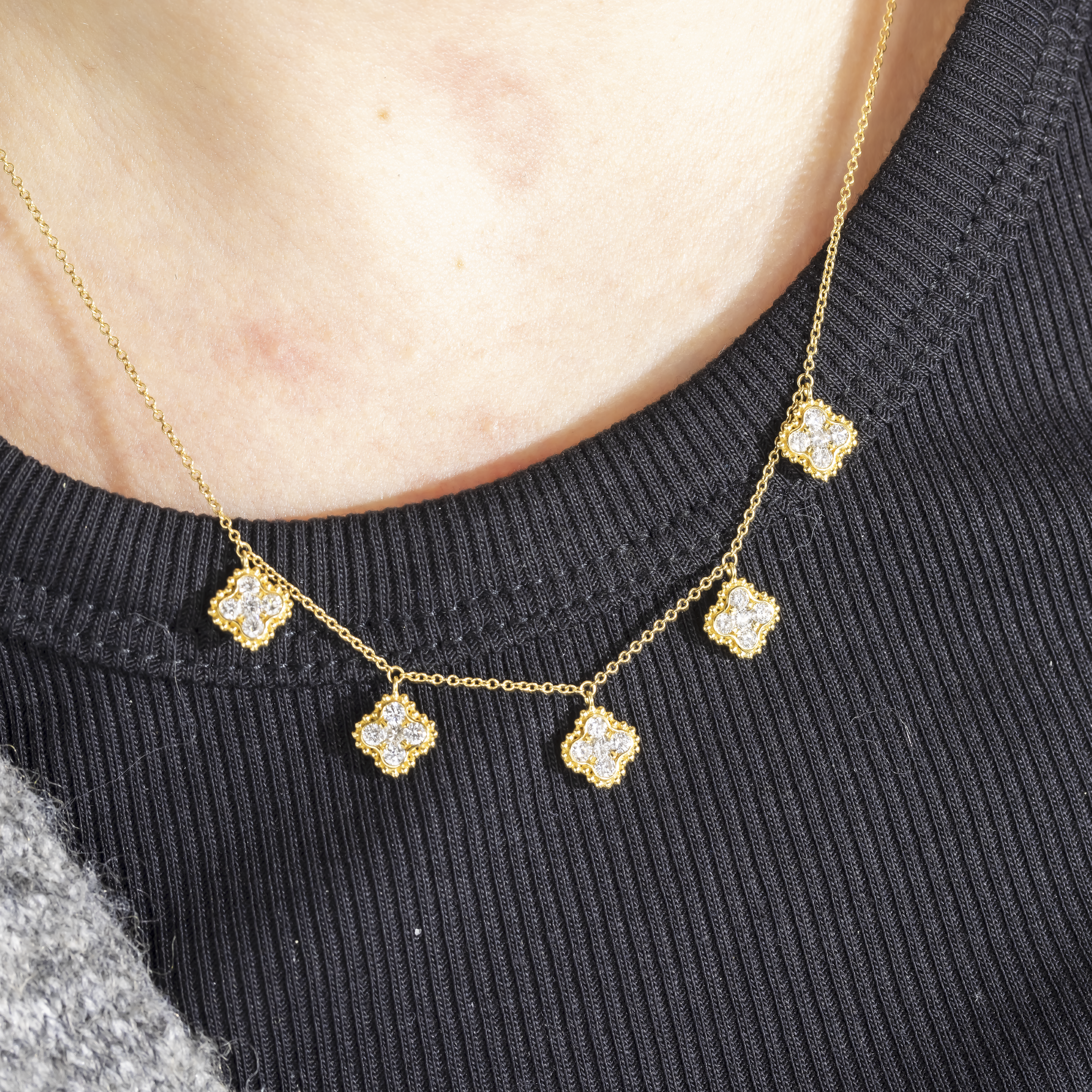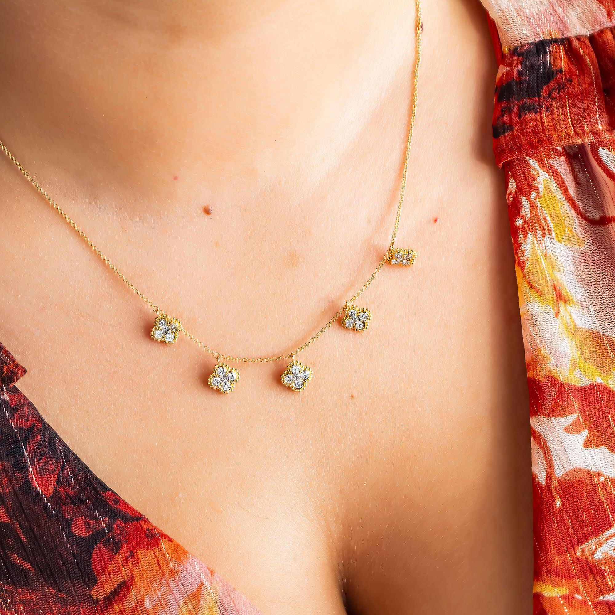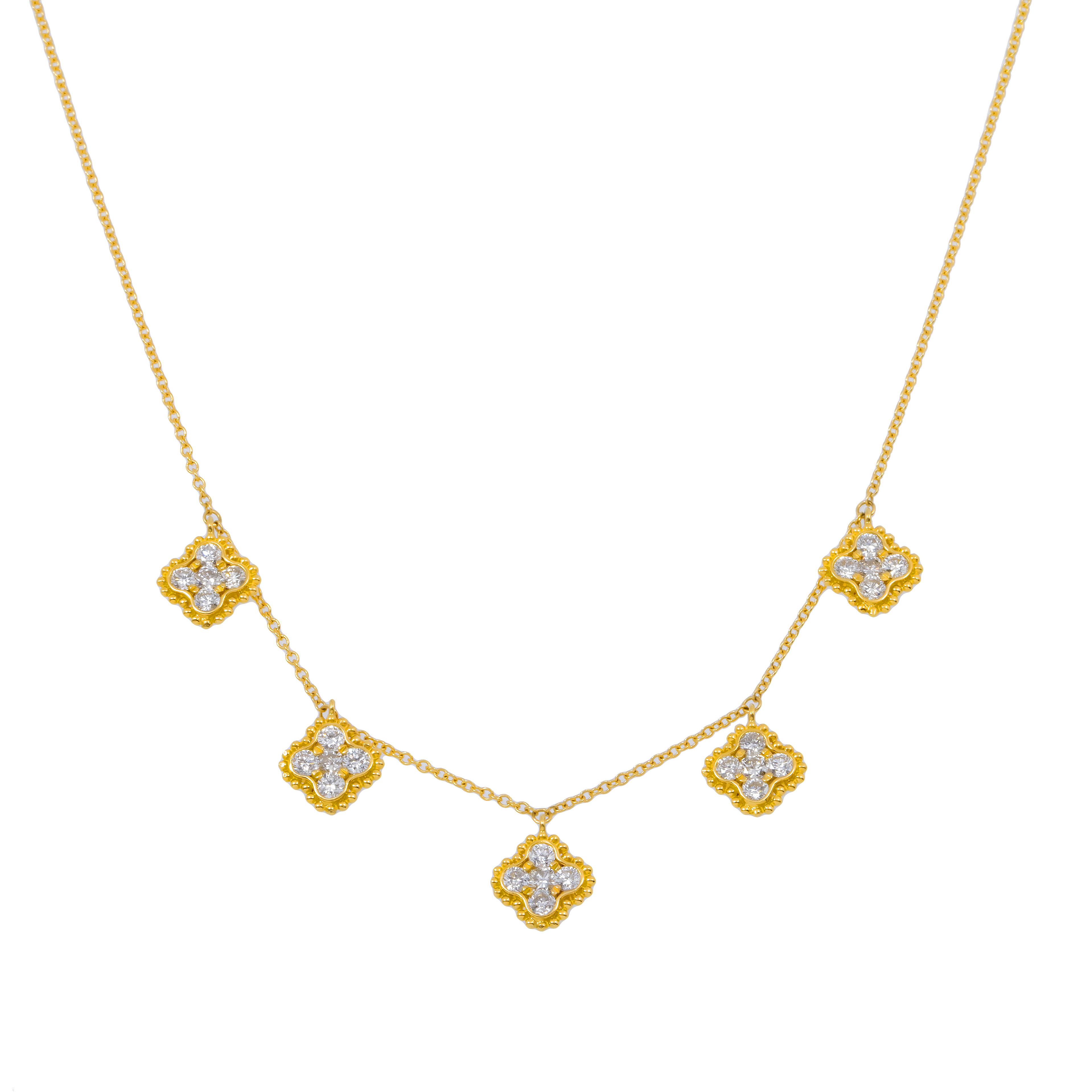 18K GOLD ROUND DIAMOND CLOVER SHAPE NECKLACE 0.95 CT
