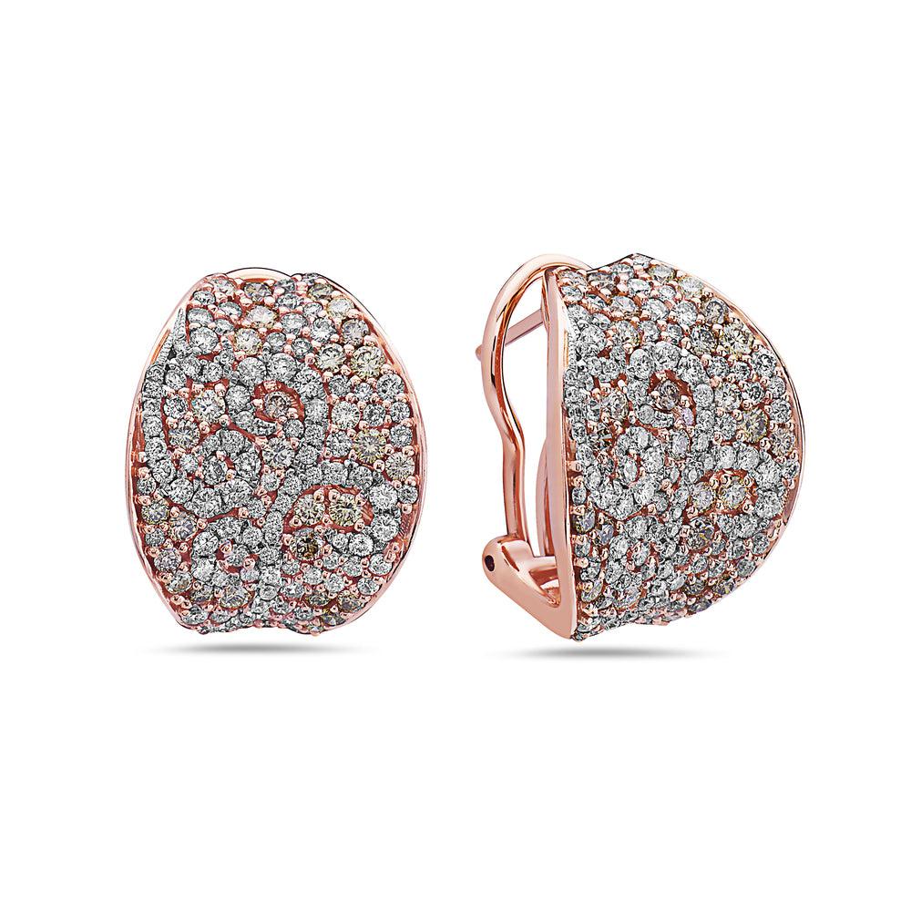 18K Rose Gold Ladies Earrings With White and Yellow Diamonds