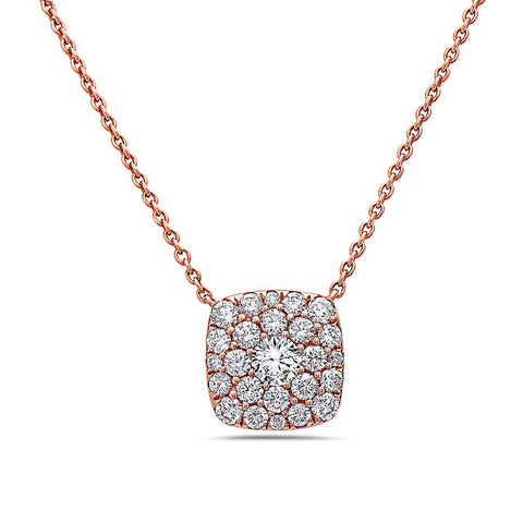 18K Rose Gold Square Women's Necklace With 1.00 CT Diamonds