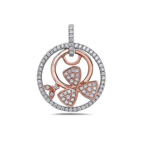 18K White and Rose Gold Floating Circles and Shapes Women's Pendant with 0.72CT Diamonds